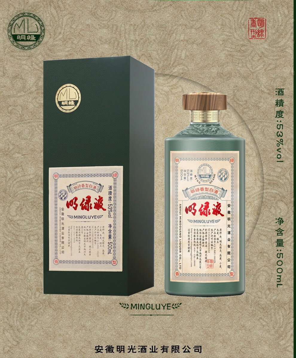 明光 明绿系列新品 明绿液 明绿香型 白酒53度 500ml 单瓶