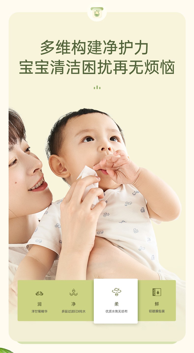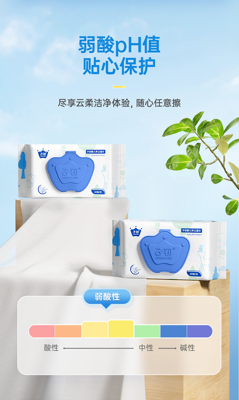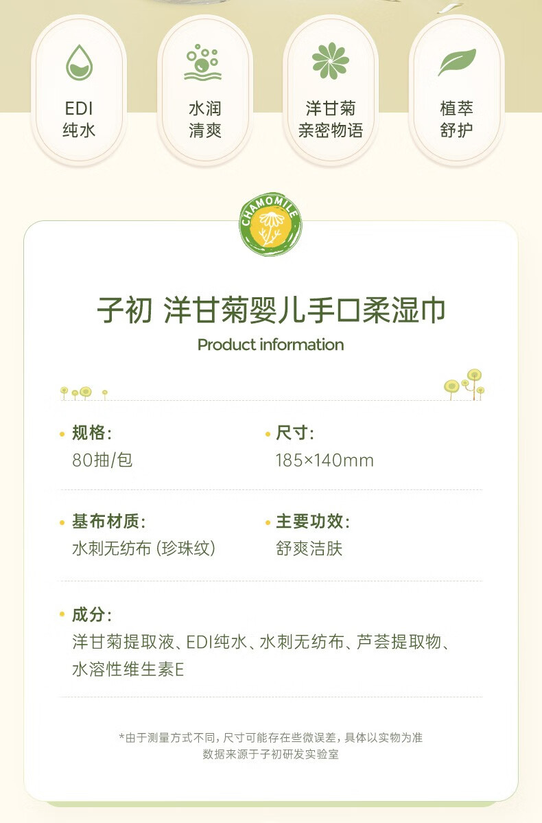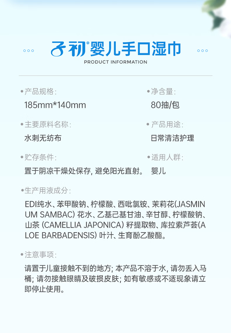 子初婴儿手口湿巾婴儿湿巾宝宝护肤湿纸巾手口柔湿巾成人可用家庭装 【山茶湿巾】 80抽 8包
