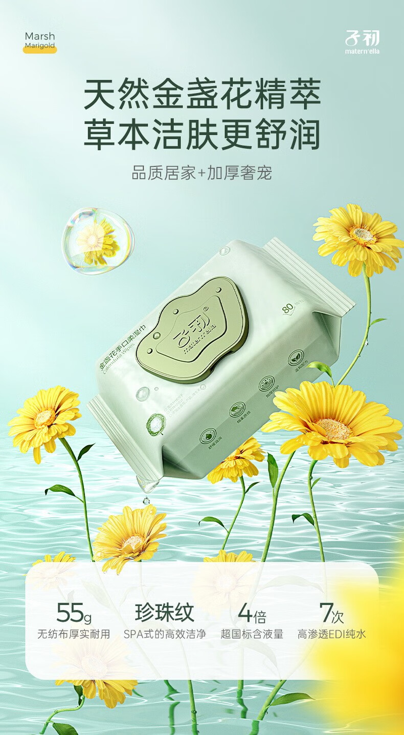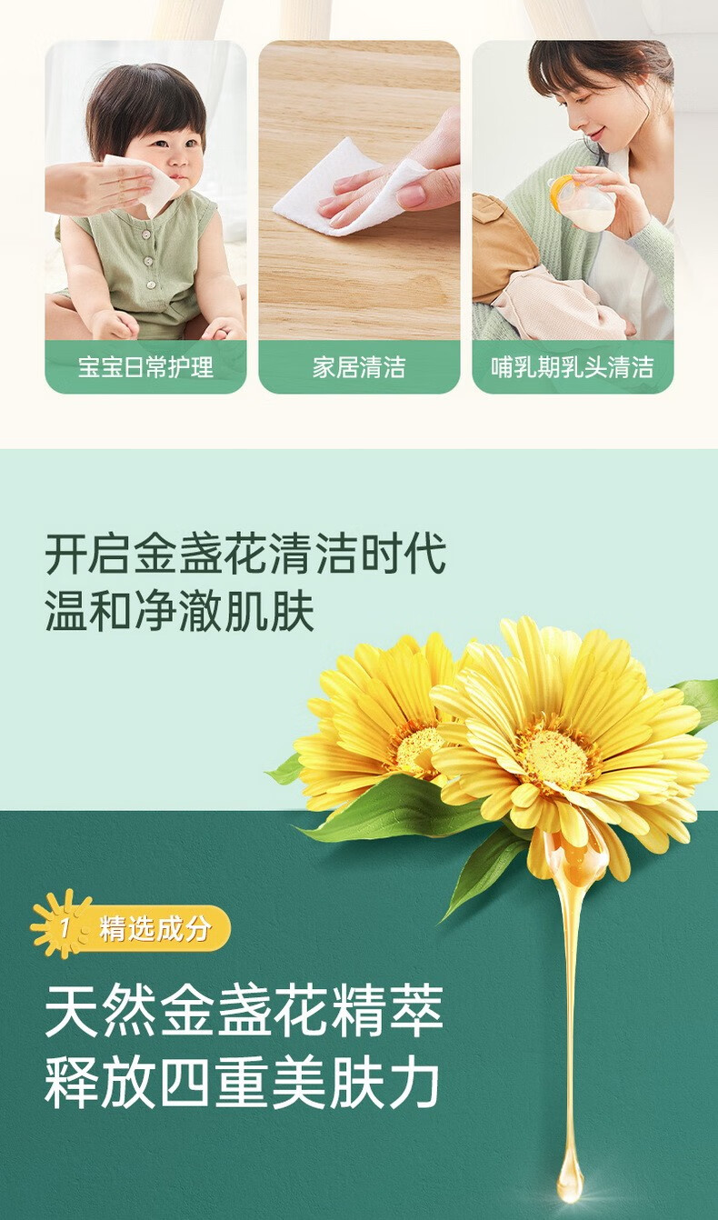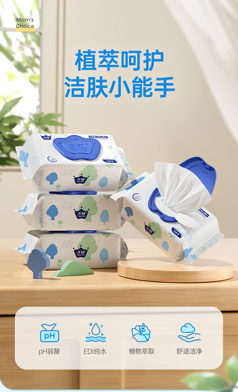 子初婴儿手口湿巾婴儿湿巾宝宝护肤湿纸巾手口柔湿巾成人可用家庭装 【山茶湿巾】 80抽 8包