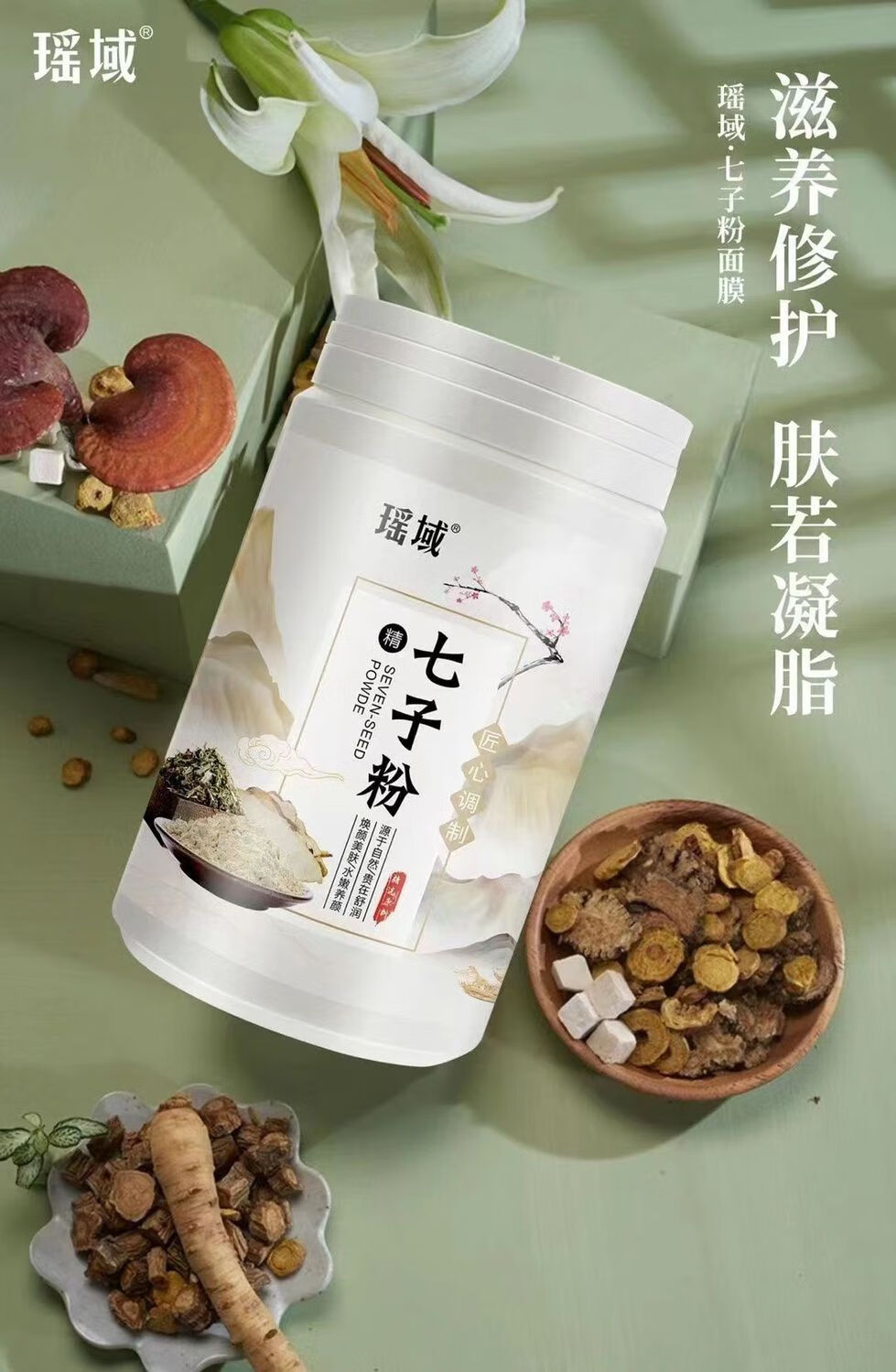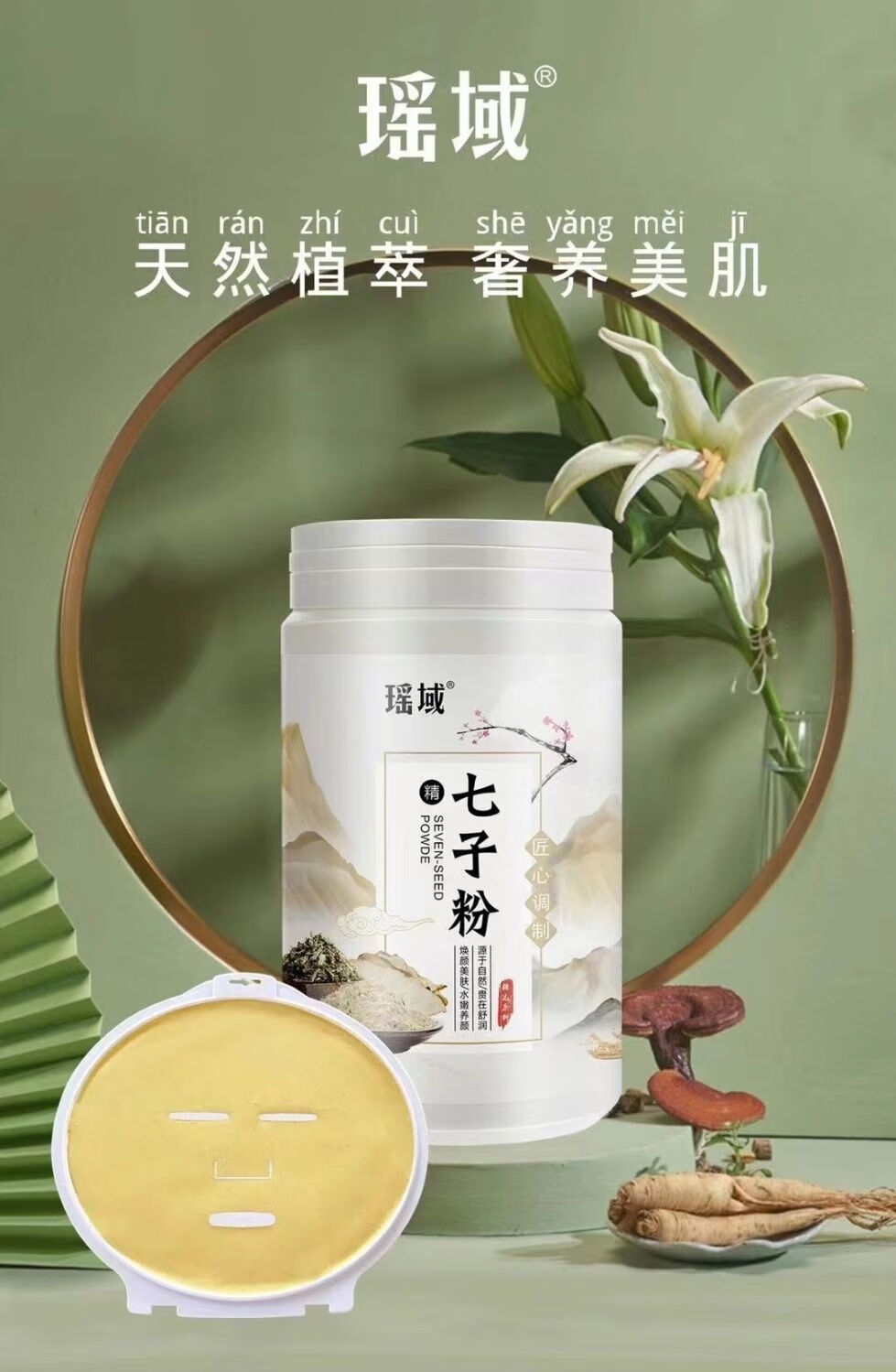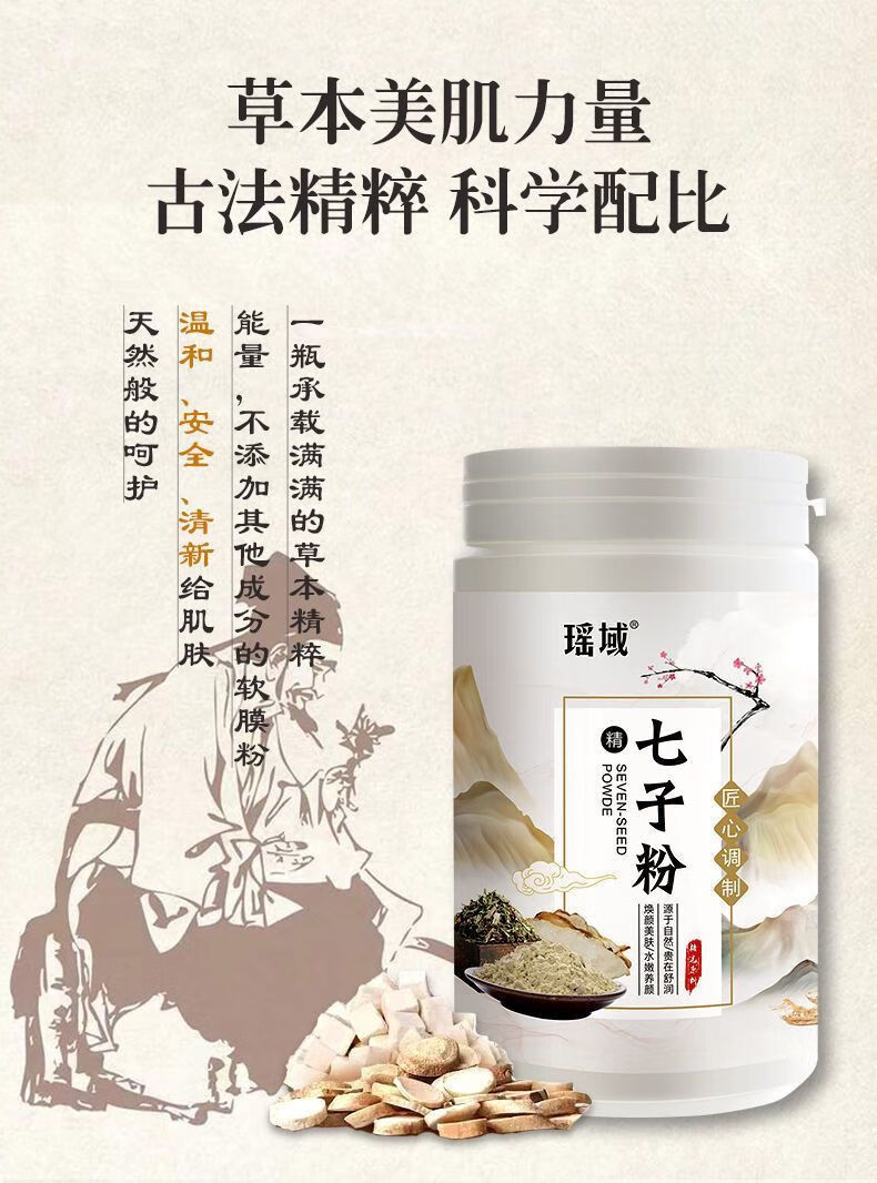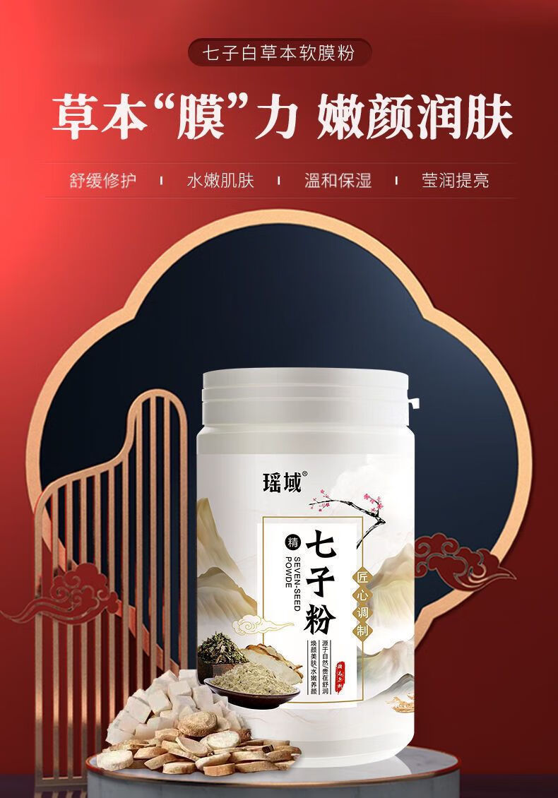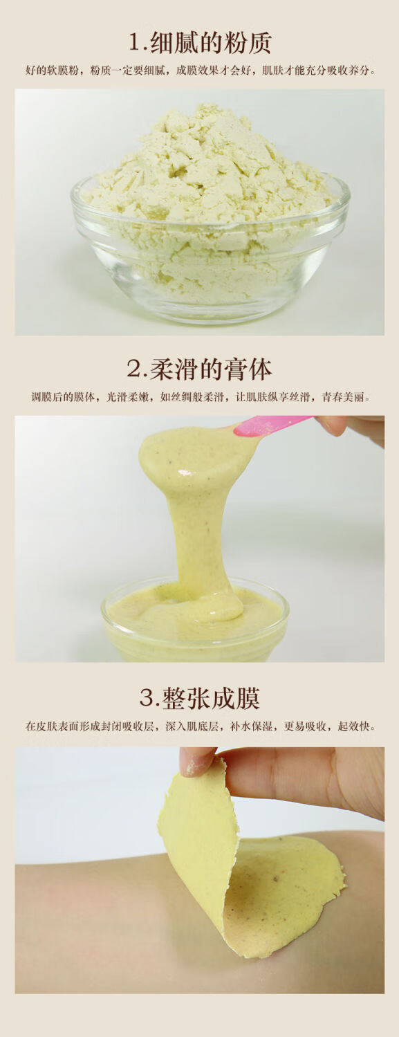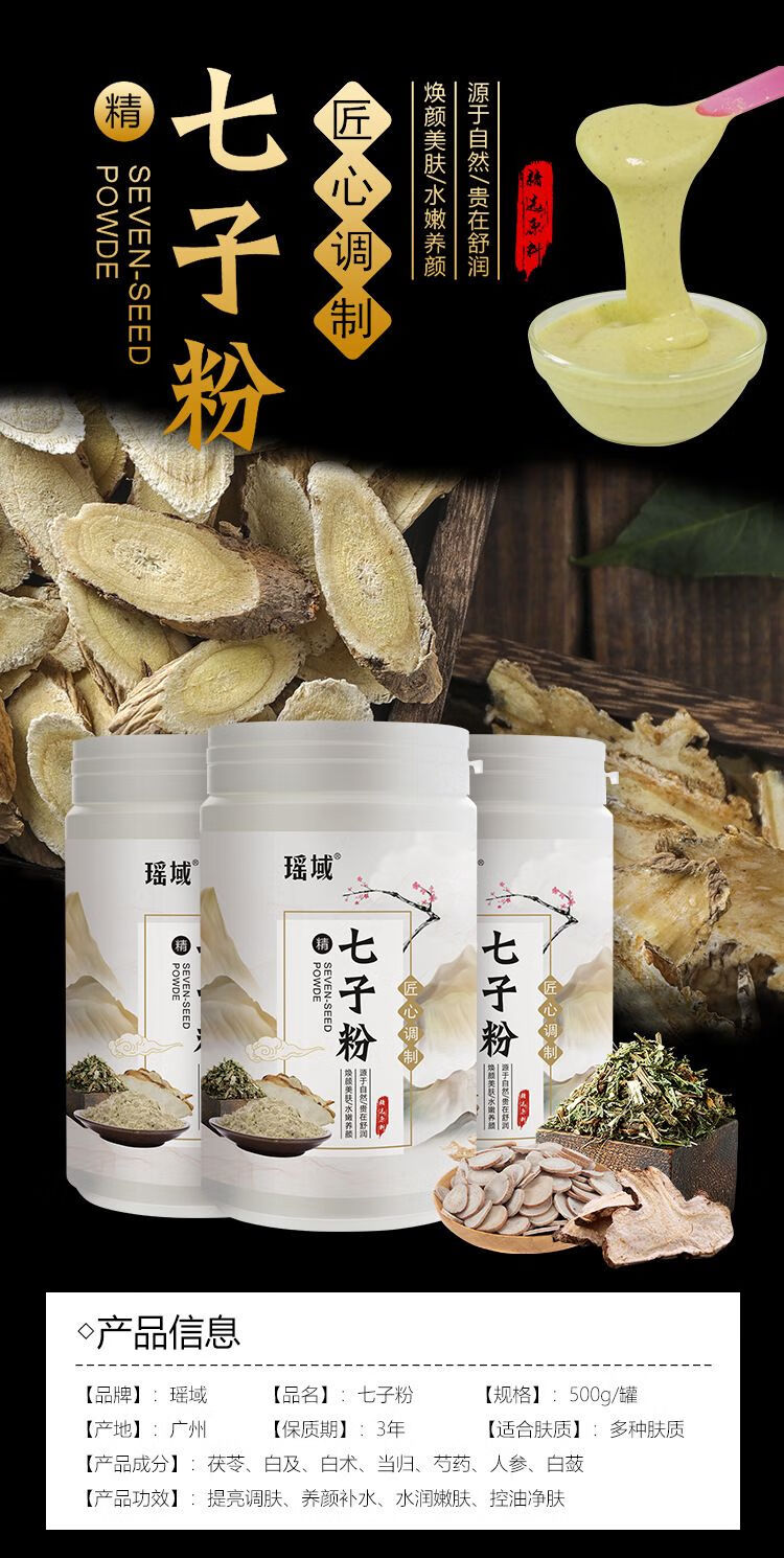 瑶域正品七子粉补水保湿面膜粉七子白软膜七膏粉美容院专用高档软膜粉 第2代3瓶*500克送工具【实惠装】