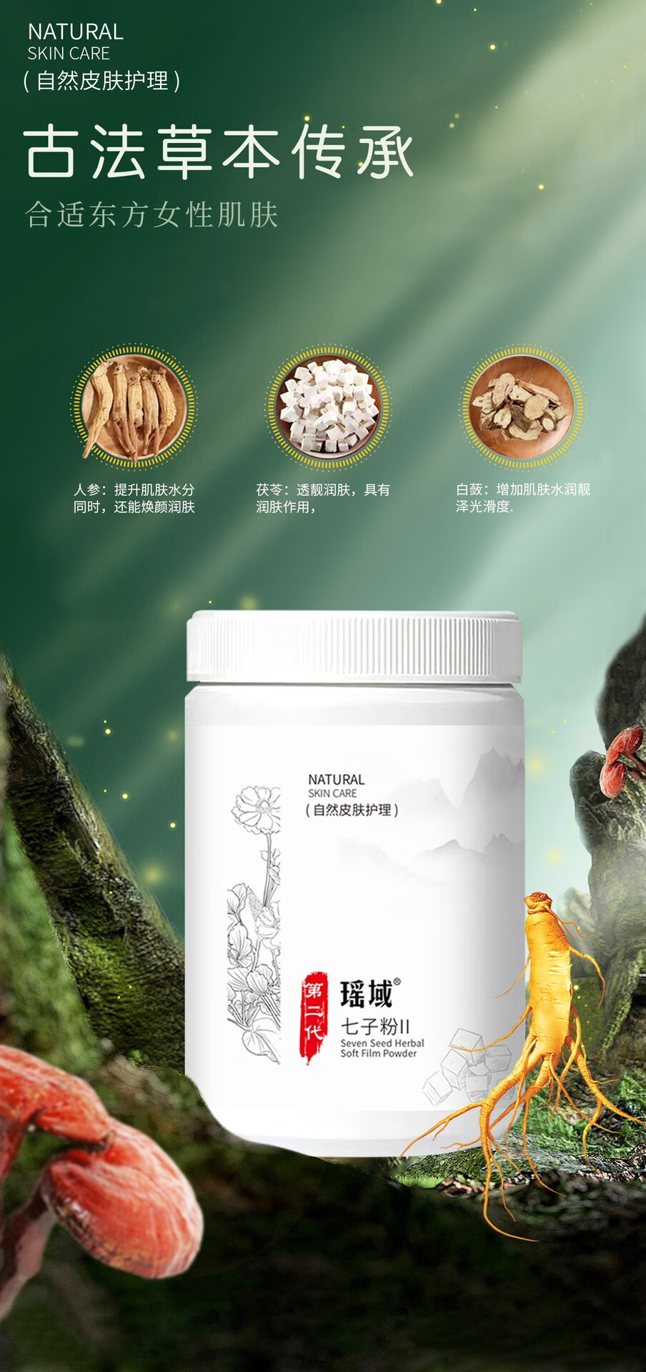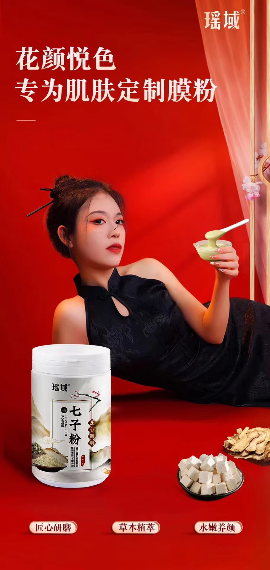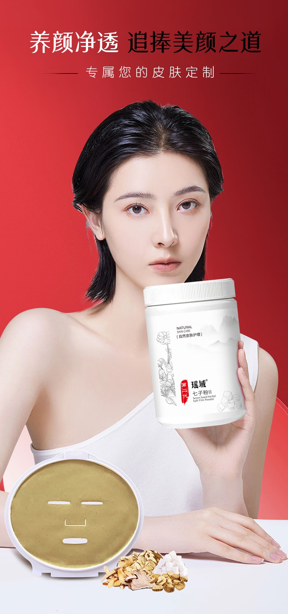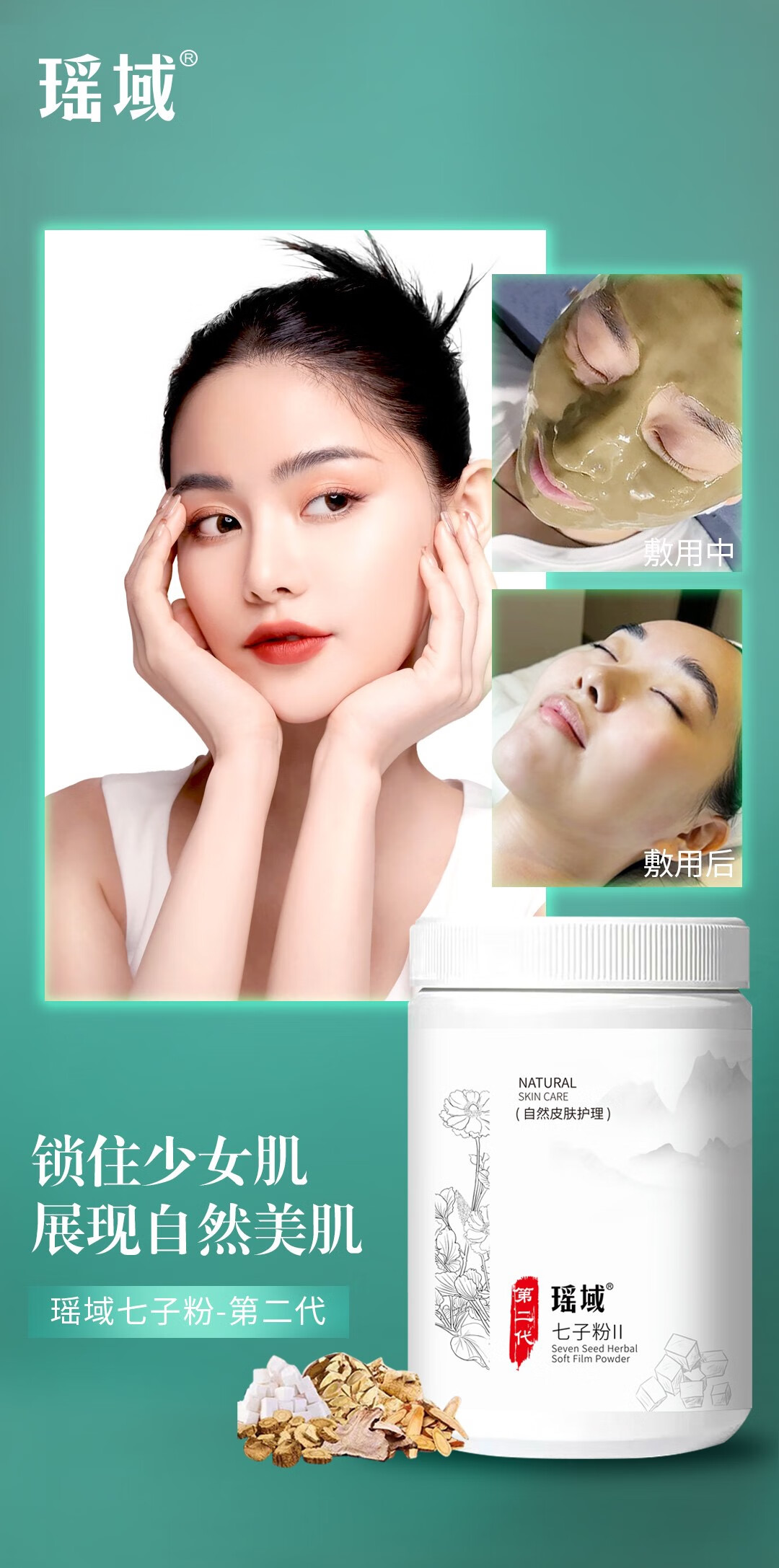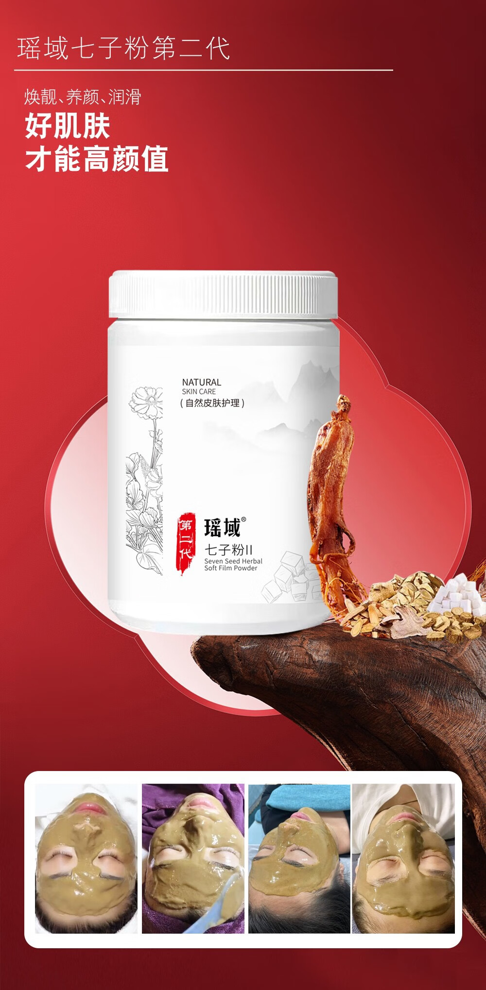 瑶域正品七子粉补水保湿面膜粉七子白软膜七膏粉美容院专用高档软膜粉 第2代3瓶*500克送工具【实惠装】