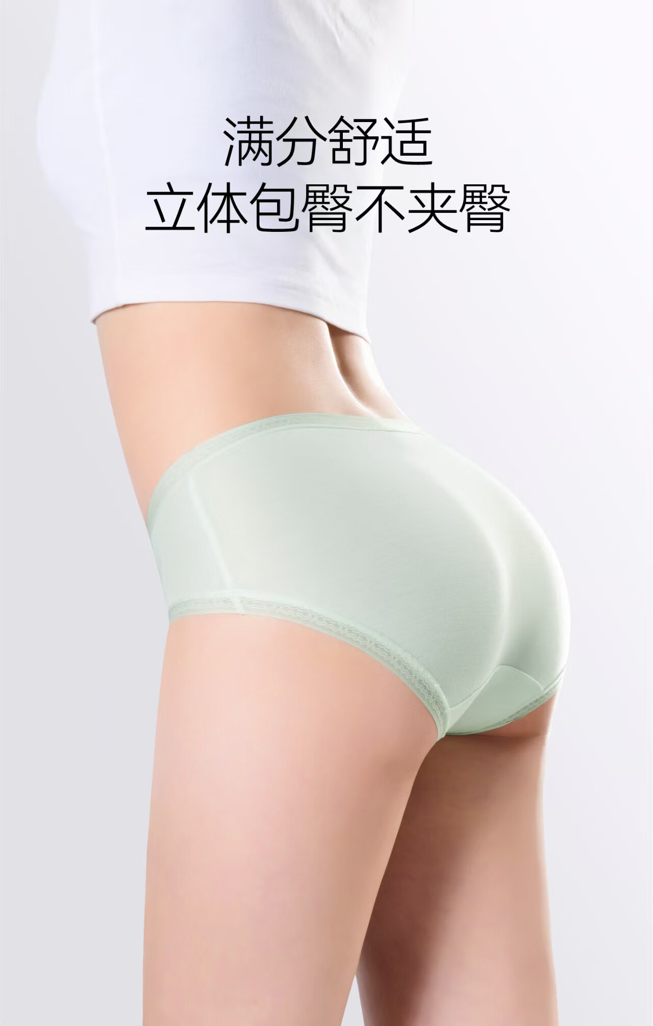 薄荷绿意莫代尔花边女内裤蕾丝中腰透气包臀7A抗菌棉档三角裤 浅橘色+浅米黄+薄荷绿 3条 XL 115-150斤