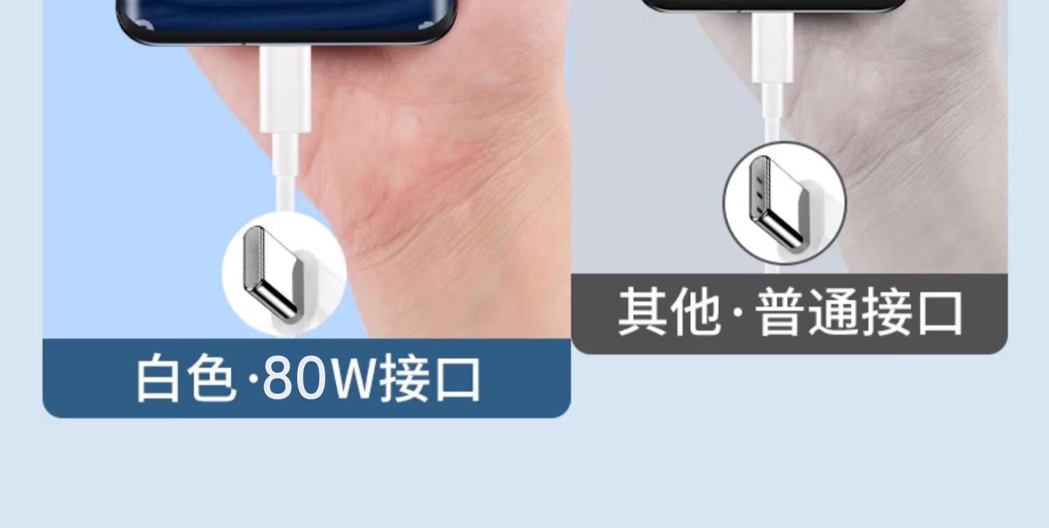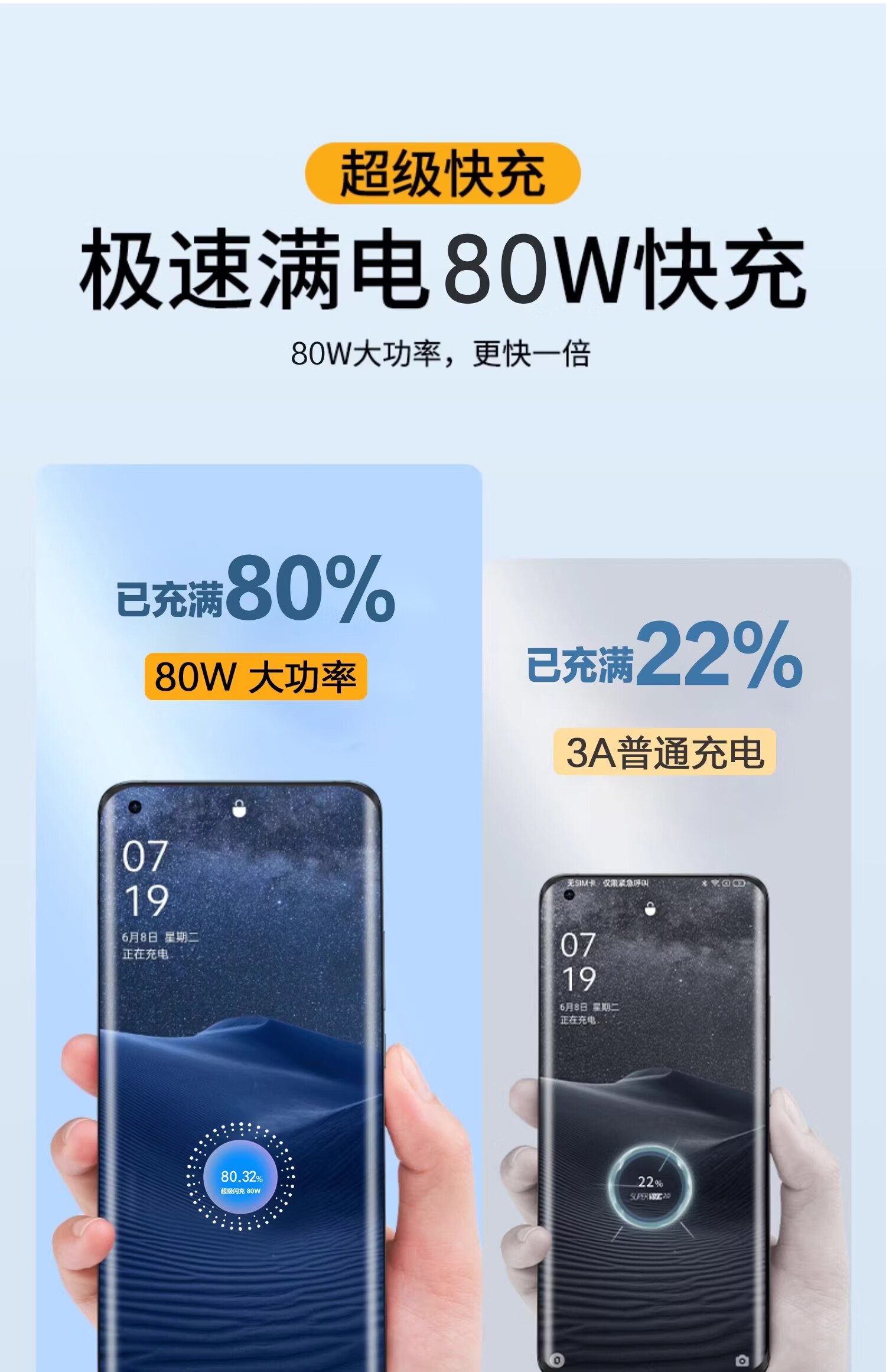 适用OPPO80W数据线opporeno8/Pro手机充电线Reno9pro+ reno10超级闪充数据线8A快充线加长 【2米+2米】两条优惠装 80W超级闪充线