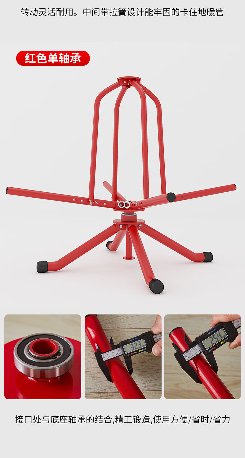 京工京选新款可折叠地暖放管器盘管地热盘架子阻尼双轴承铺管神器加厚支架 灰色双轴承+压杆+收纳包