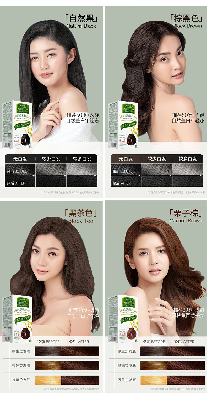章华生态染发霜142ml*2盒(一梳黑染发剂黑色系可盖白不含对苯二胺) 自然黑色2盒(自然盖白)