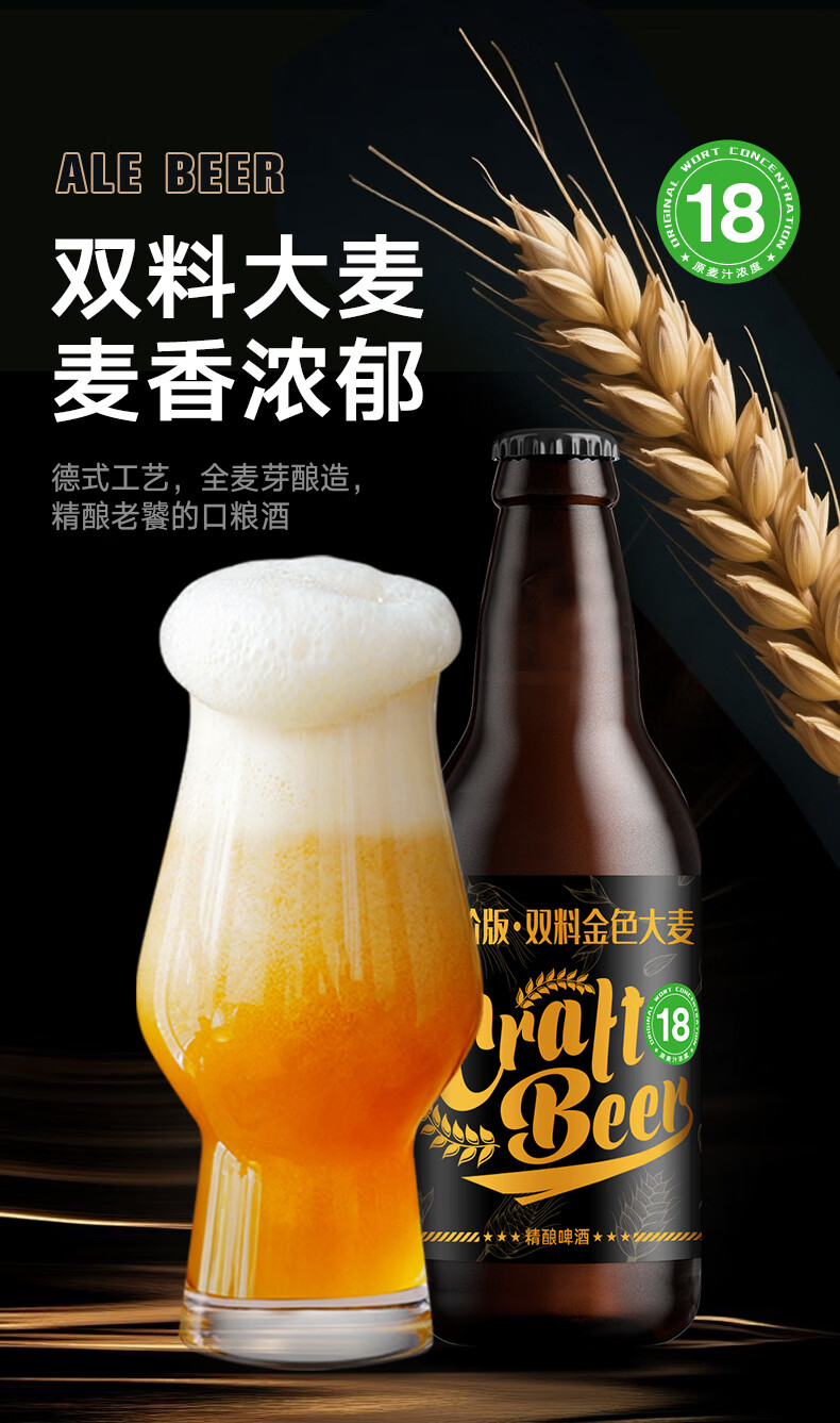 黑狸精酿原浆啤酒整箱礼盒 修道院风格高度烈性啤酒 18°P 双料·金色大麦【体验装】330ml*2瓶
