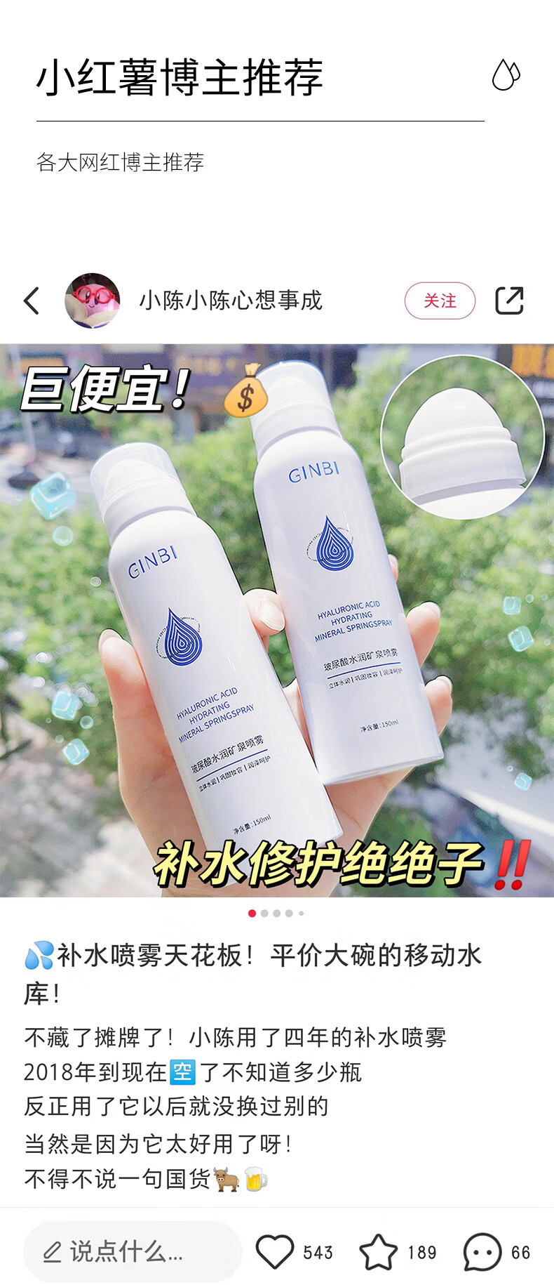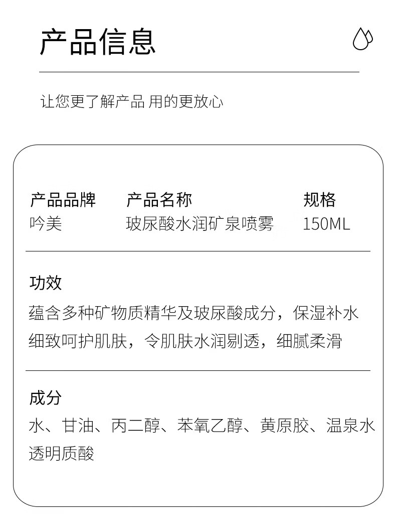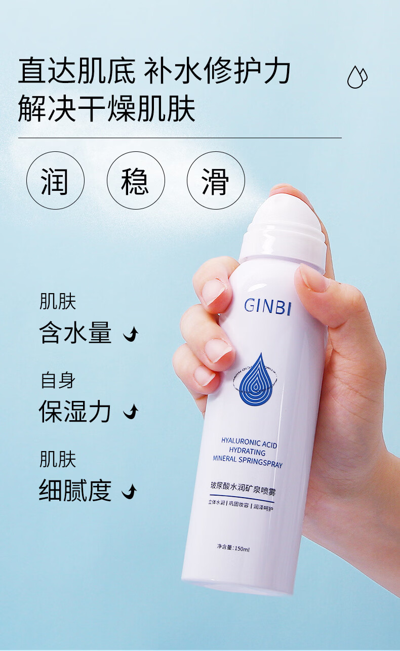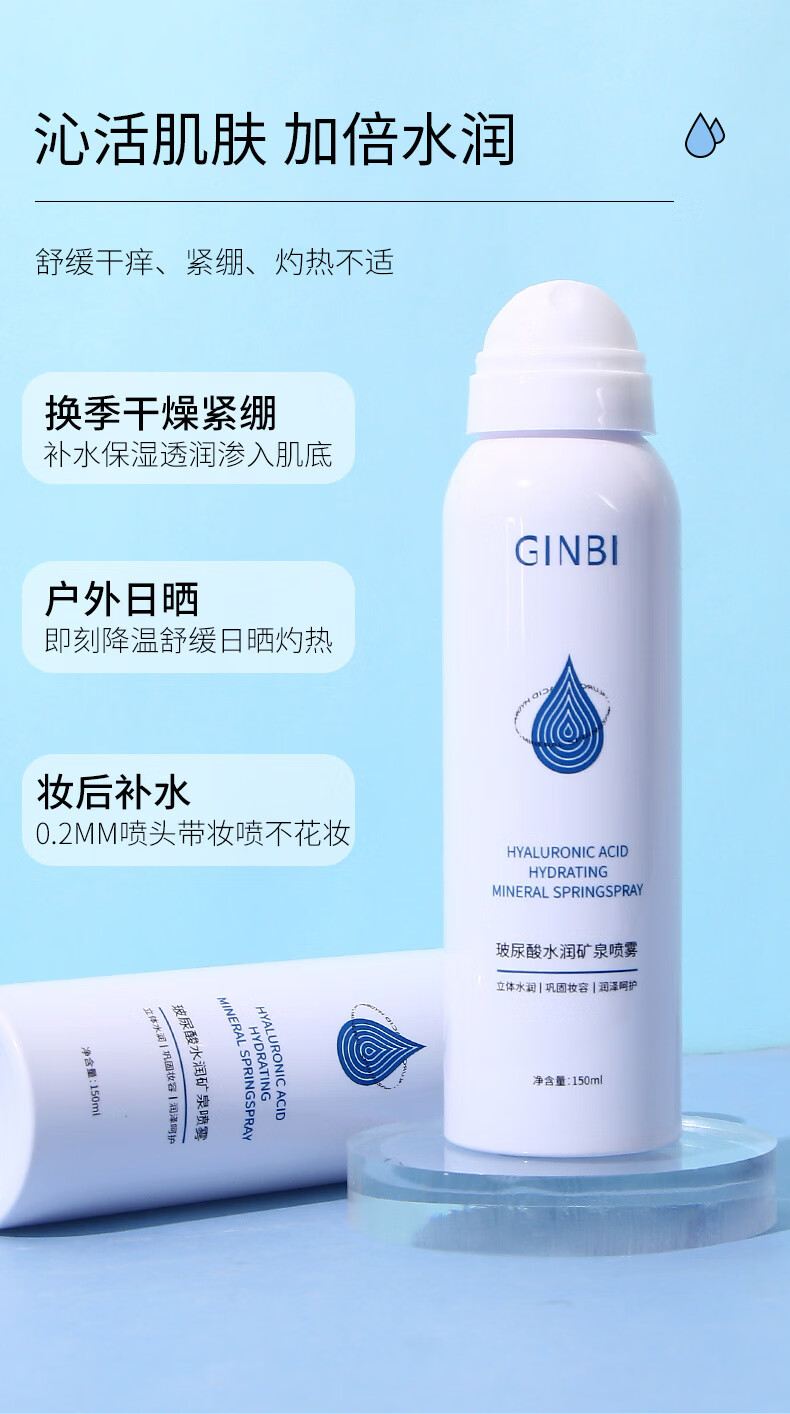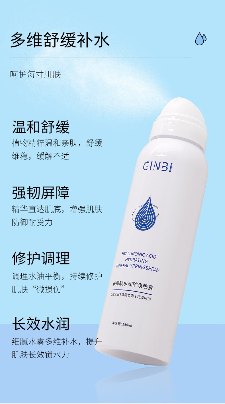 吟美(CINBI)玻尿酸水润矿泉喷雾保湿补水晒后修复湿敷妆前爽肤水爆款 150ml 玻尿酸水润矿泉喷雾