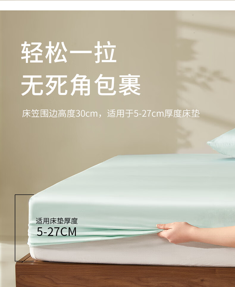 一默【床笠断码清仓】床笠高品质床笠单件全包防滑床垫套全棉床罩床笠 长绒棉床笠 丨清泓蓝 180cm*200cm +30cm【5-27cm床垫用】