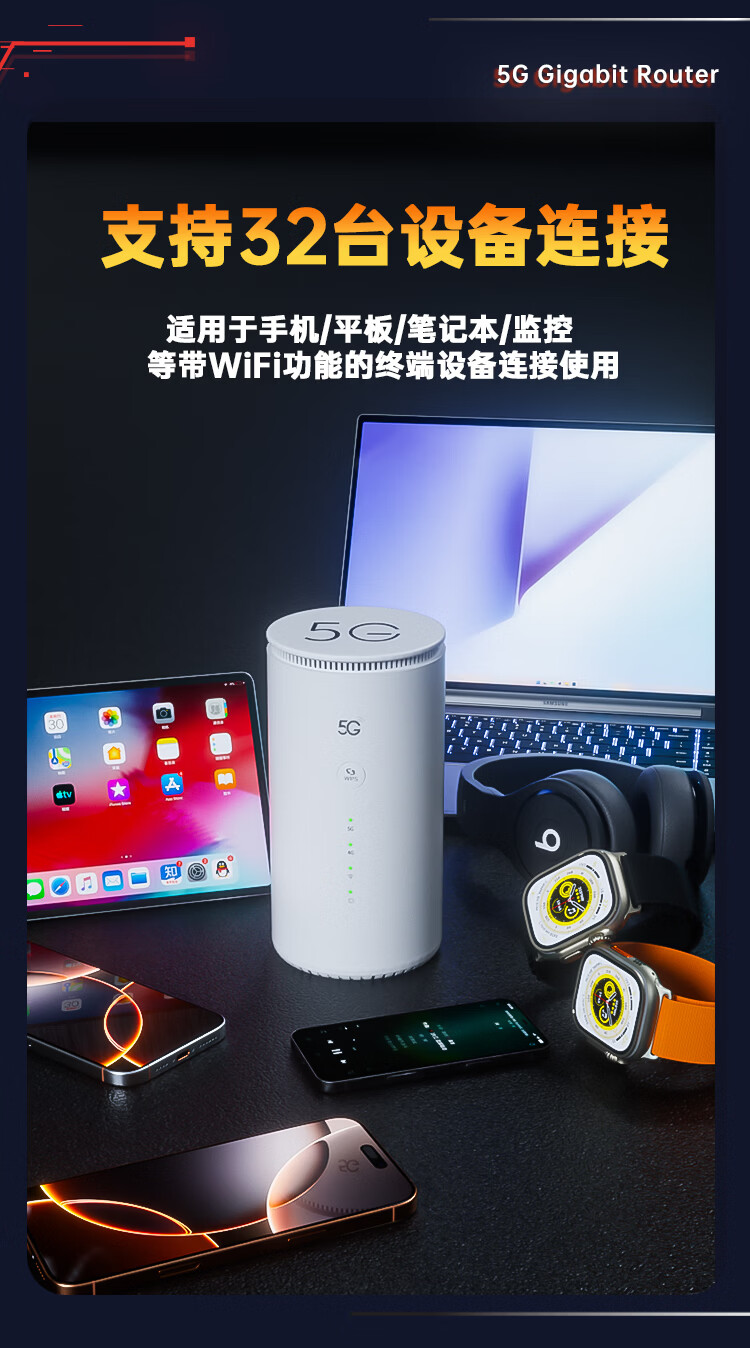 羽浪5g随身wifi6移动无线cpe路由器免插卡千兆双频车载上网高速流量户外直播商务办公2025款移动wifi 5G旗舰顶配版【性能提升搭载高增益天线】 支持32台设备连接