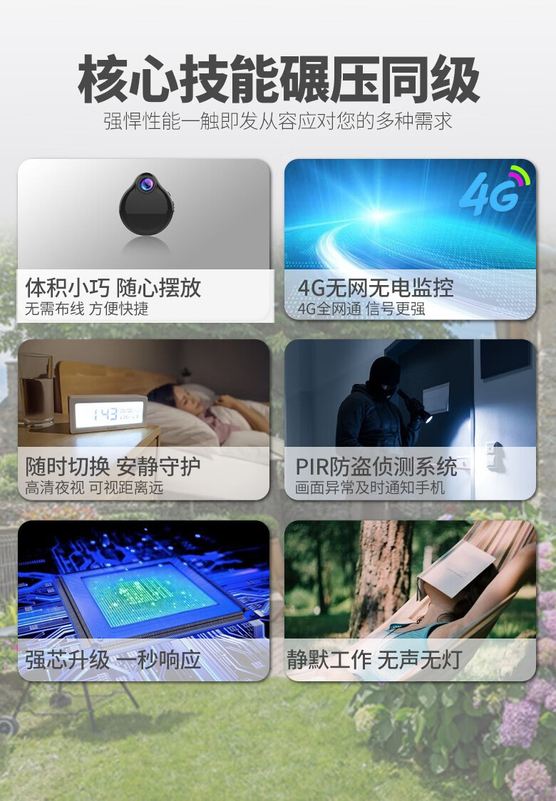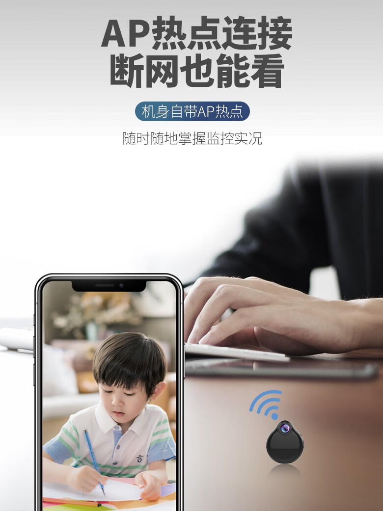 4K小型摄像头家用高清免插电无线远程监控器小巧随身便携隐监视器 高配wifi版:高清夜视+16G