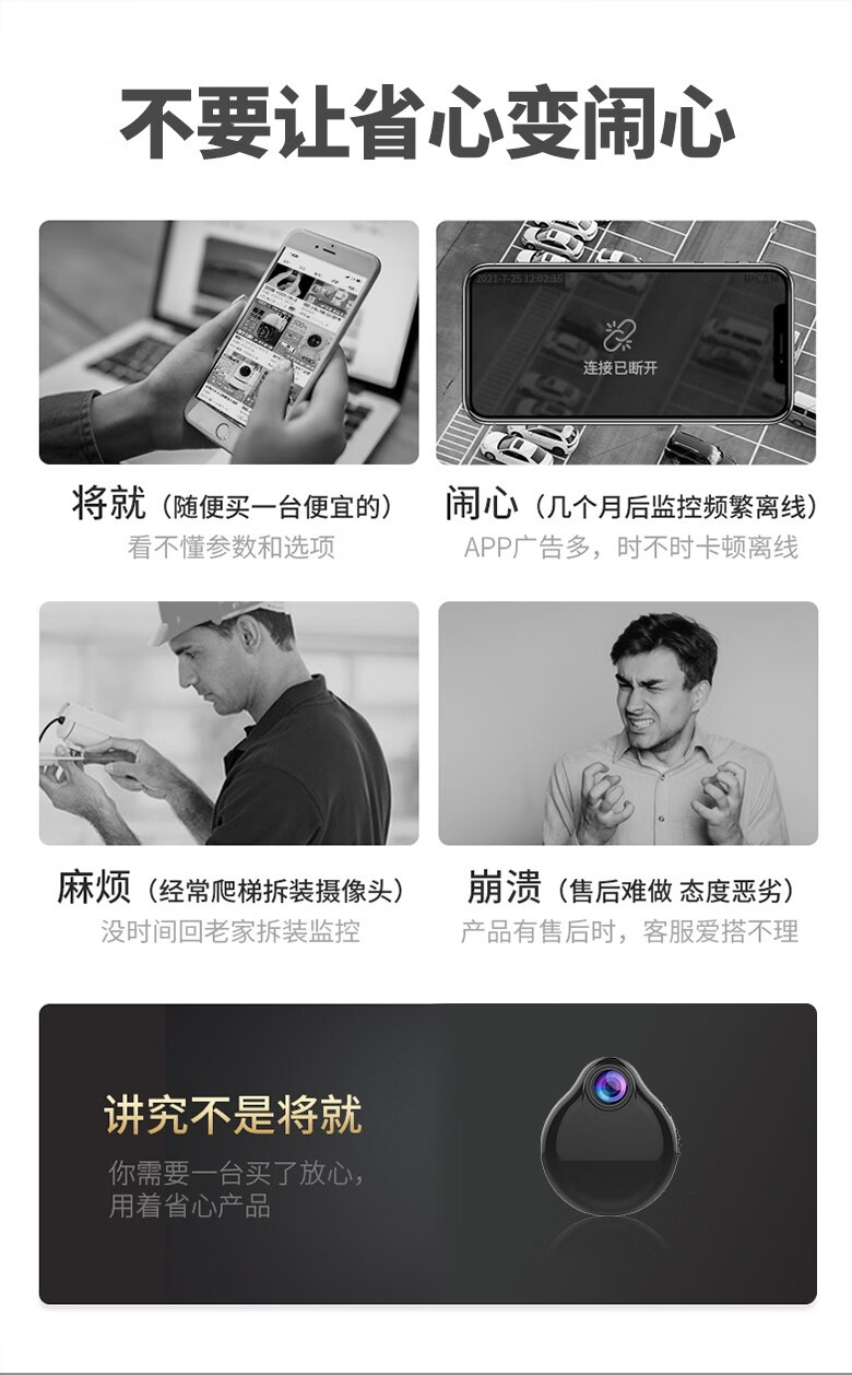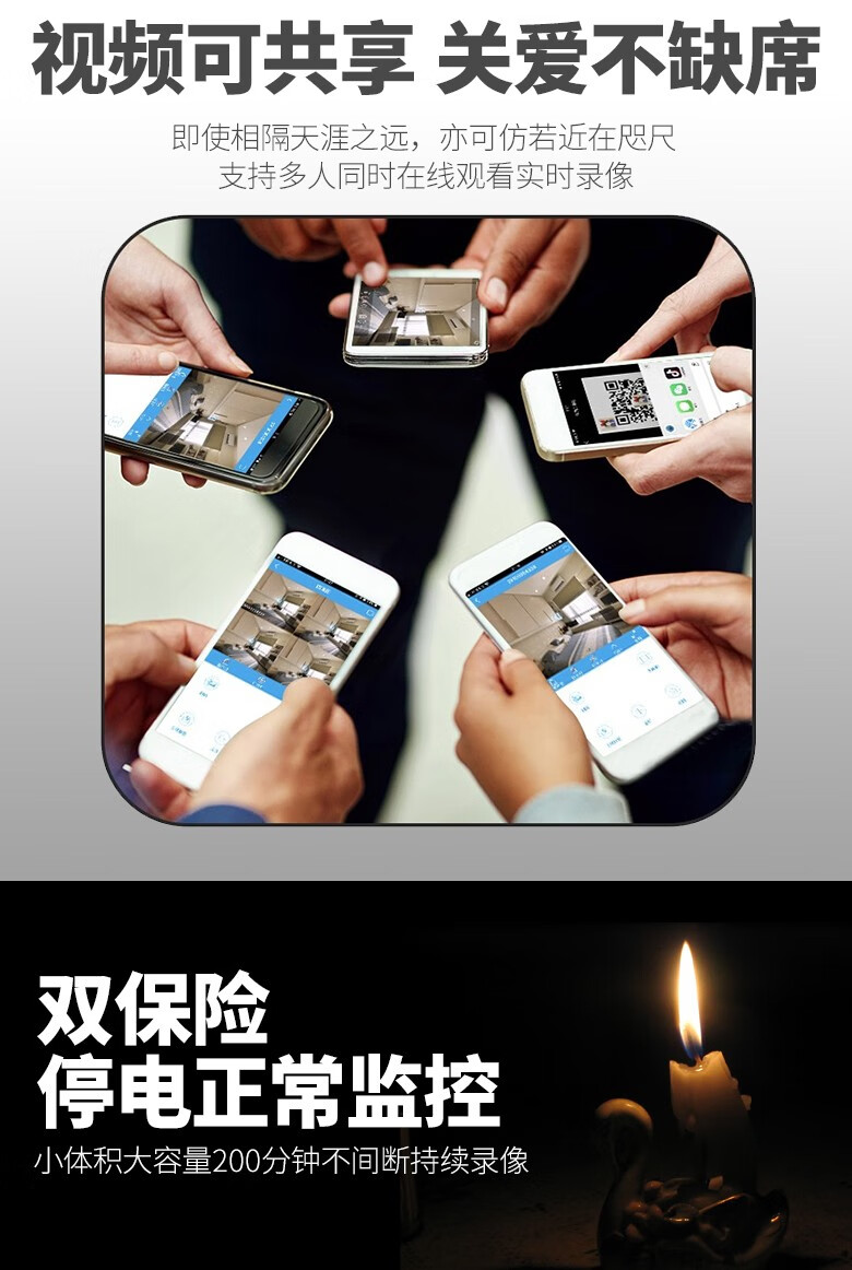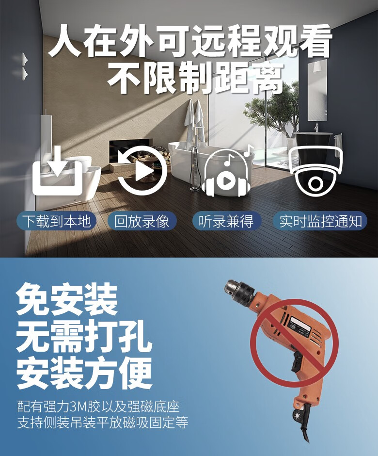 无线免电摄像影头免插电免安装无需网络高清家用连手机远程监控器 【黑色】超清版+手机远程+免安装 【无卡】不能插卡