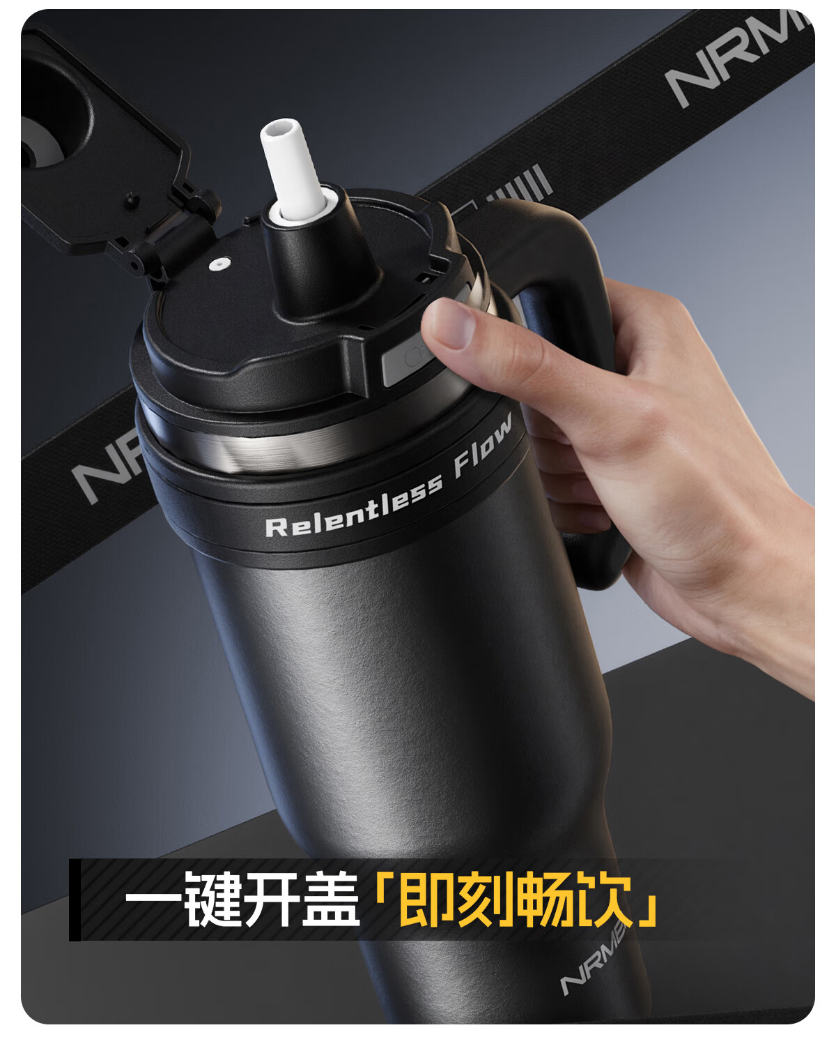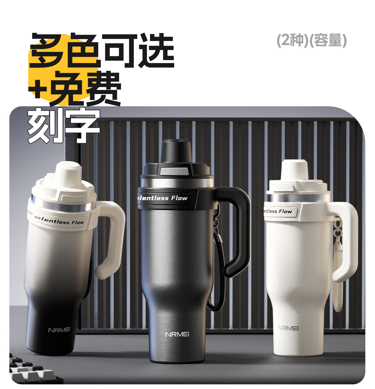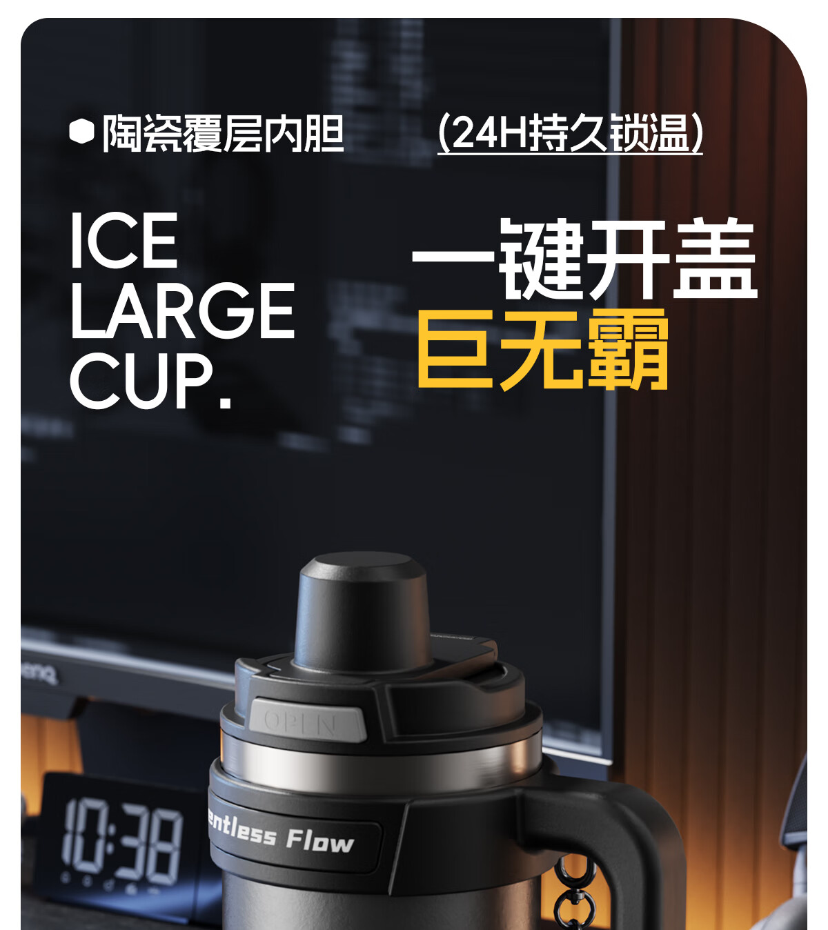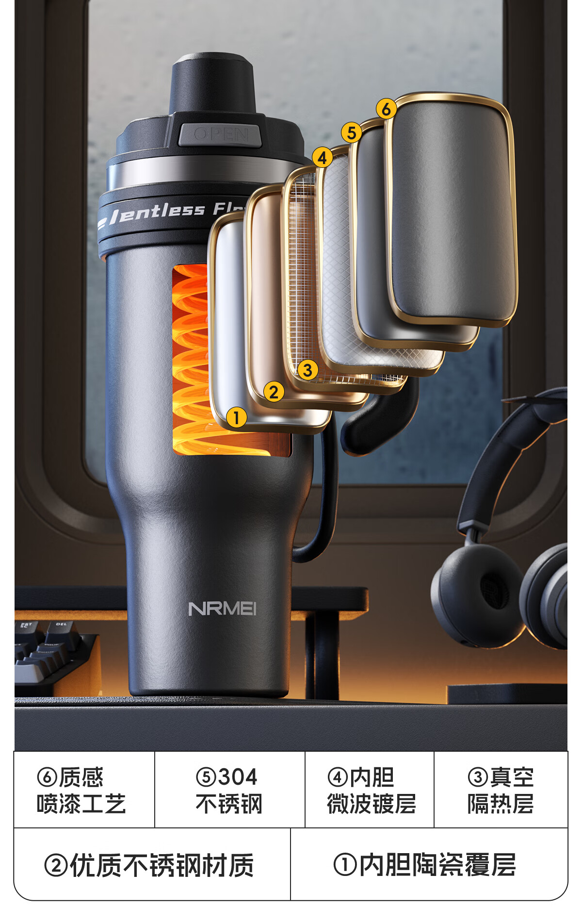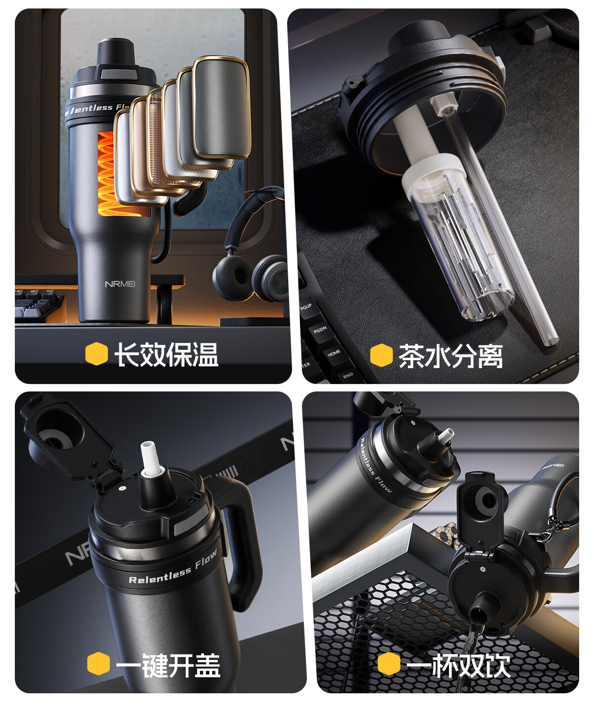 恩尔美(nRMEi)巨无霸保温杯大容量冰霸杯男士2025新款陶瓷吸管车载专用水壶 流光渐变1250ml【陶瓷内胆+双饮+茶仓】