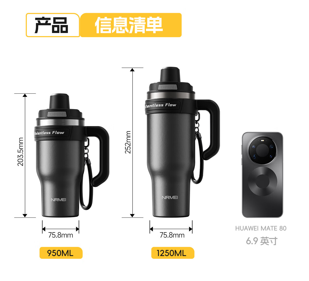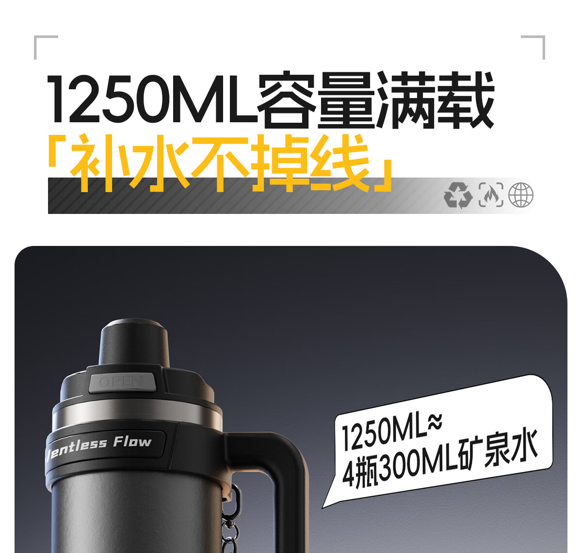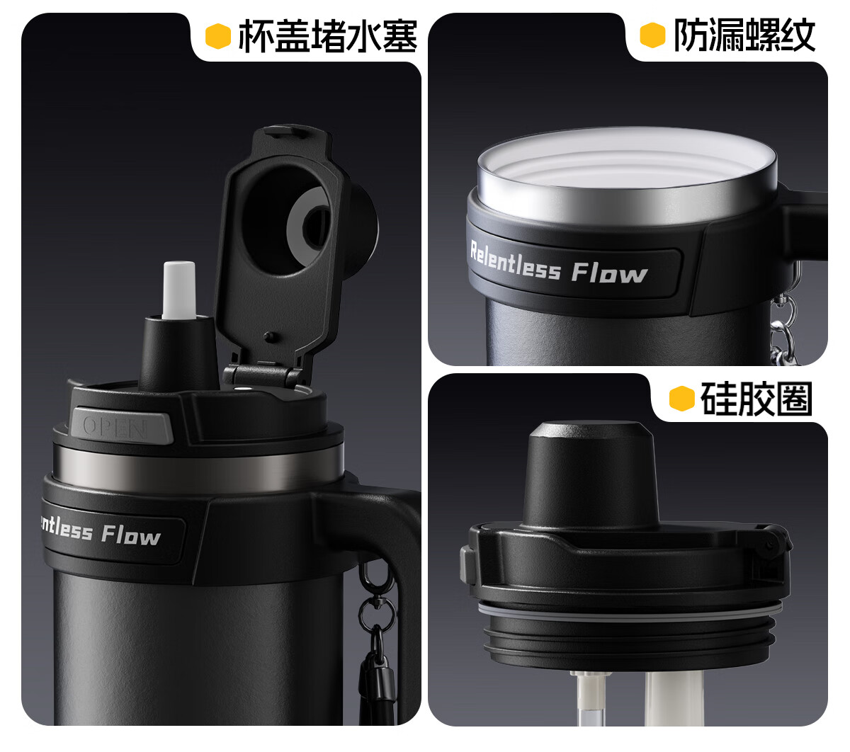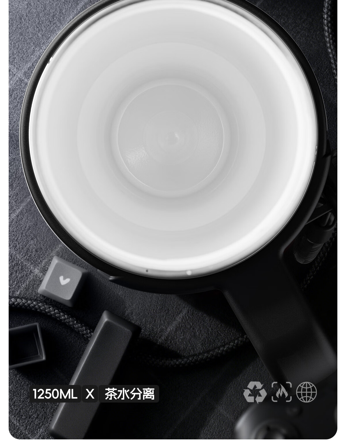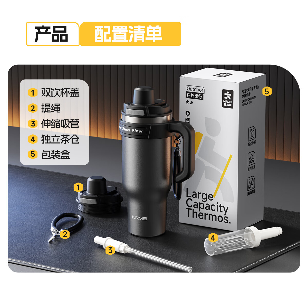 恩尔美(nRMEi)巨无霸保温杯大容量冰霸杯男士2025新款陶瓷吸管车载专用水壶 流光渐变1250ml【陶瓷内胆+双饮+茶仓】