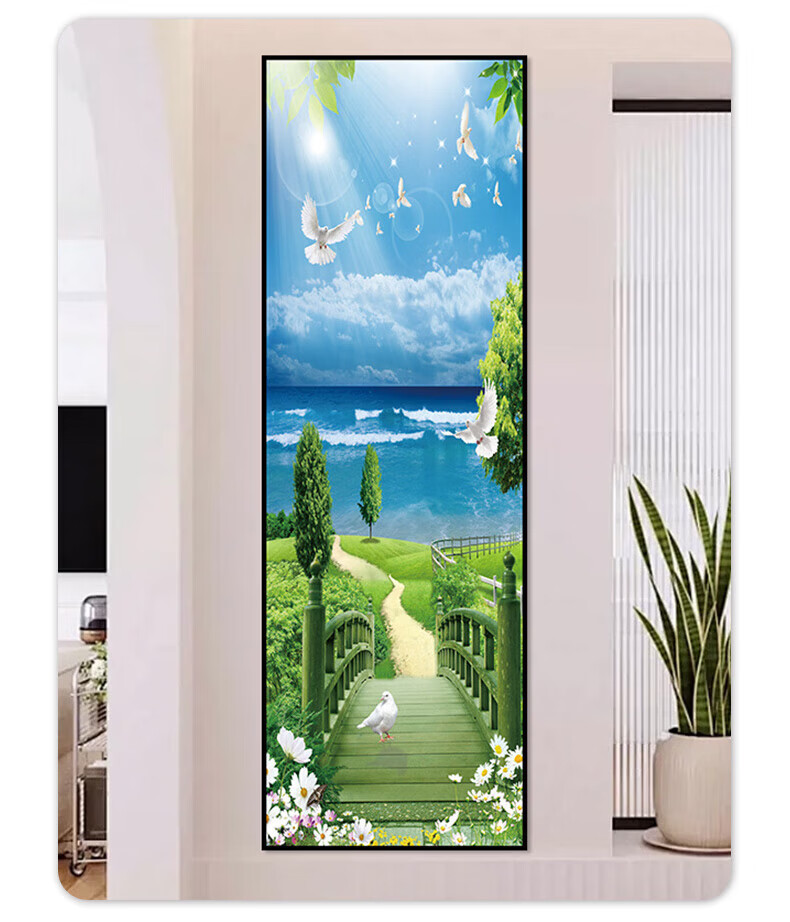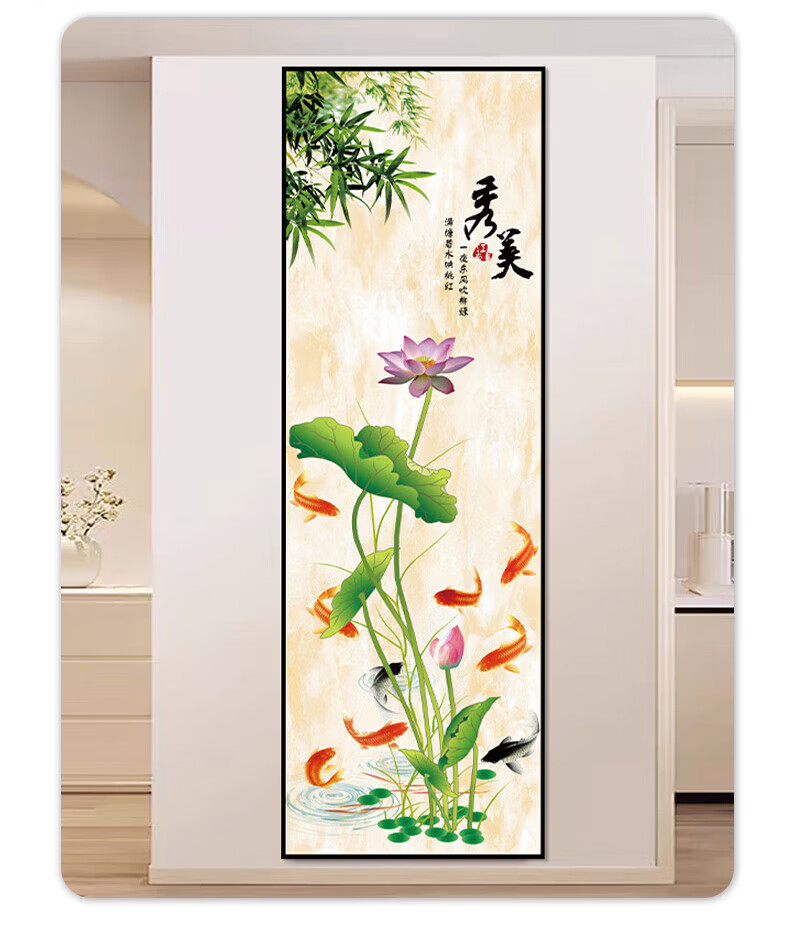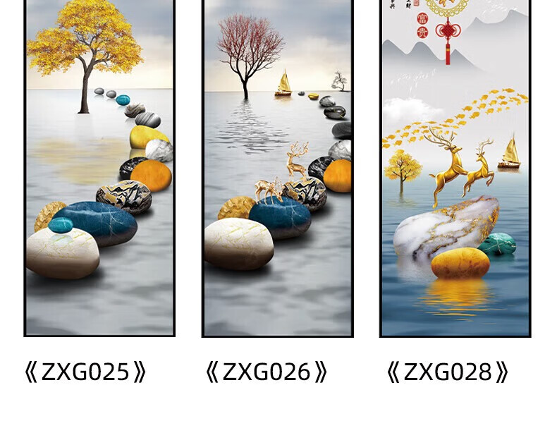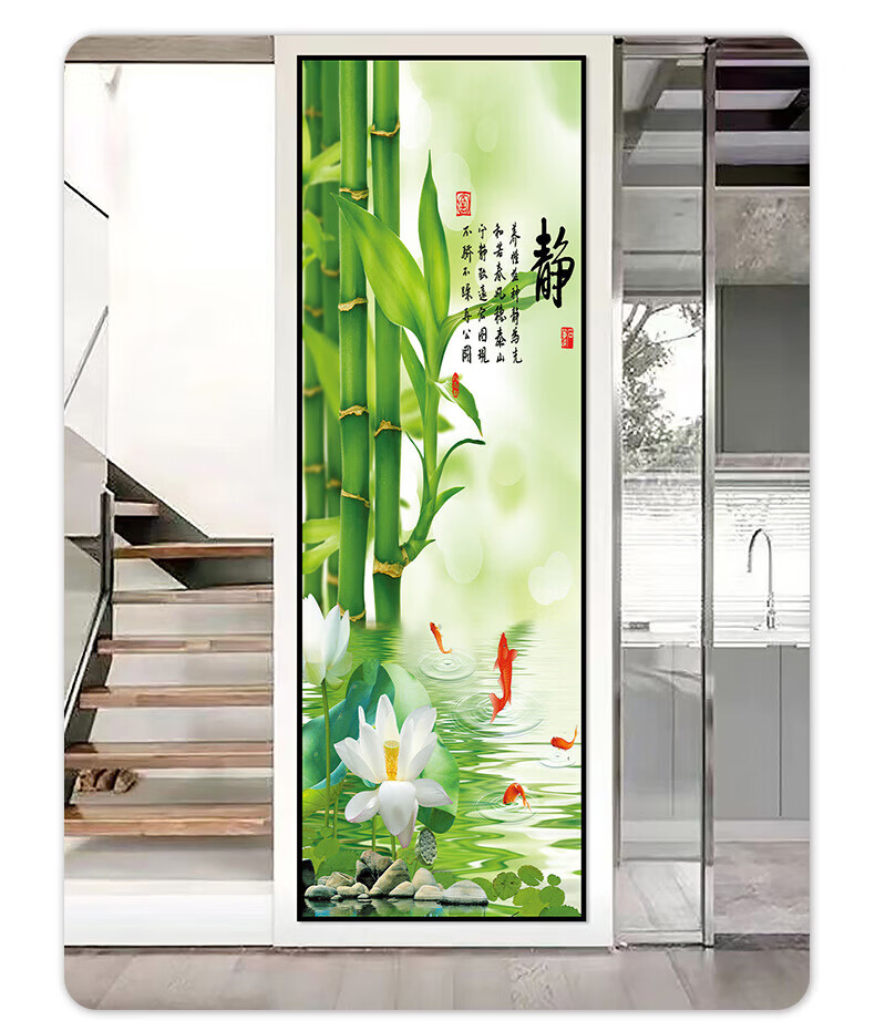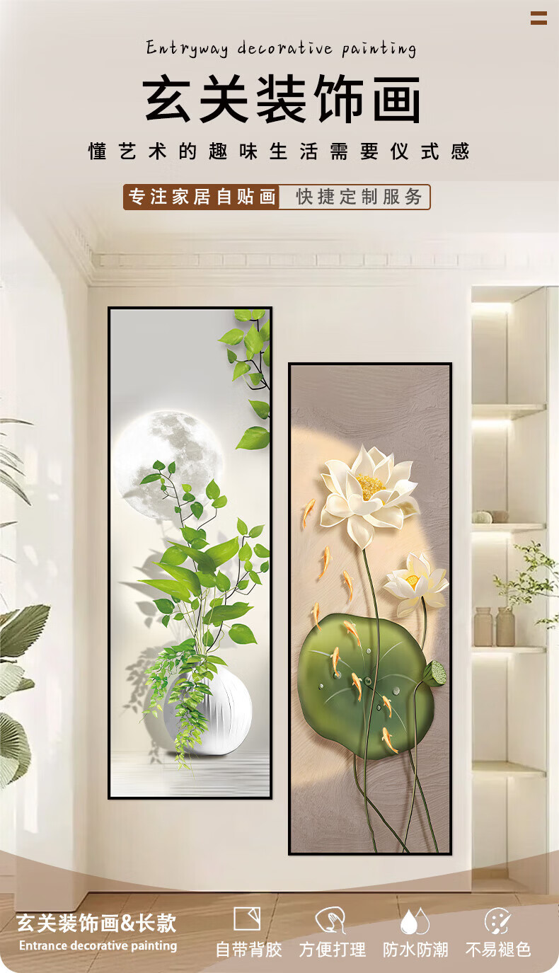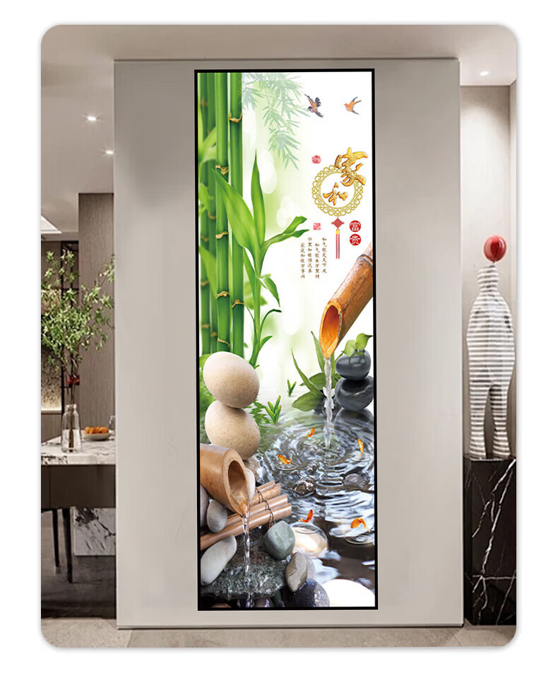 流水生财玄关装饰画入户走廊过道贴画客厅壁画现代简约立体自粘画 38.流水生财 宽80cm-高240cm