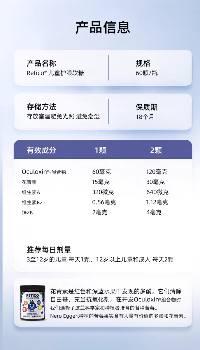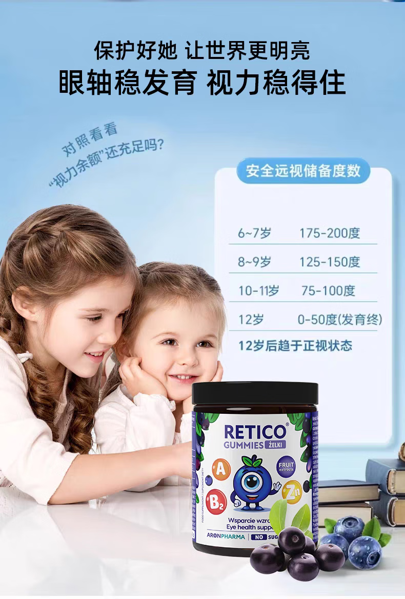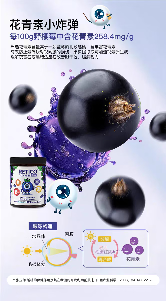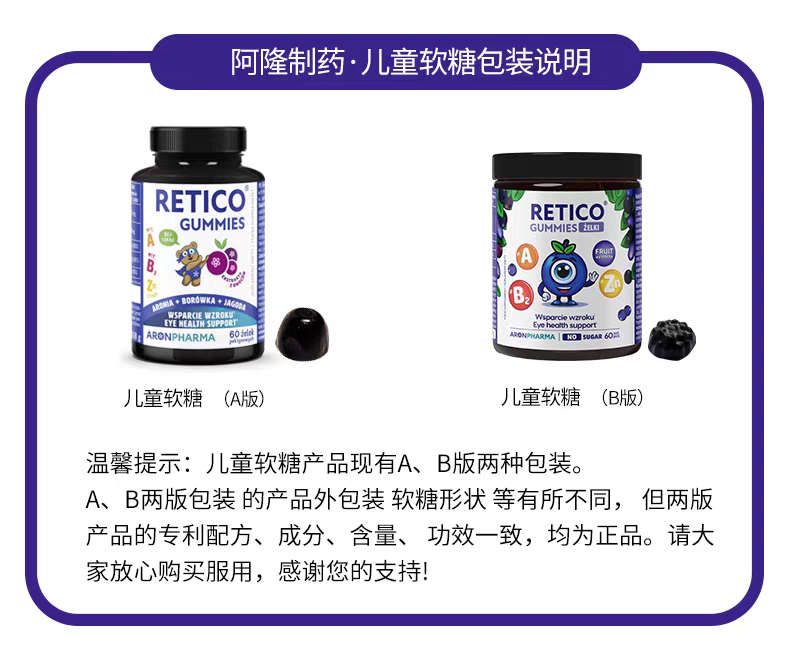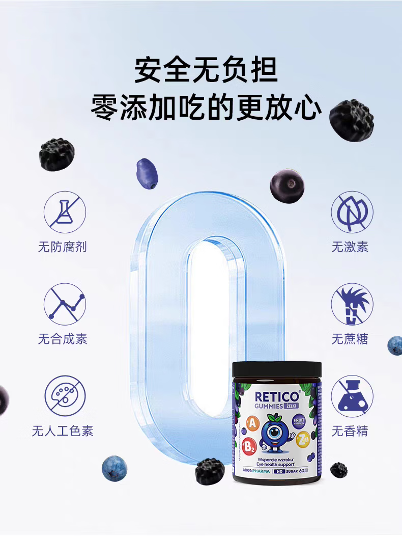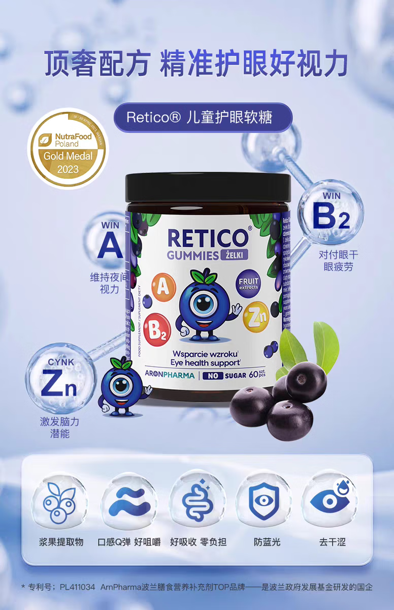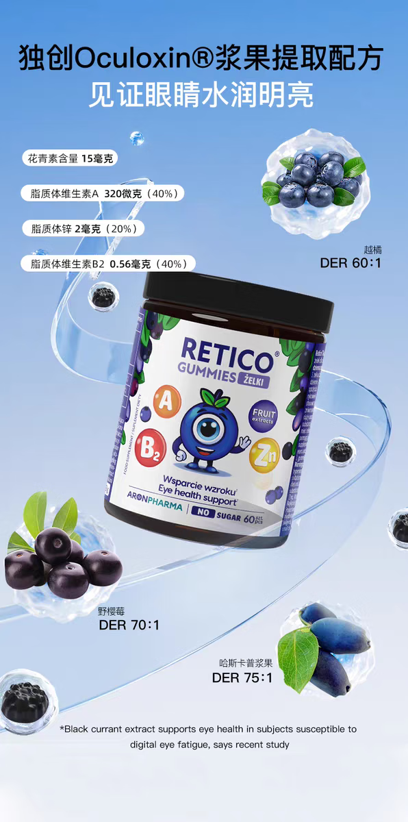 Aronpharma波兰进口Retico®儿童浆果护眼软糖保护视力苦莓花青素 保税仓发货百分百正品保证 一瓶装