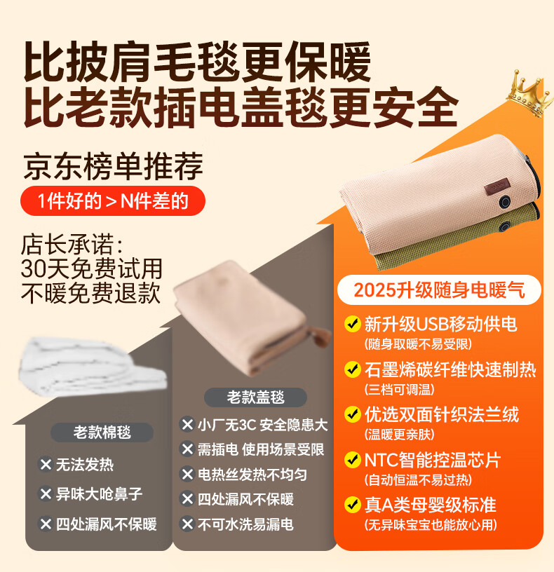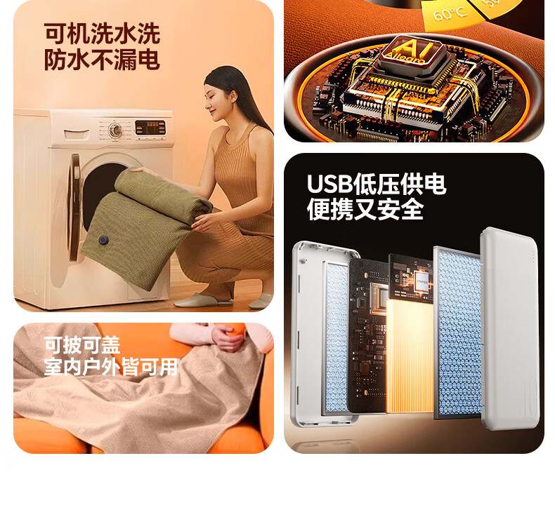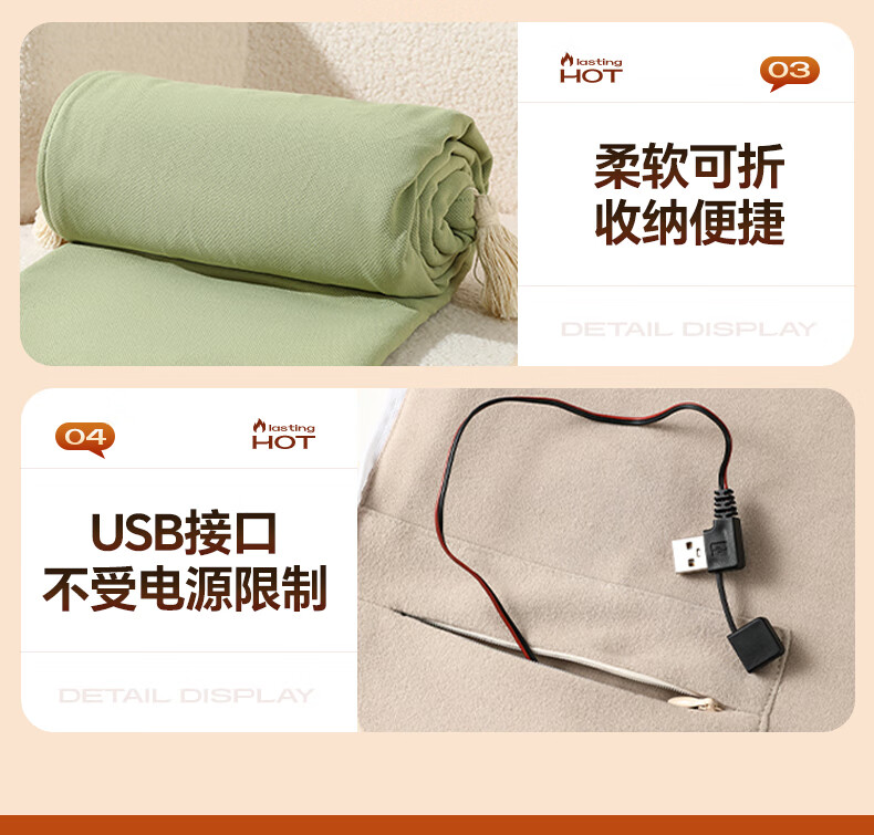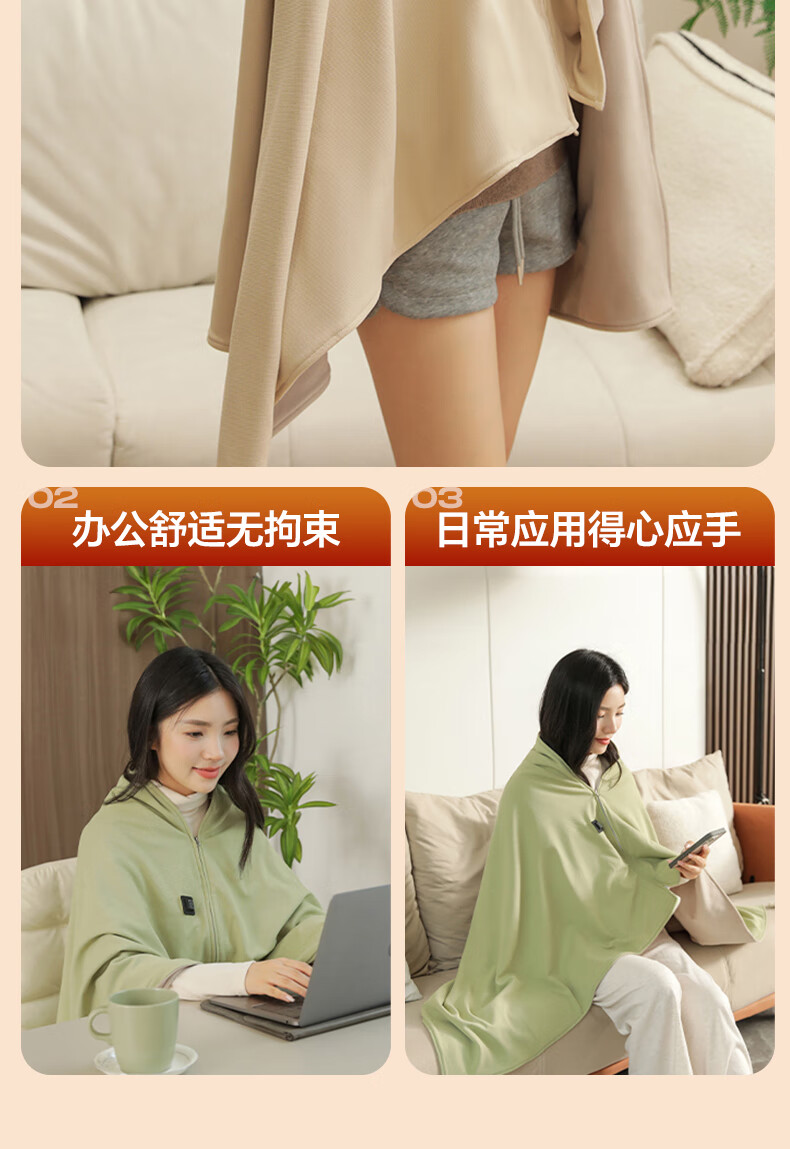 梦多福电热披肩发热暖身毯USB加热盖毯盖腿户外家用单人办公室午睡毛毯 山栀绿-三档调温丨石墨烯速热丨安全可机洗丨usb免插电