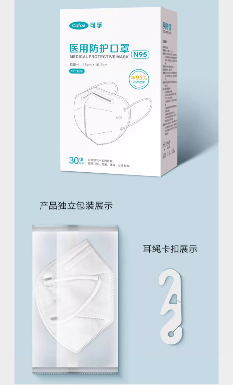 可孚N95口罩医用防护口罩 家庭成人通用口罩医疗级别无菌一次性 【灭菌级】1盒30只N95(独立包装)