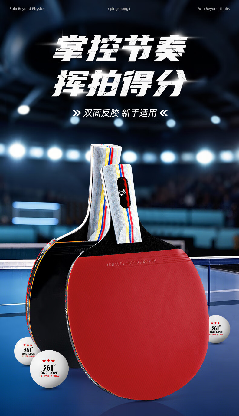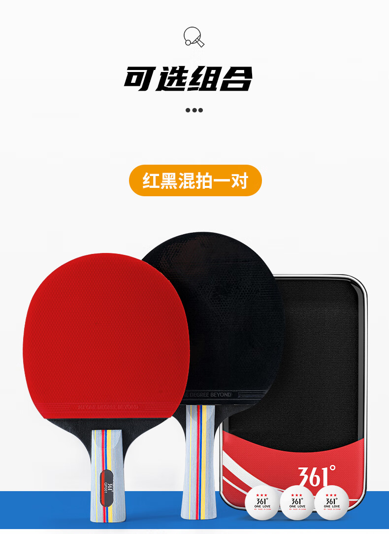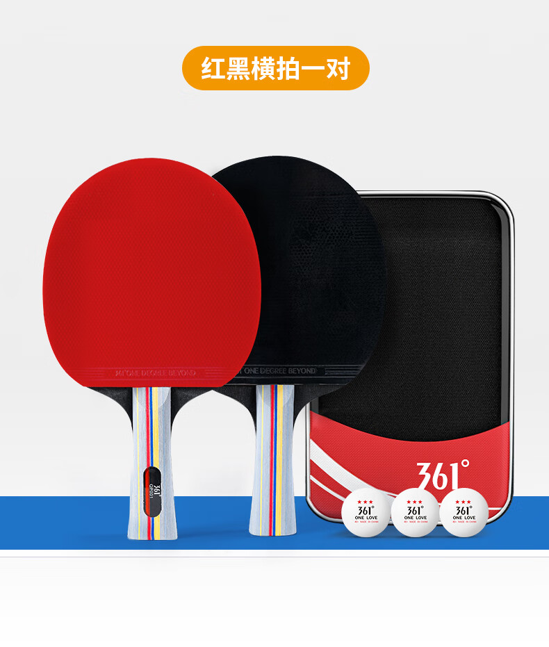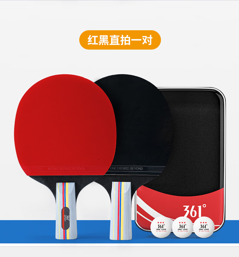 361°乒乓球拍新手入门级双拍学生成人比赛训练双面反胶横直拍套装 直拍2支 (3球+拍包)