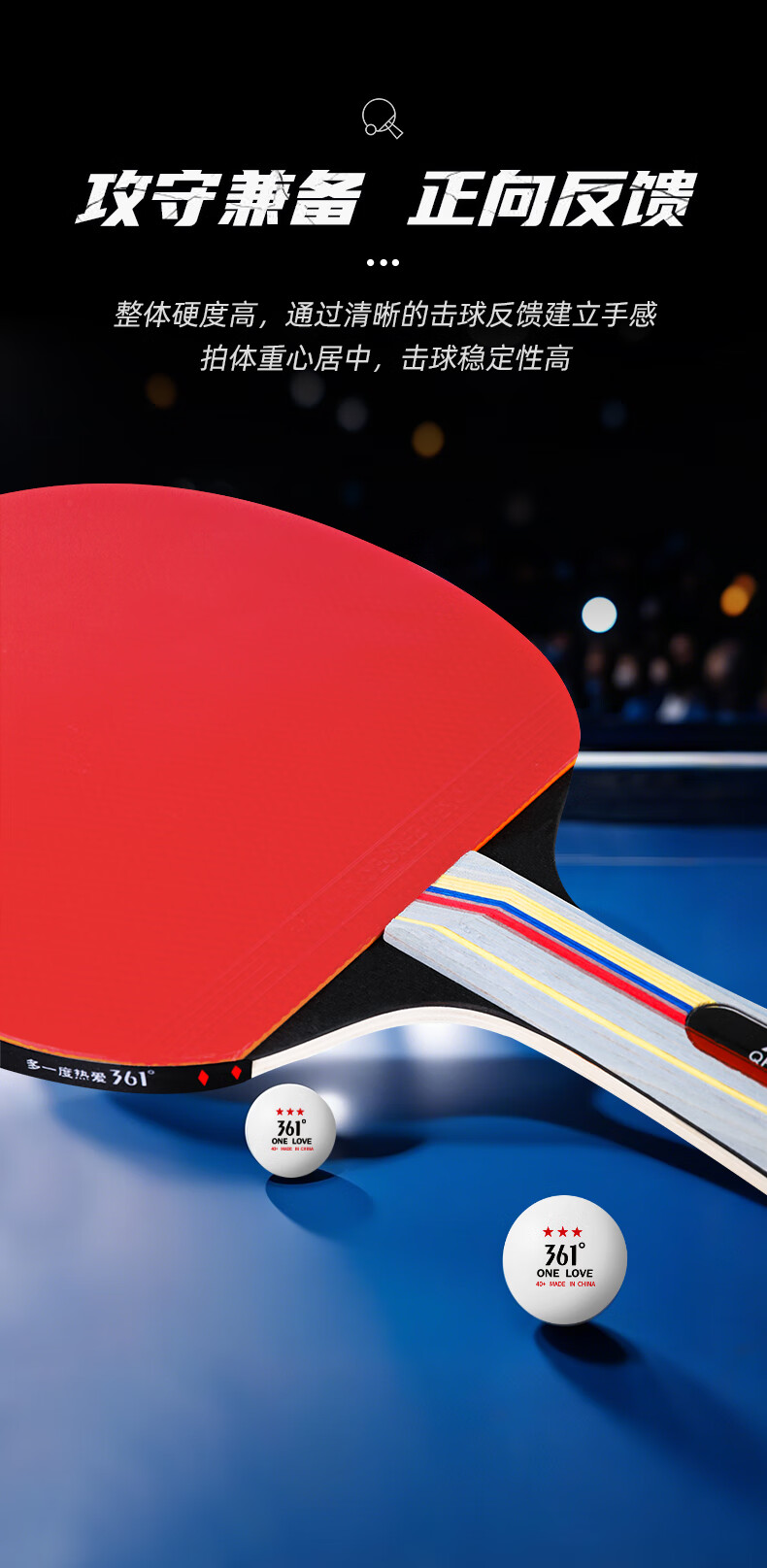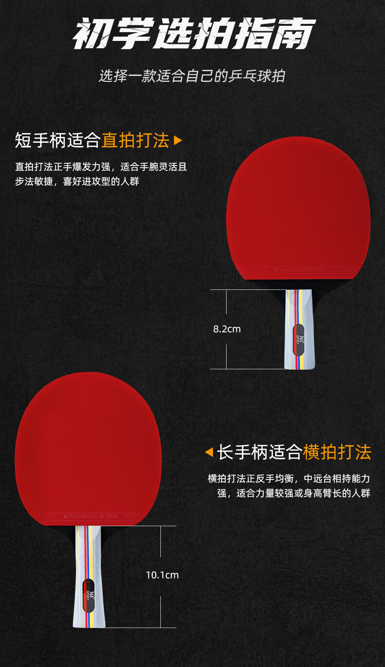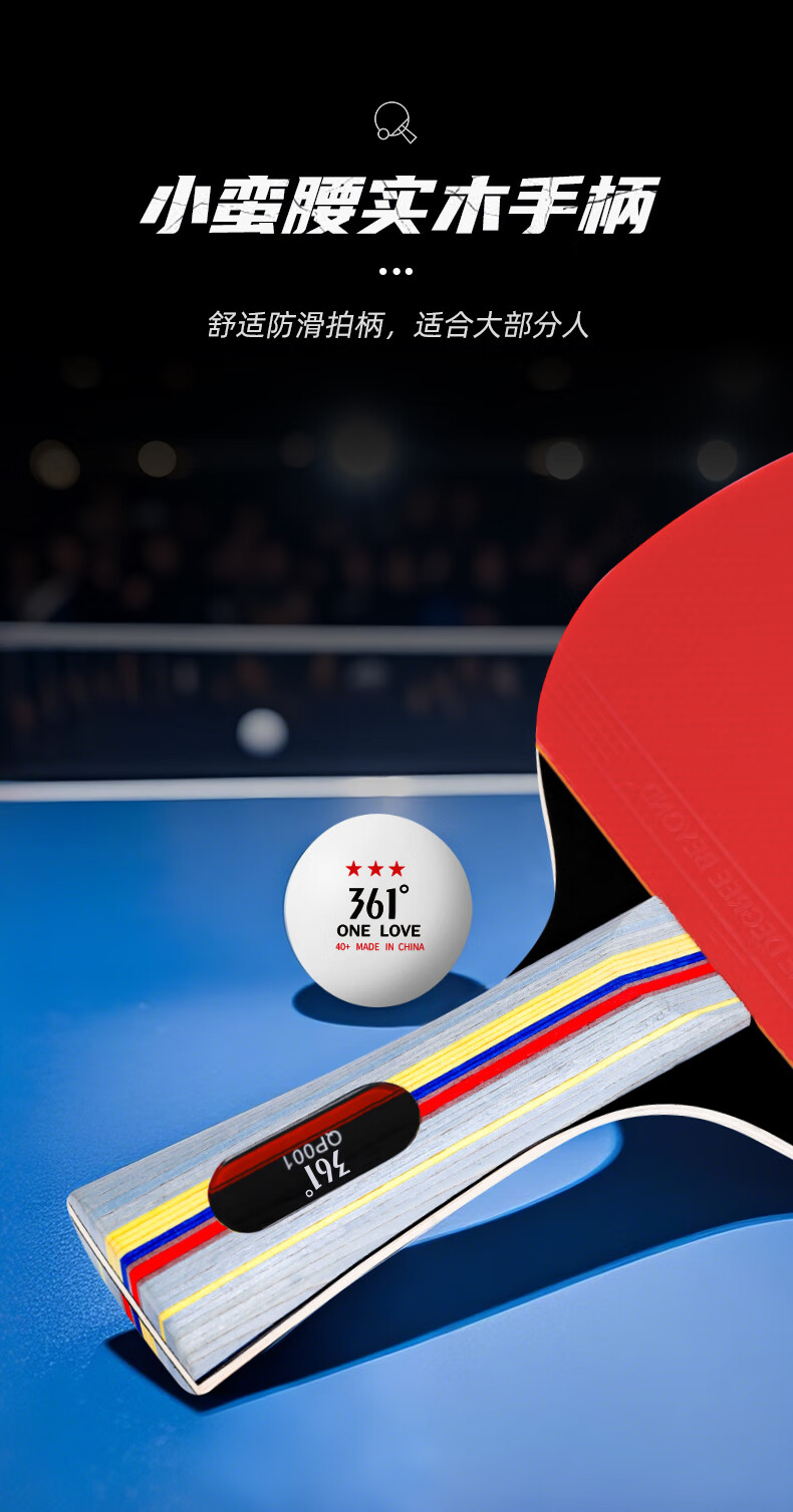 361°乒乓球拍新手入门级双拍学生成人比赛训练双面反胶横直拍套装 直拍2支 (3球+拍包)