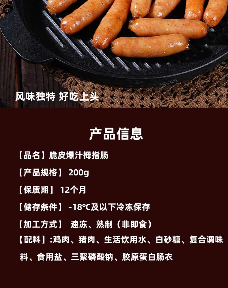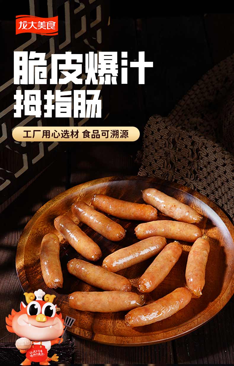 龙大美食鲜食记拇指肠烤肠200g 早餐三明治香肠 无淀粉添加 脆皮爆汁拇指肠200g*5