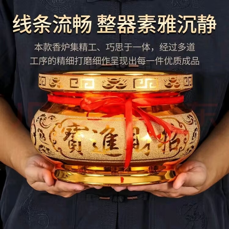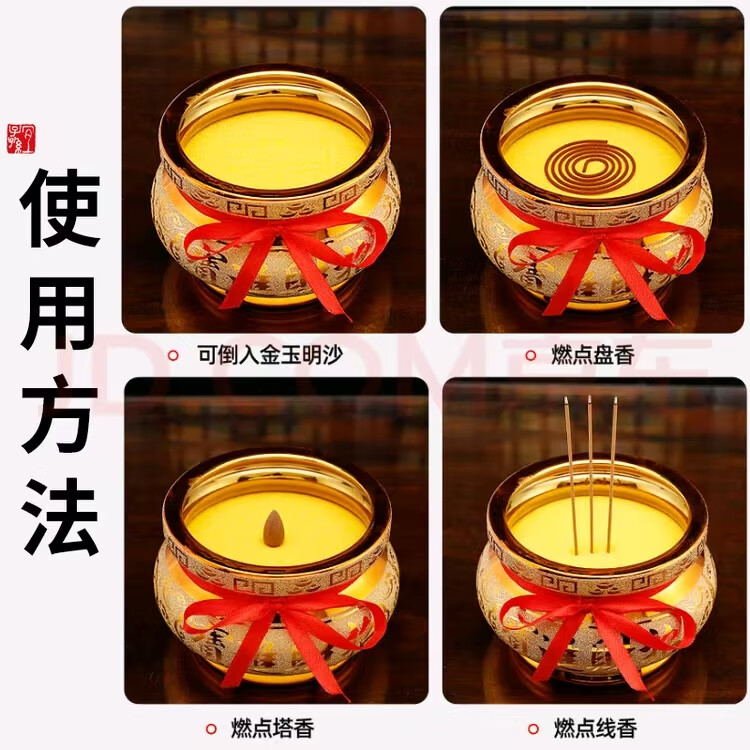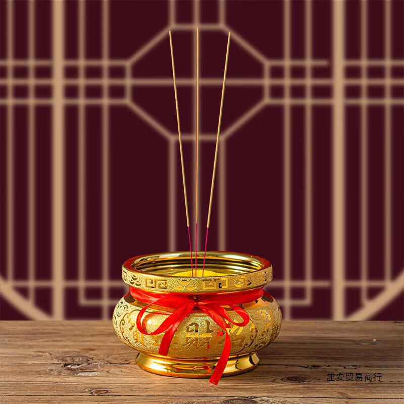 沙金陶瓷香炉供佛香炉招财进宝家用商用供奉上香室内烧香炉摆件 7寸/招财金玉沙金香炉+6包金沙