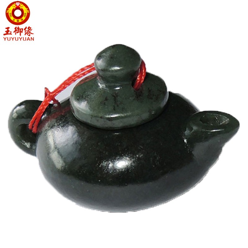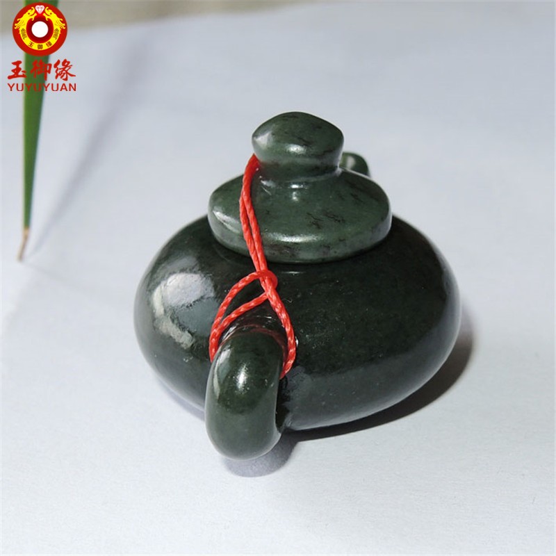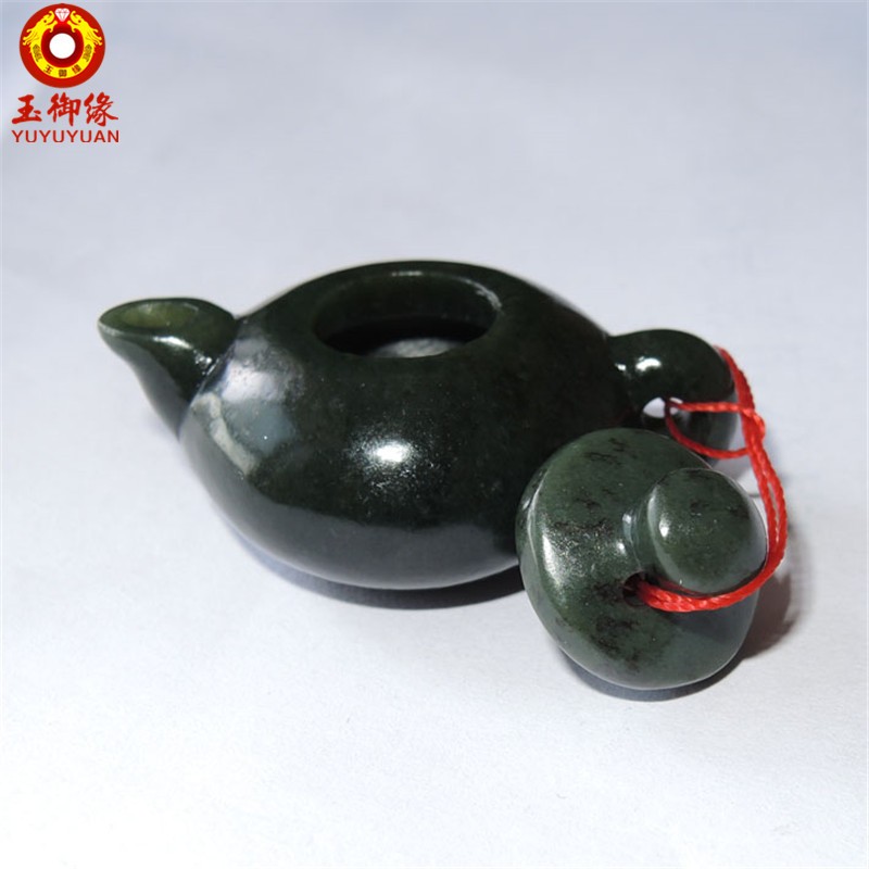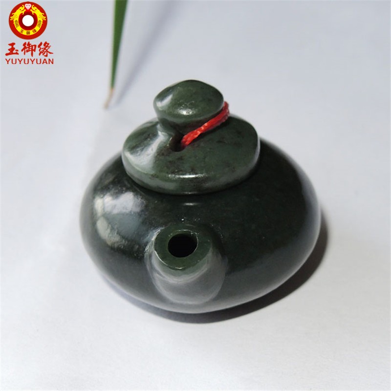 玉御缘 原创和田玉青玉玉石茶壶小摆件百搭送男友长辈礼物