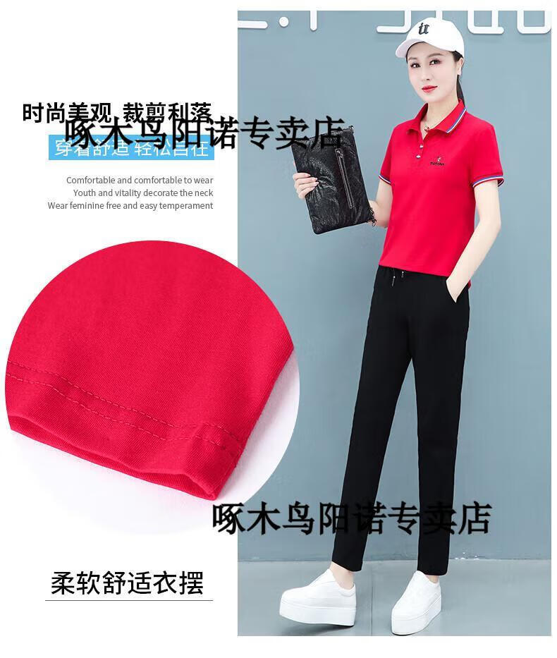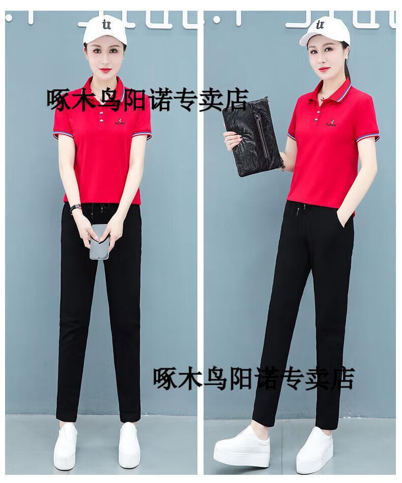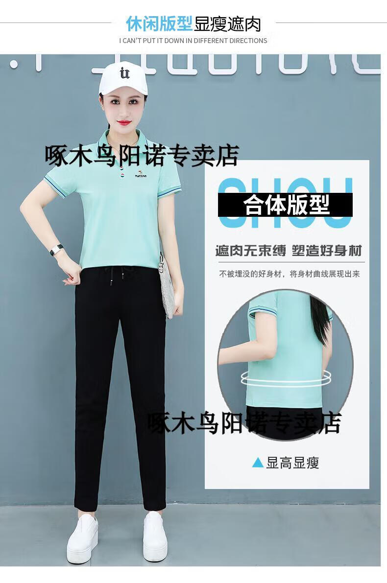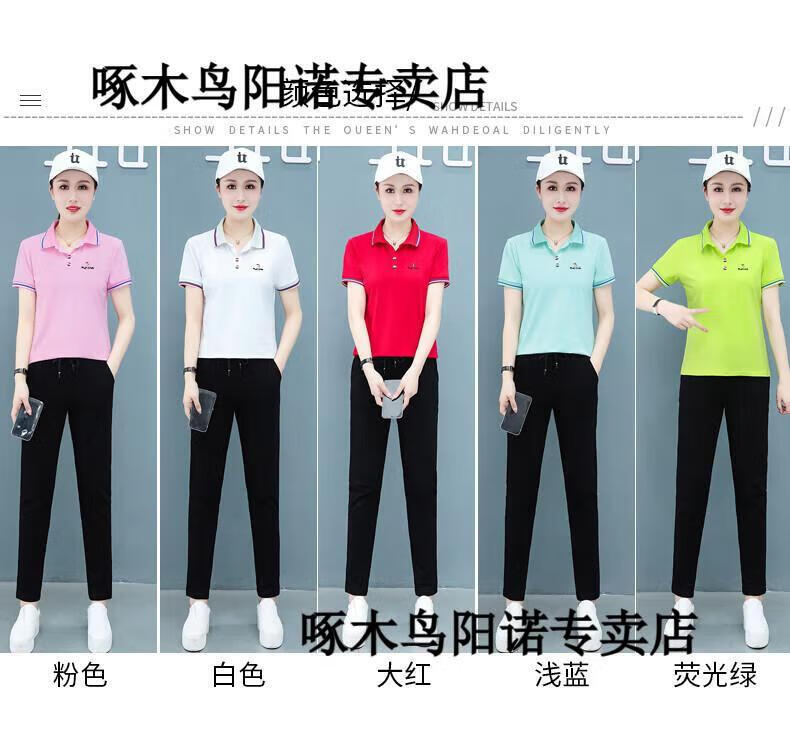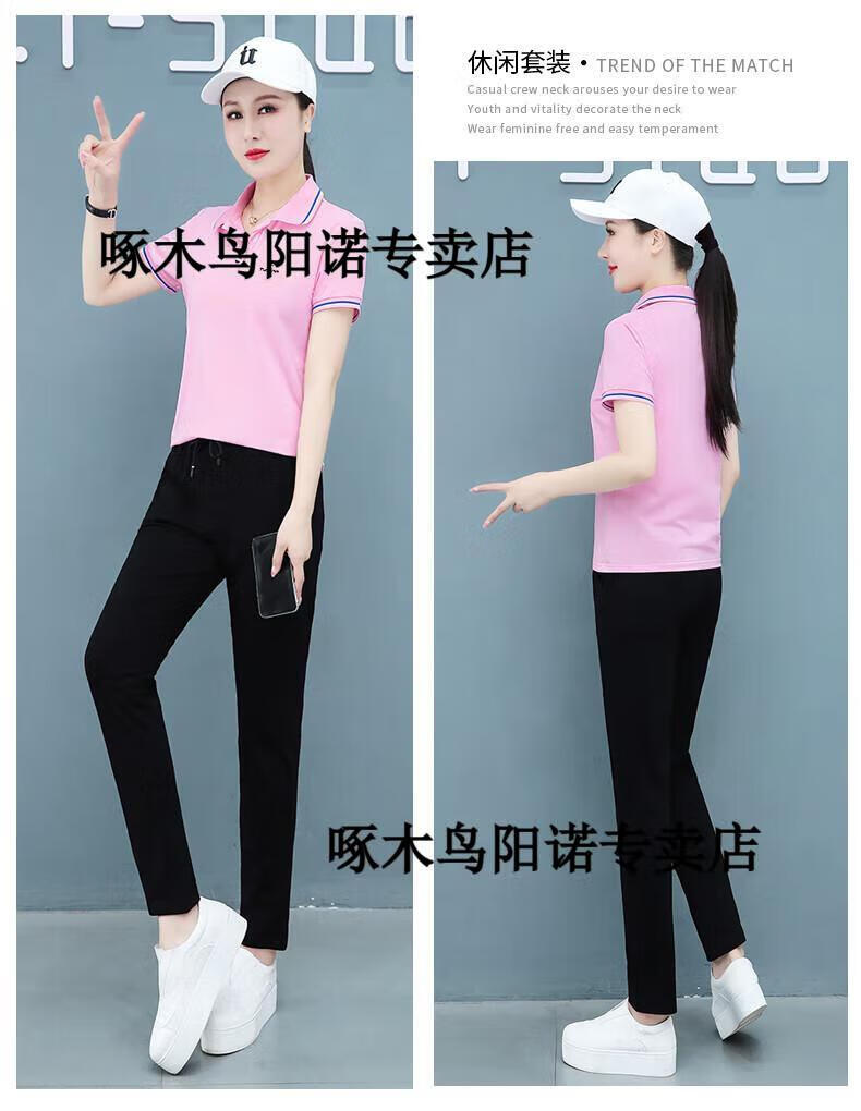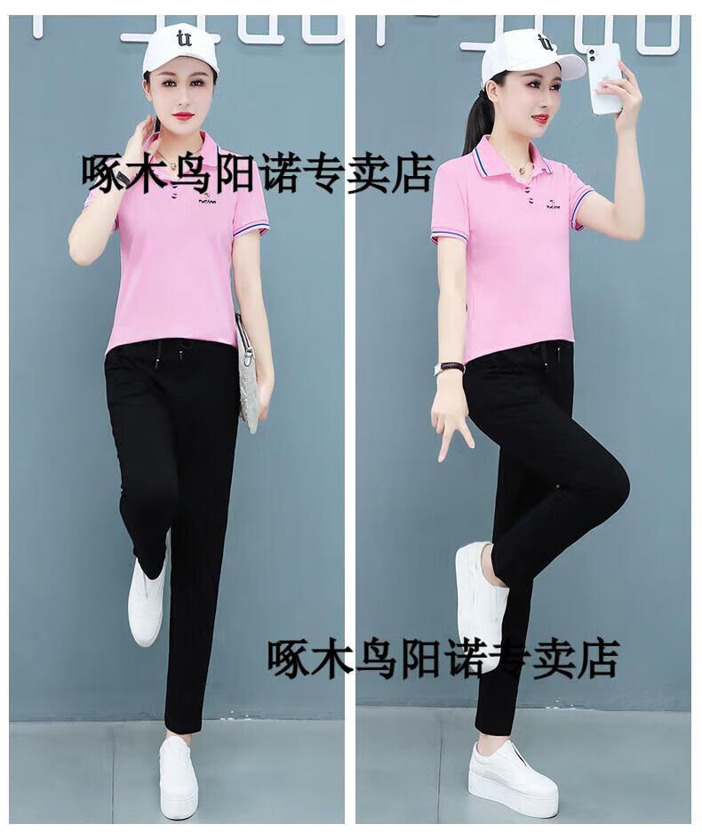 啄木鸟运动套装女纯棉运动服夏季新款时尚妈妈薄款短袖跑步休闲两件套 CF2261#粉色 M(100斤以内)