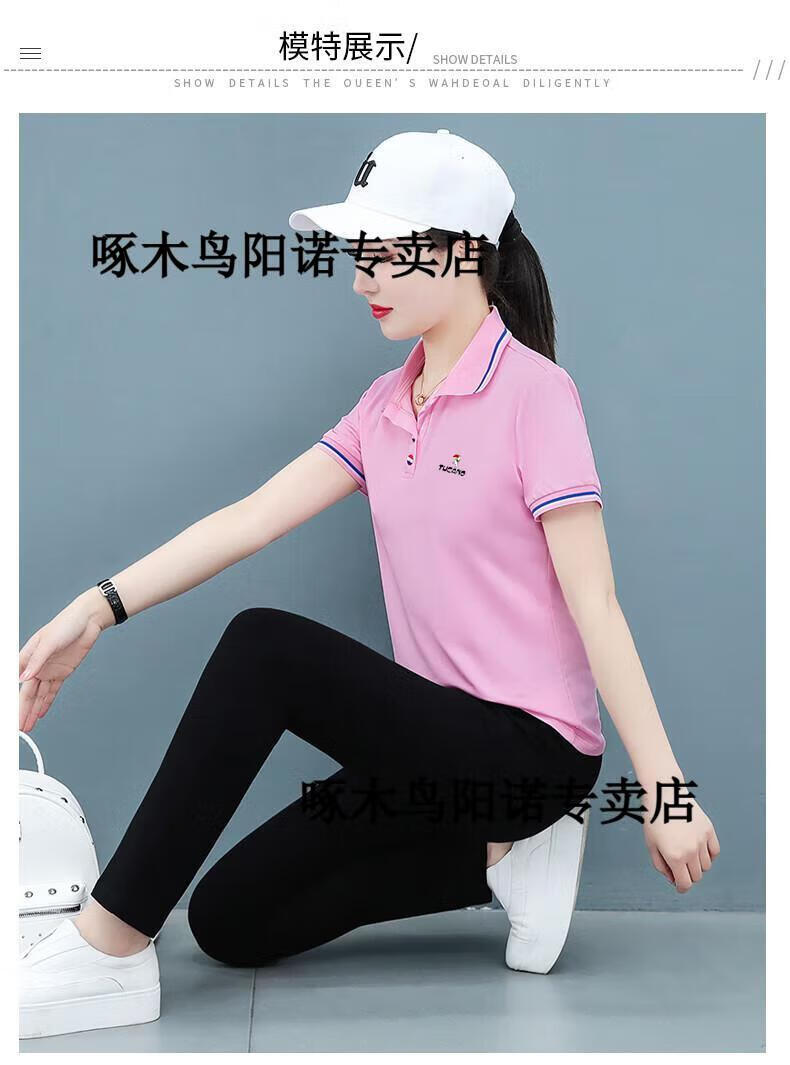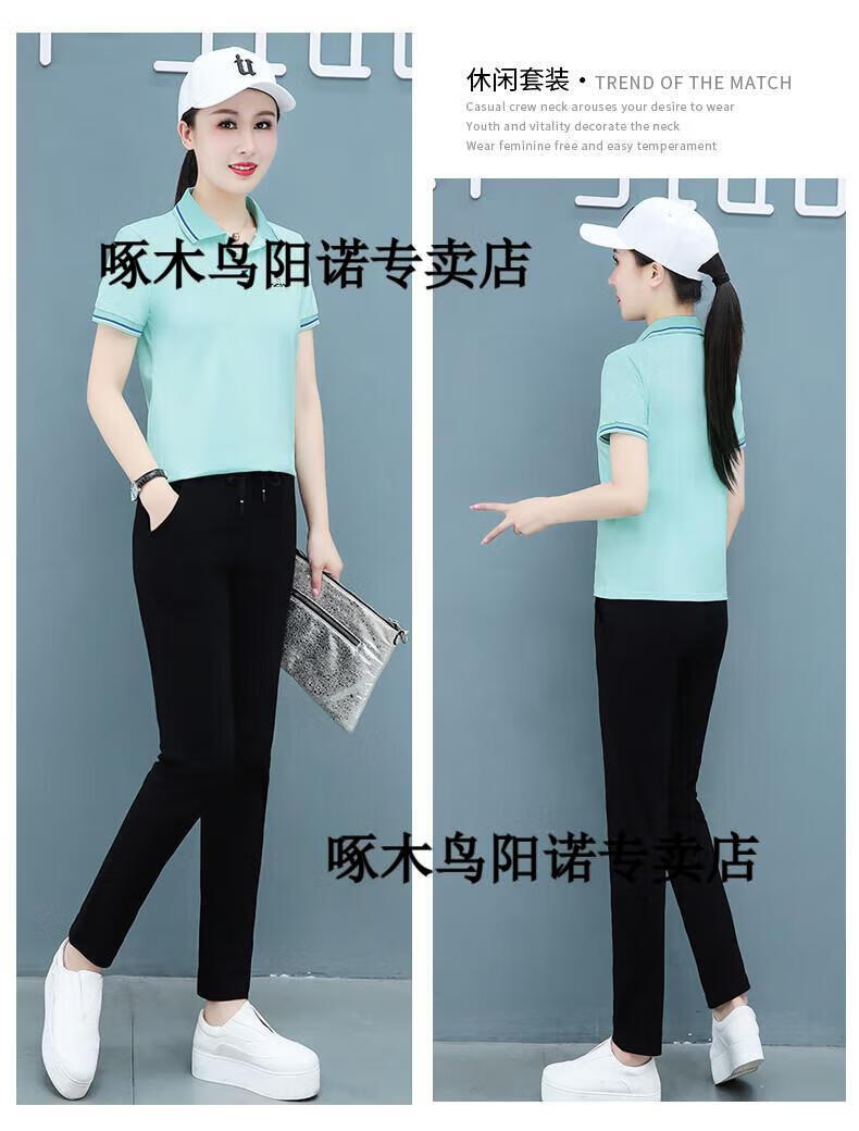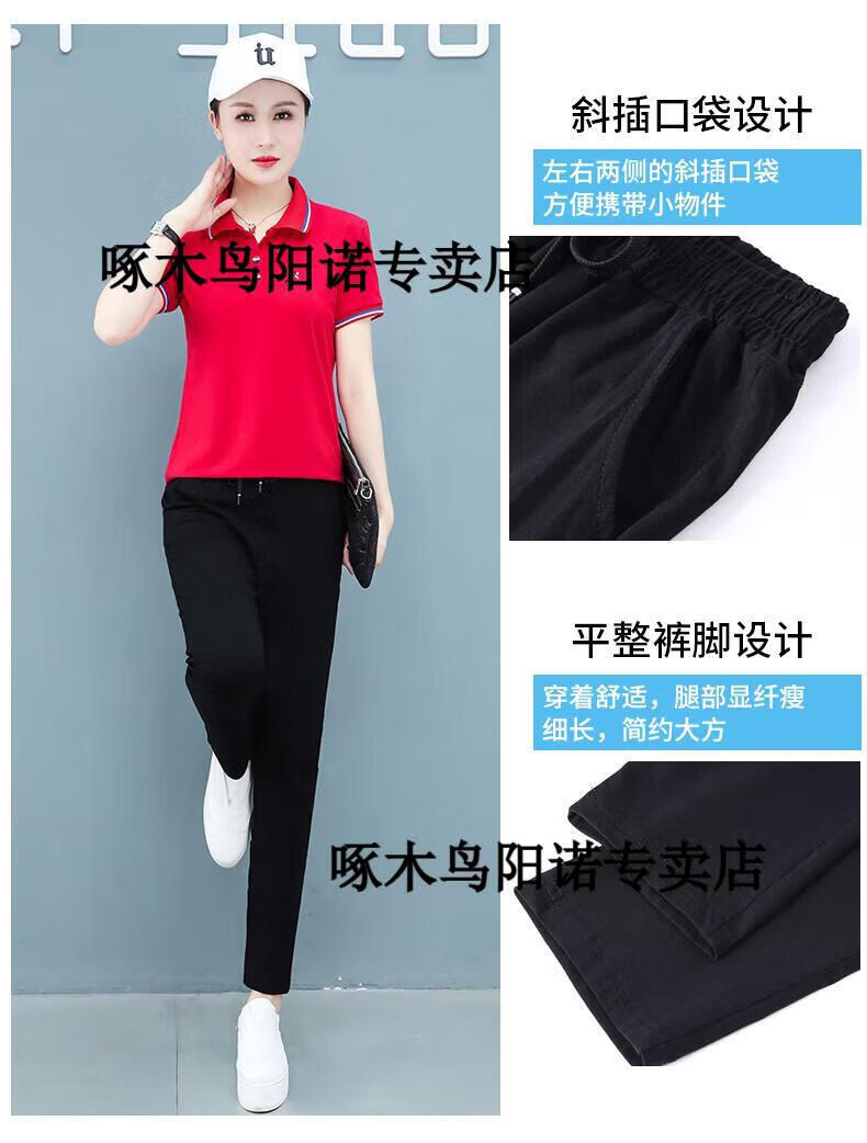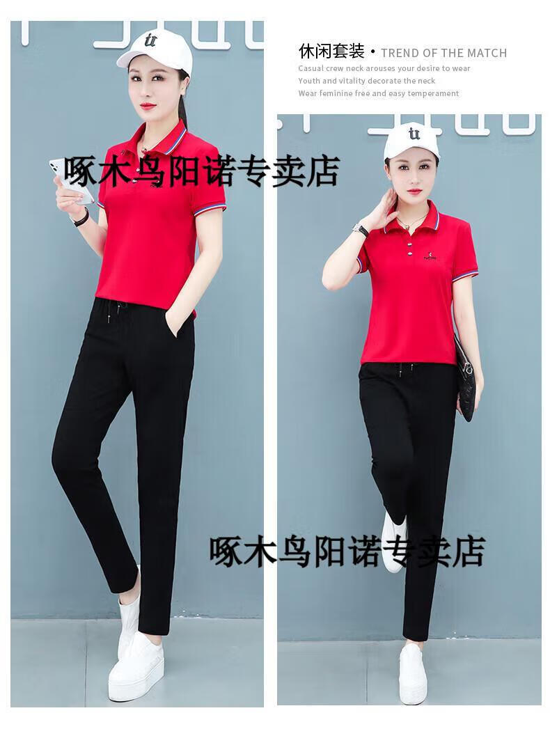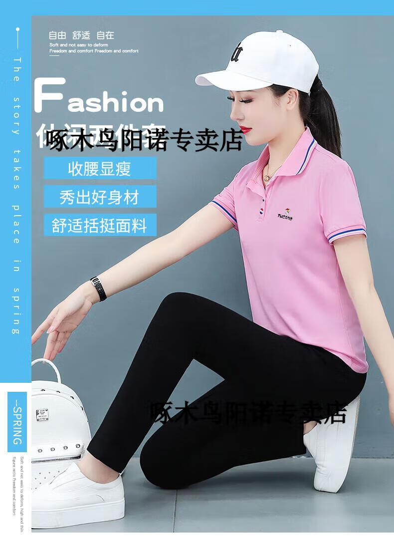 啄木鸟运动套装女纯棉运动服夏季新款时尚妈妈薄款短袖跑步休闲两件套 CF2261#粉色 M(100斤以内)