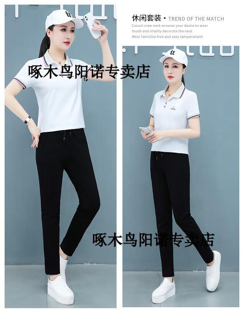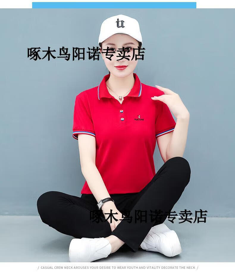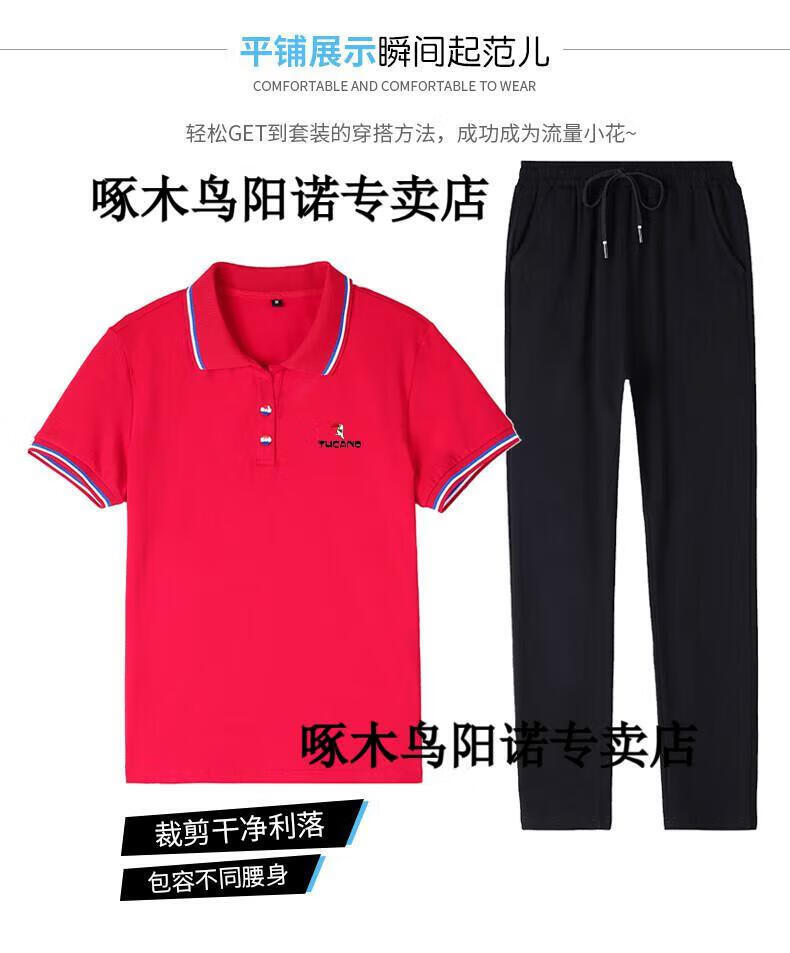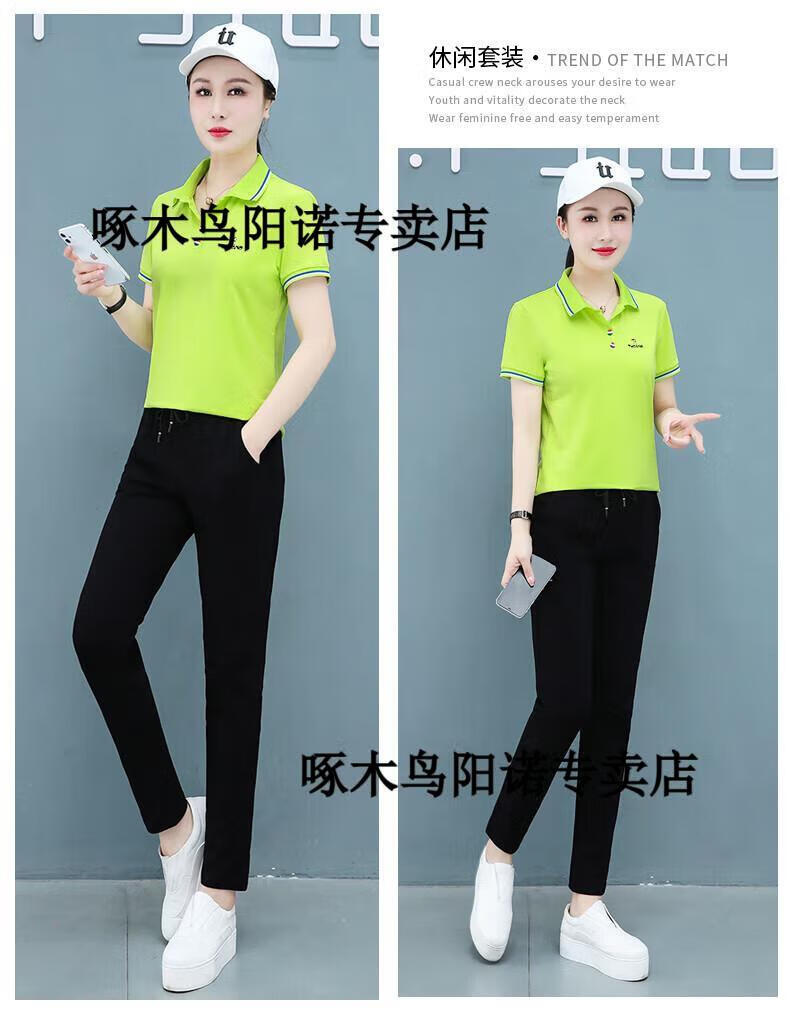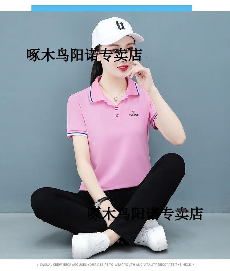 啄木鸟运动套装女纯棉运动服夏季新款时尚妈妈薄款短袖跑步休闲两件套 CF2261#粉色 M(100斤以内)