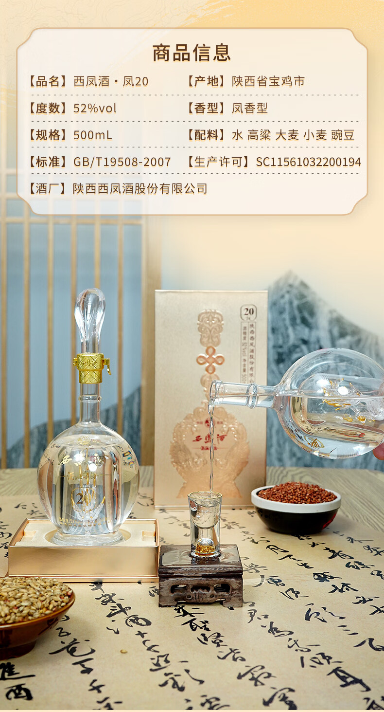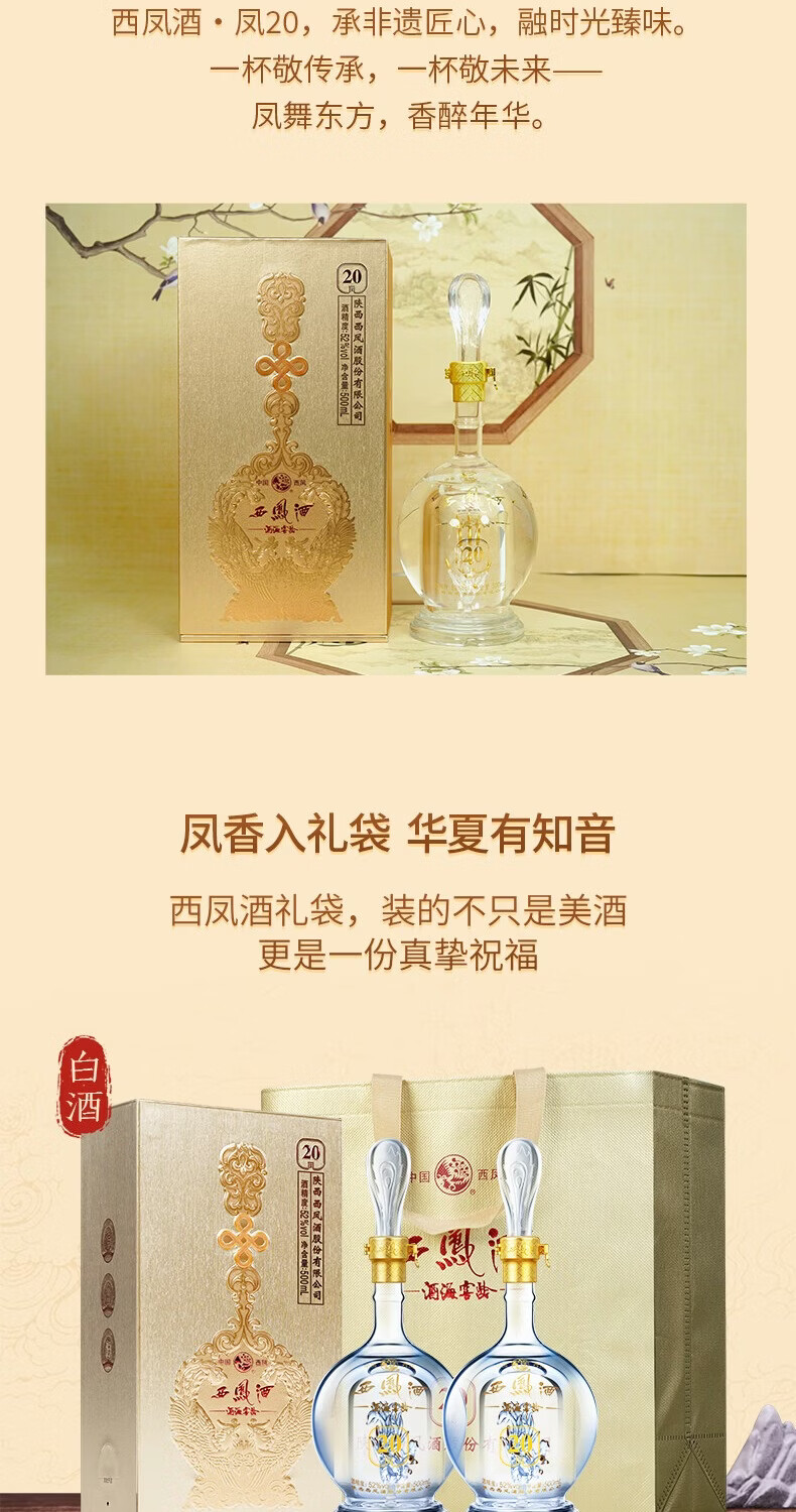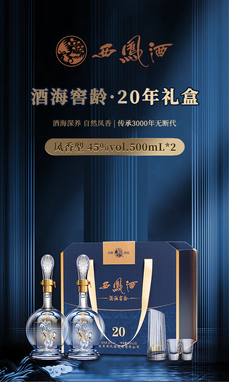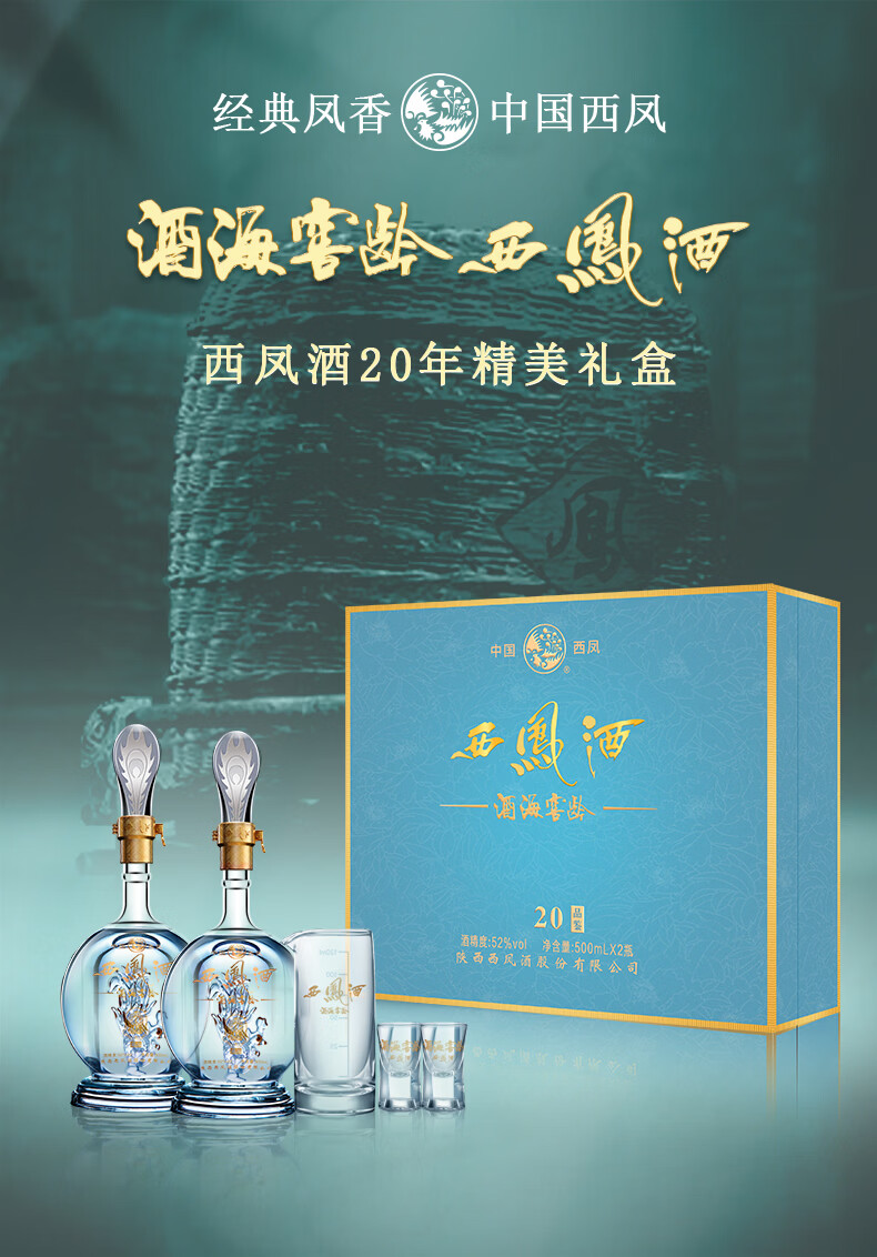 西凤酒20年高档白酒礼盒过节送礼 企业采购员工福利陕西特产送领导 52度 500mL 2瓶 20年传承礼盒