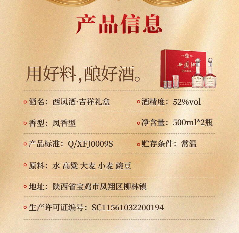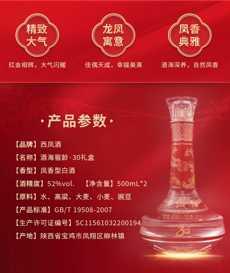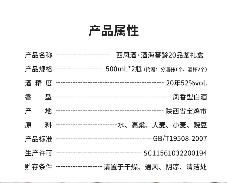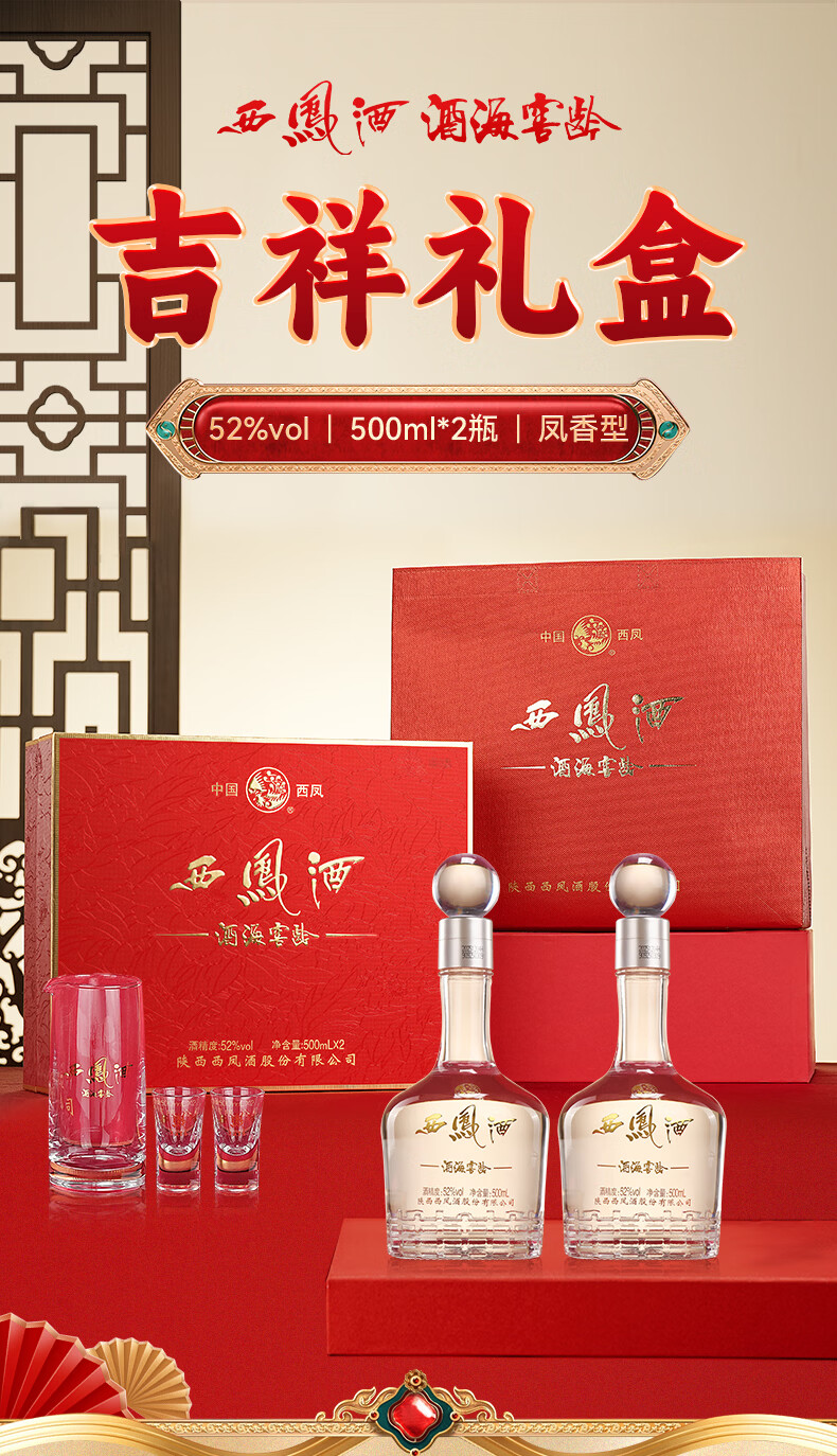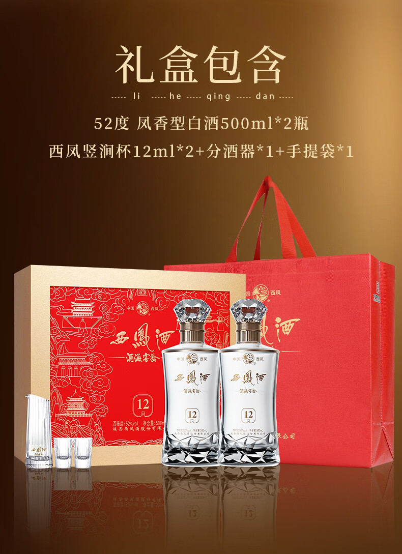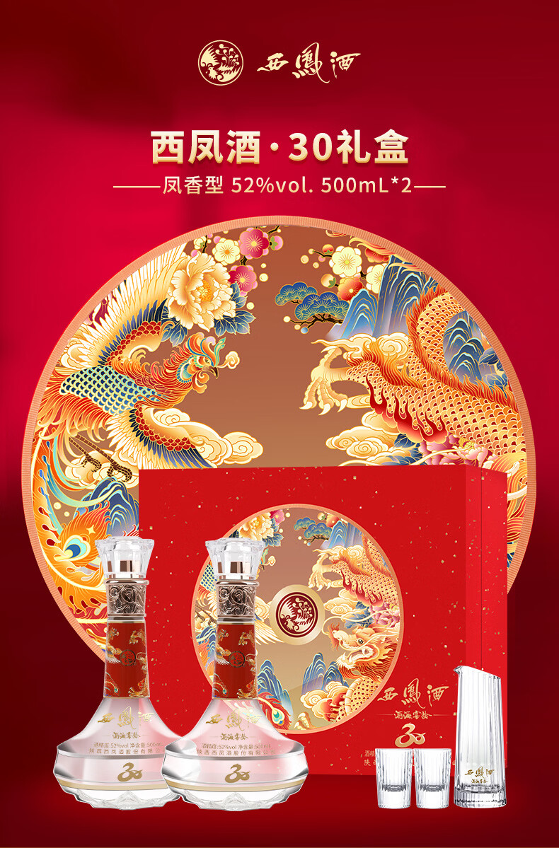 西凤酒20年高档白酒礼盒过节送礼 企业采购员工福利陕西特产送领导 52度 500mL 2瓶 20年传承礼盒