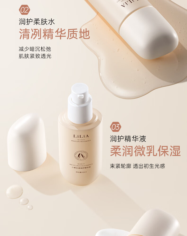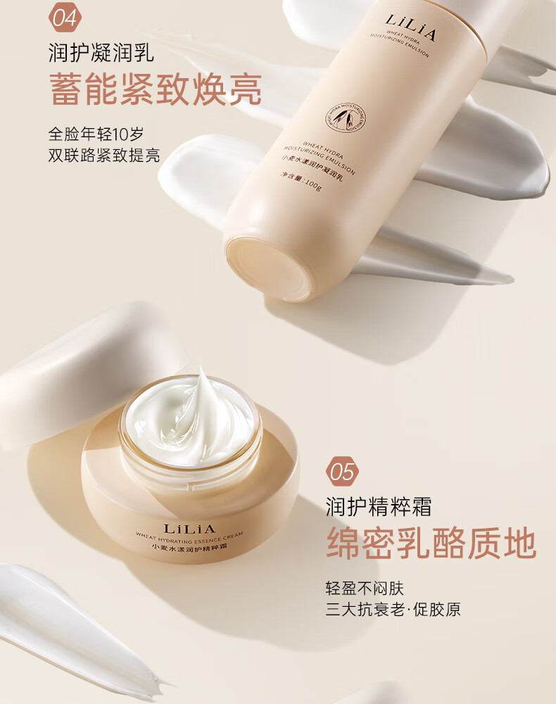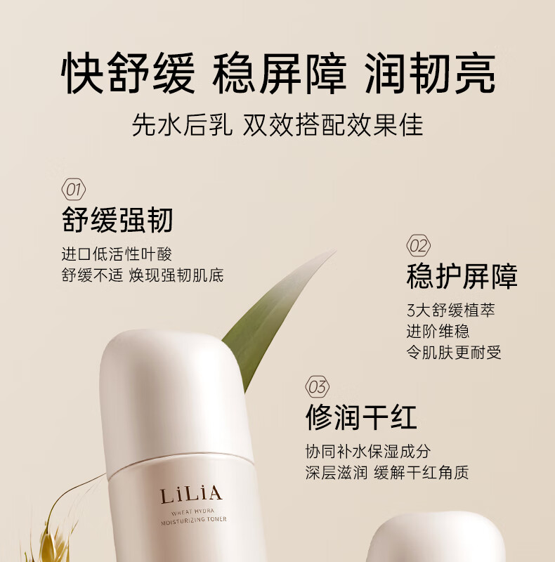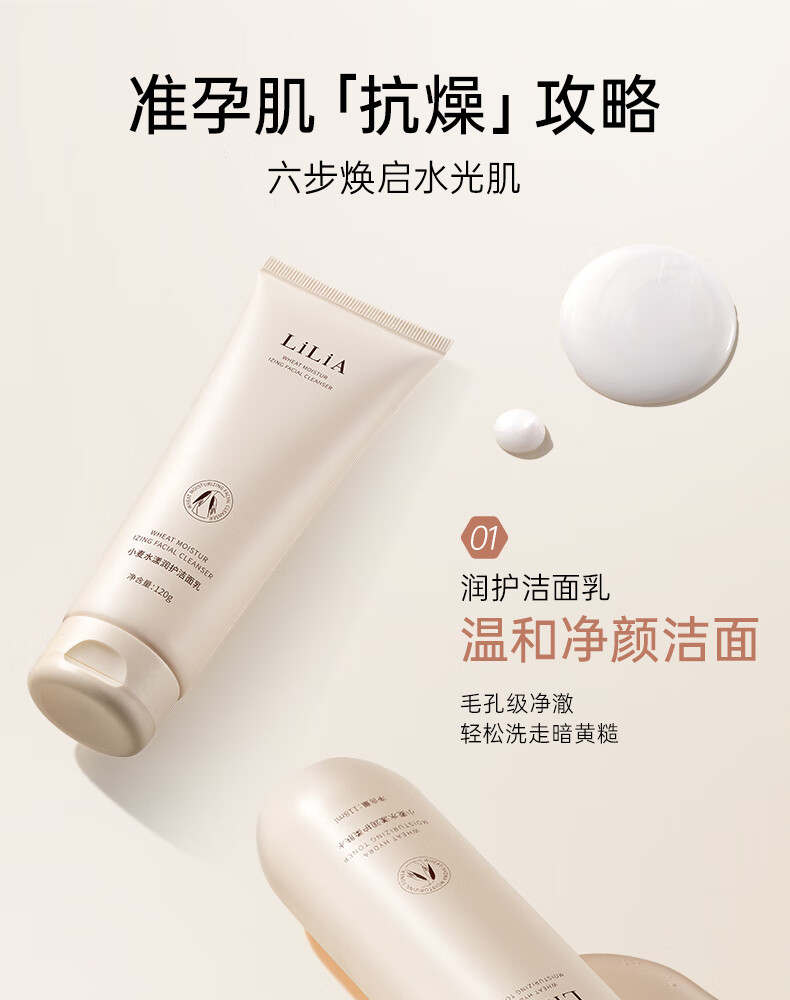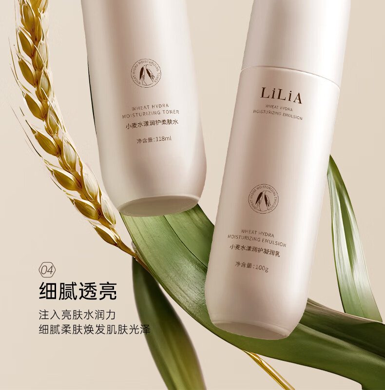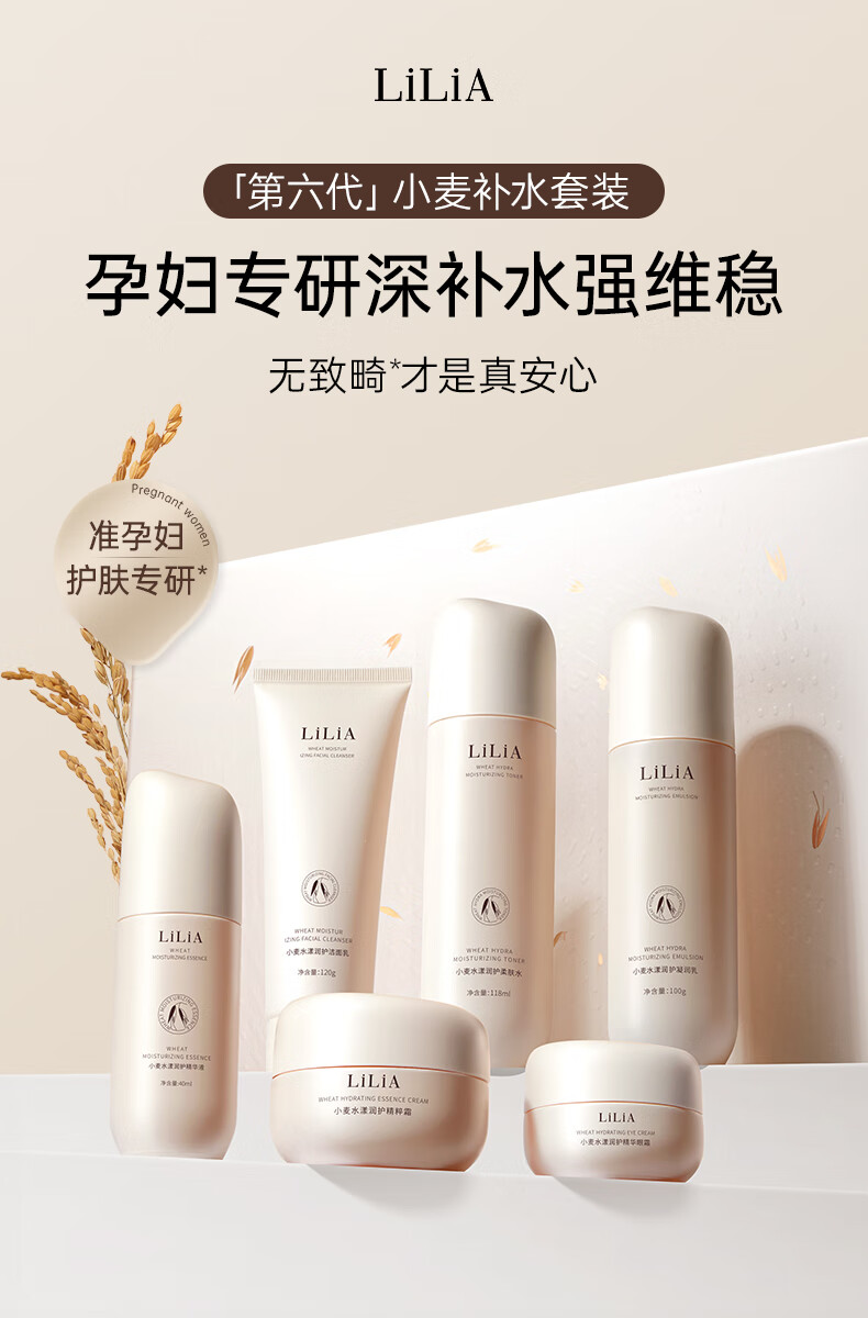 LiLiA准孕妇护肤品套装适用小麦洁面水乳霜提亮肤色发光补水6件套礼盒 【水乳套装】柔肤水+凝润乳