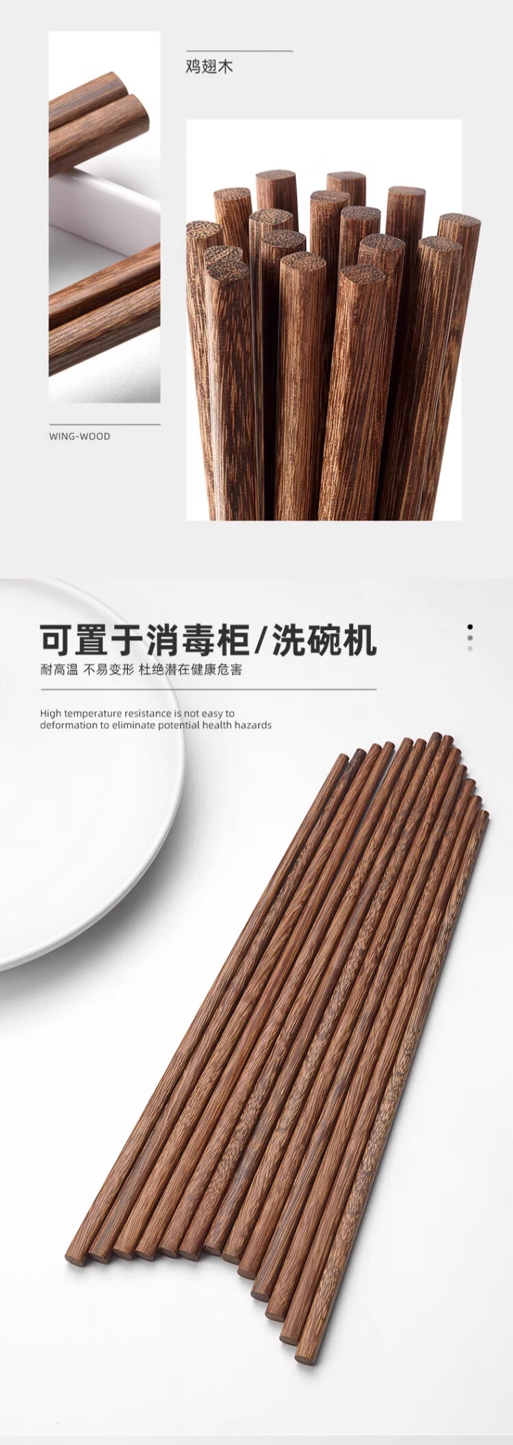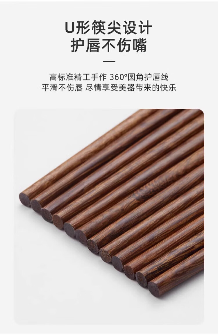 唐宗筷抗菌红檀木筷子天然实木家用筷子不易发霉天然鸡翅木公筷套装礼盒 【新年限定-进口花梨木筷】10双礼盒装