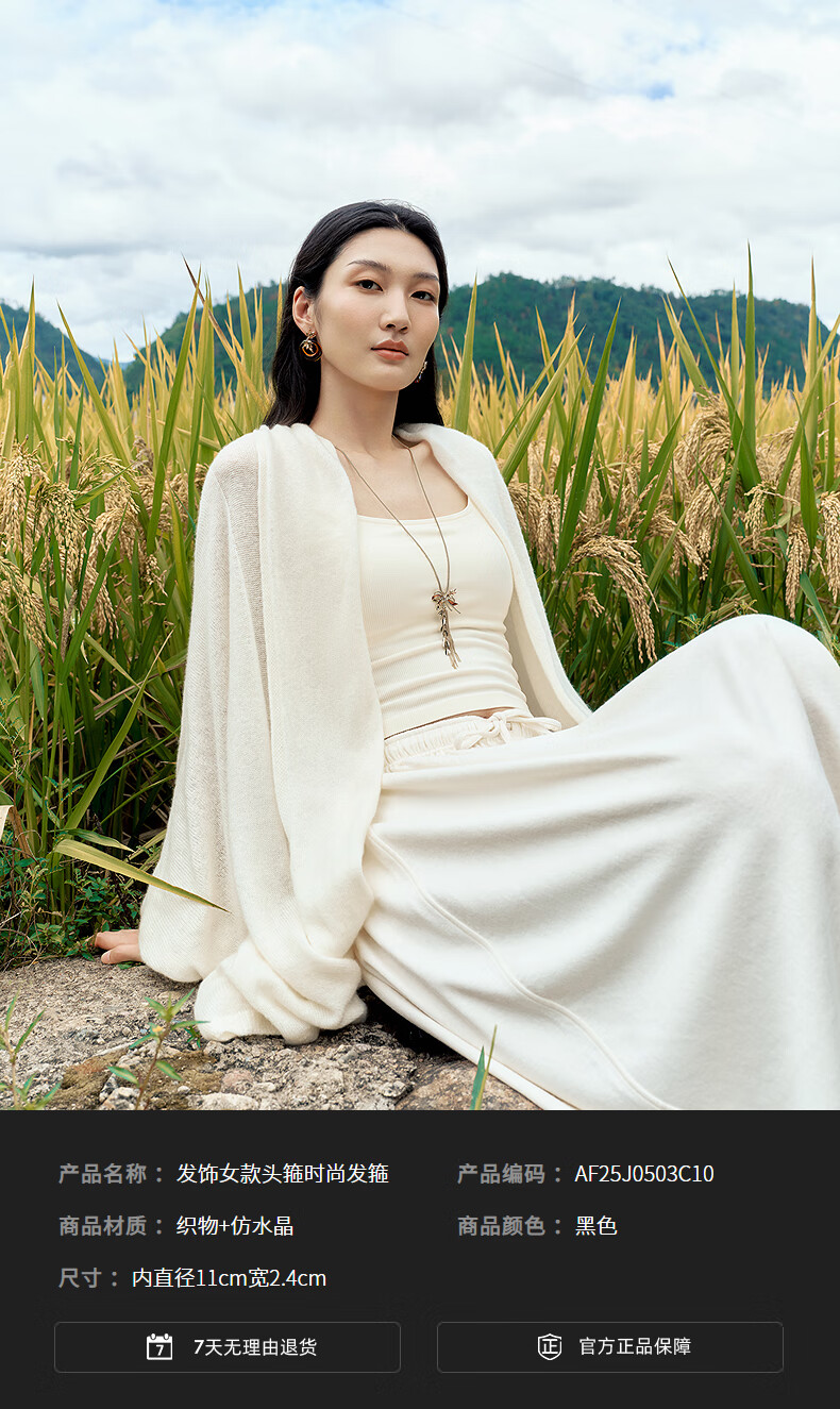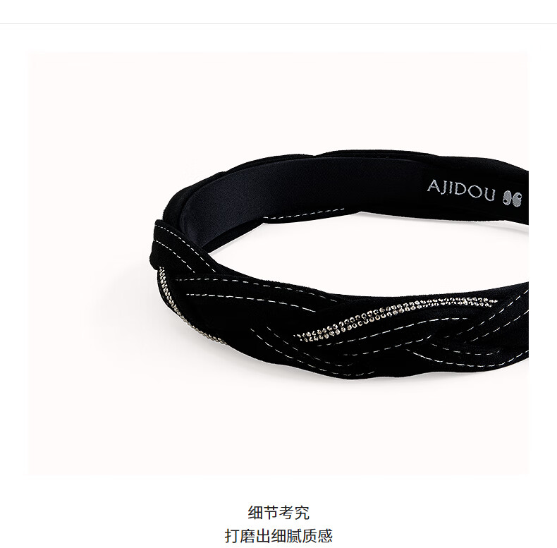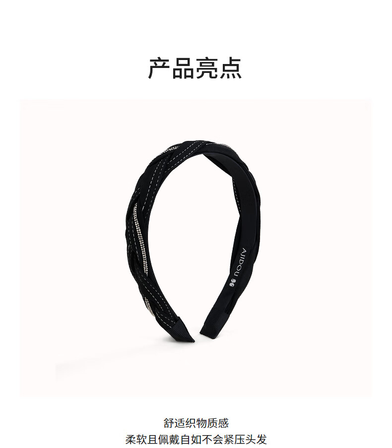 AJIDOU阿吉豆发饰女款黑色时尚头箍织物发饰高颅顶发箍新年跨年礼物 黑色 1个
