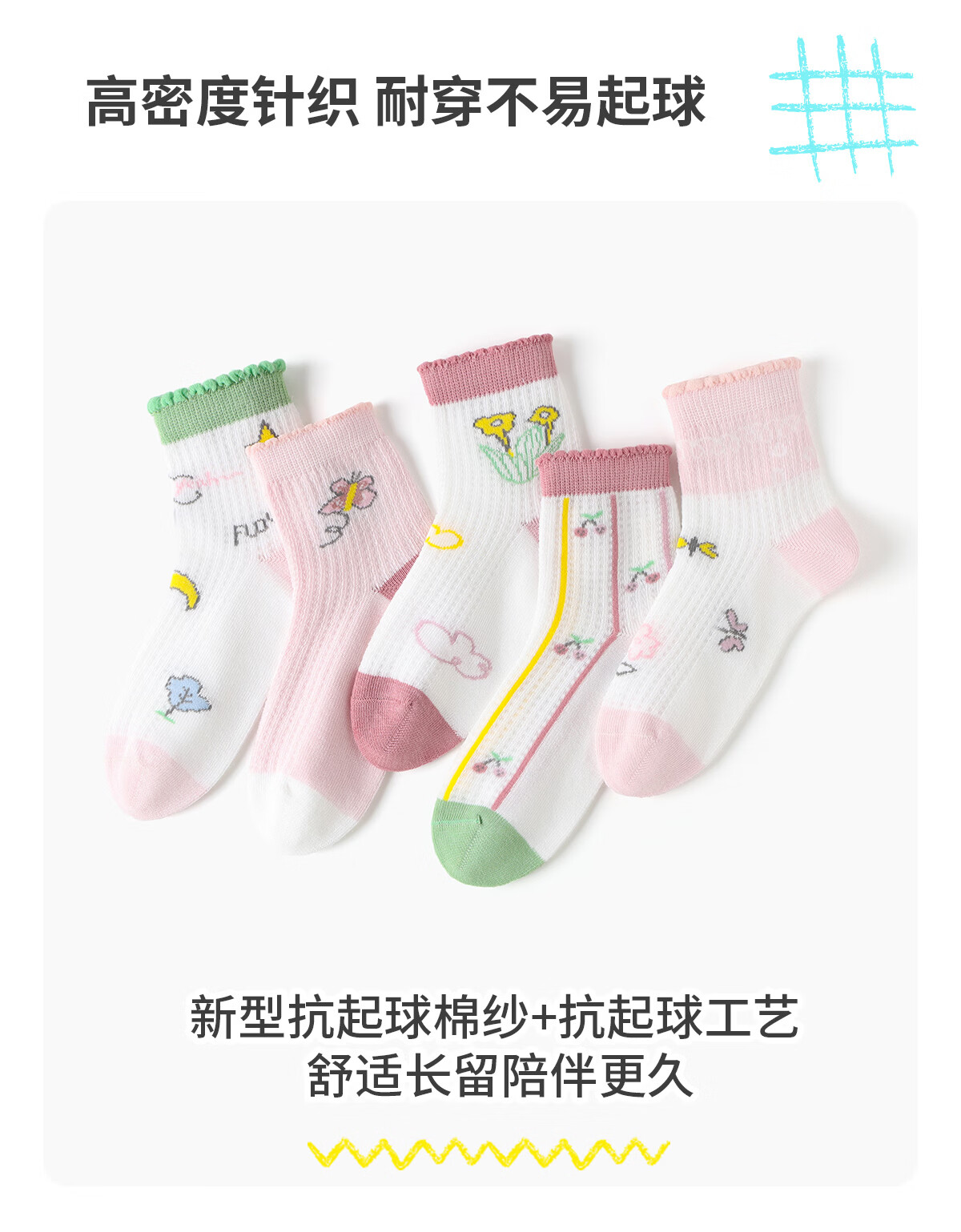 斑比女童袜子春夏款网眼透气棉袜中大童宝宝夏季无骨可爱儿童袜子 BB2606 春夏款儿童袜子 5双 0-1岁 建议脚码16码以内【12-14】