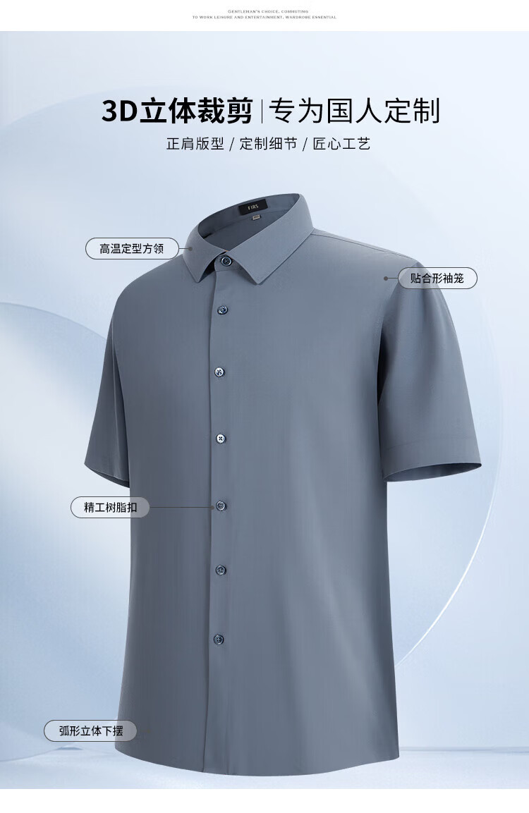 杉杉(FIRS)【凉感蚕丝】短袖衬衫男夏季新款商务休闲打底上衣亲肤顺滑衬衣男 金石蓝 39 (170) 170/88A