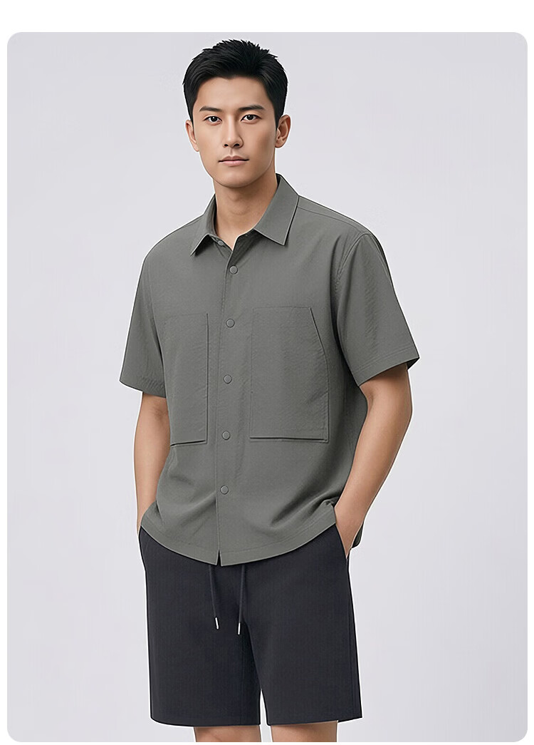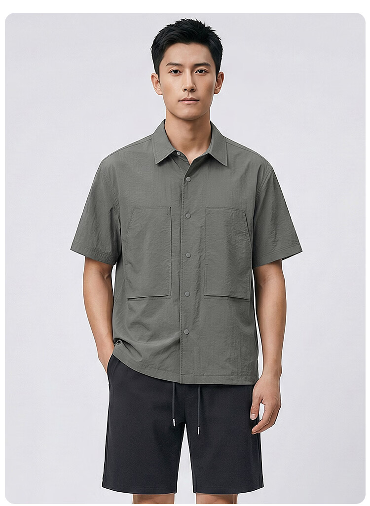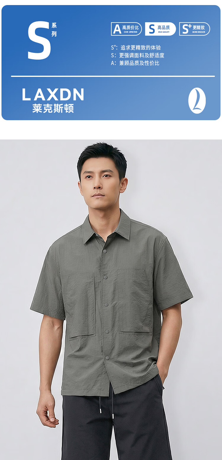 莱克斯顿(laxdn)短袖衬衫男夏季外穿型零压四面弹微皱肌理吸湿速干抽绳调节上衣男 军绿色 S