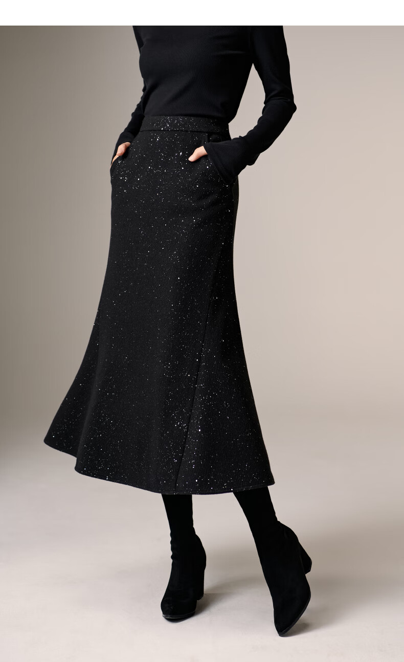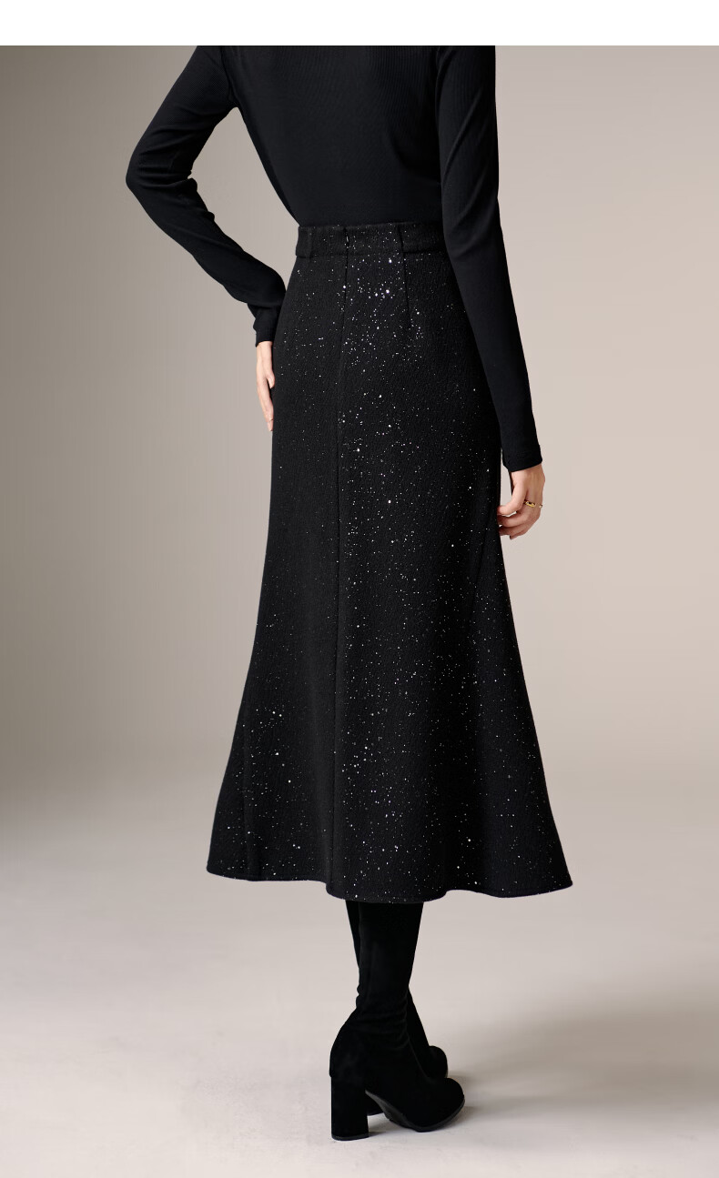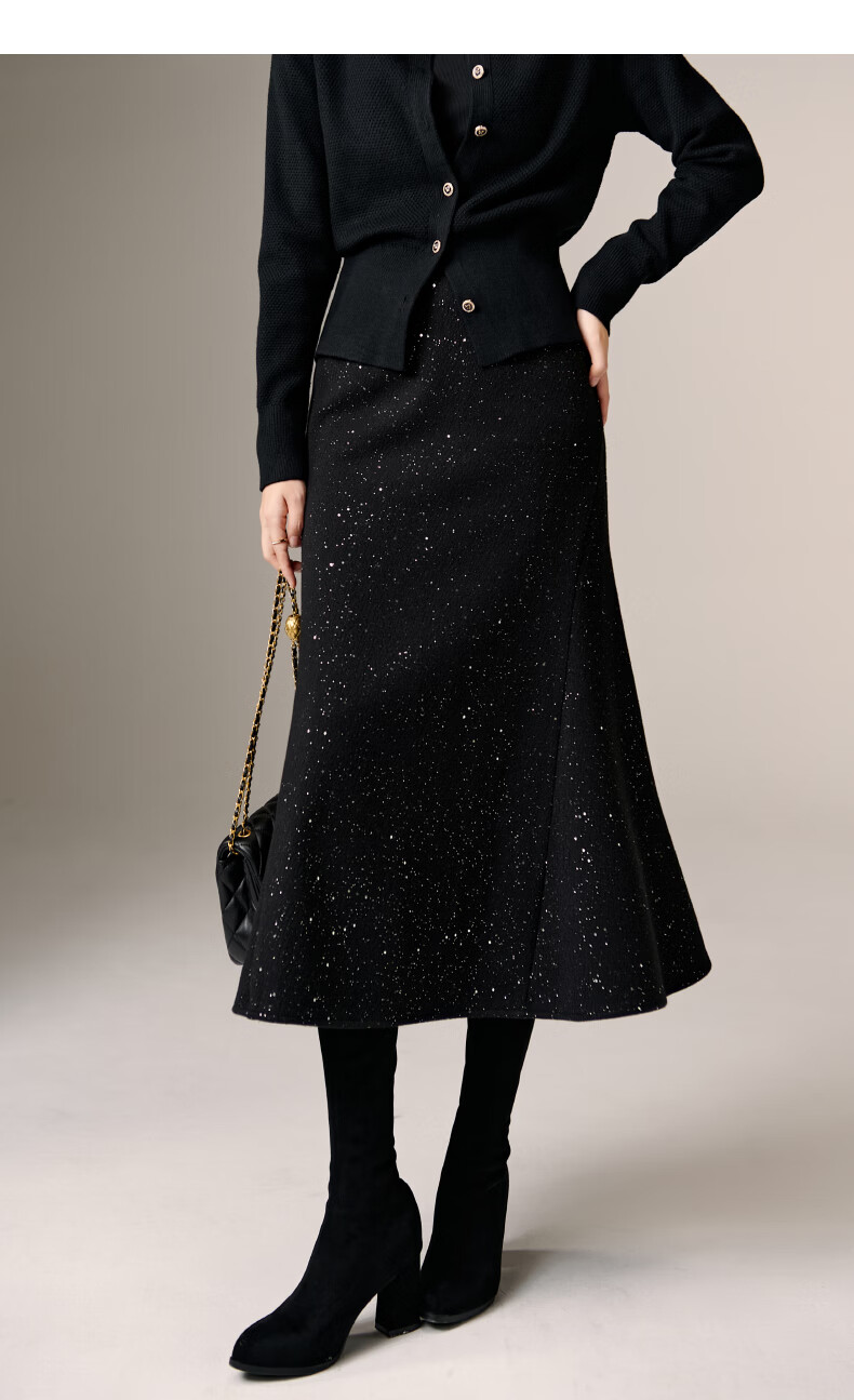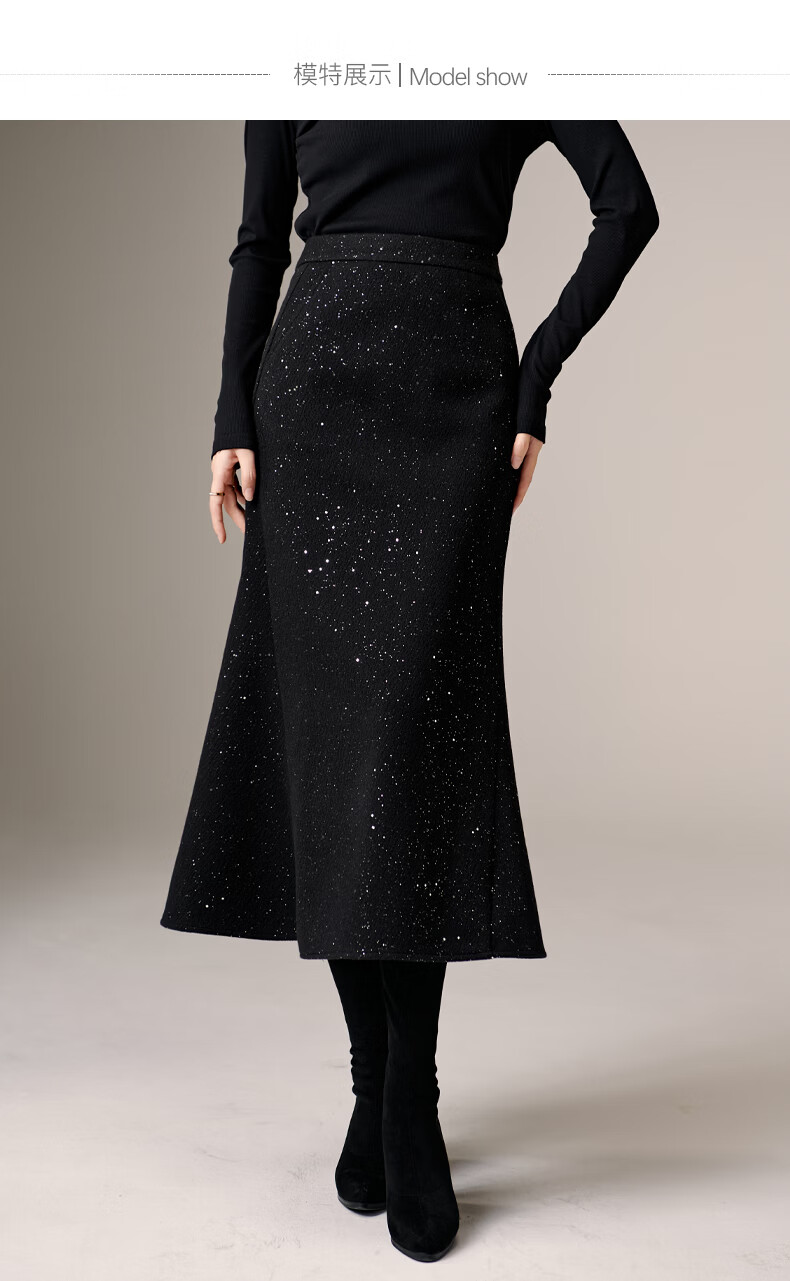 晚白【新品】亮闪闪毛呢鱼尾半身裙冬款气质优雅修身显瘦时尚百搭半裙 黑色 M