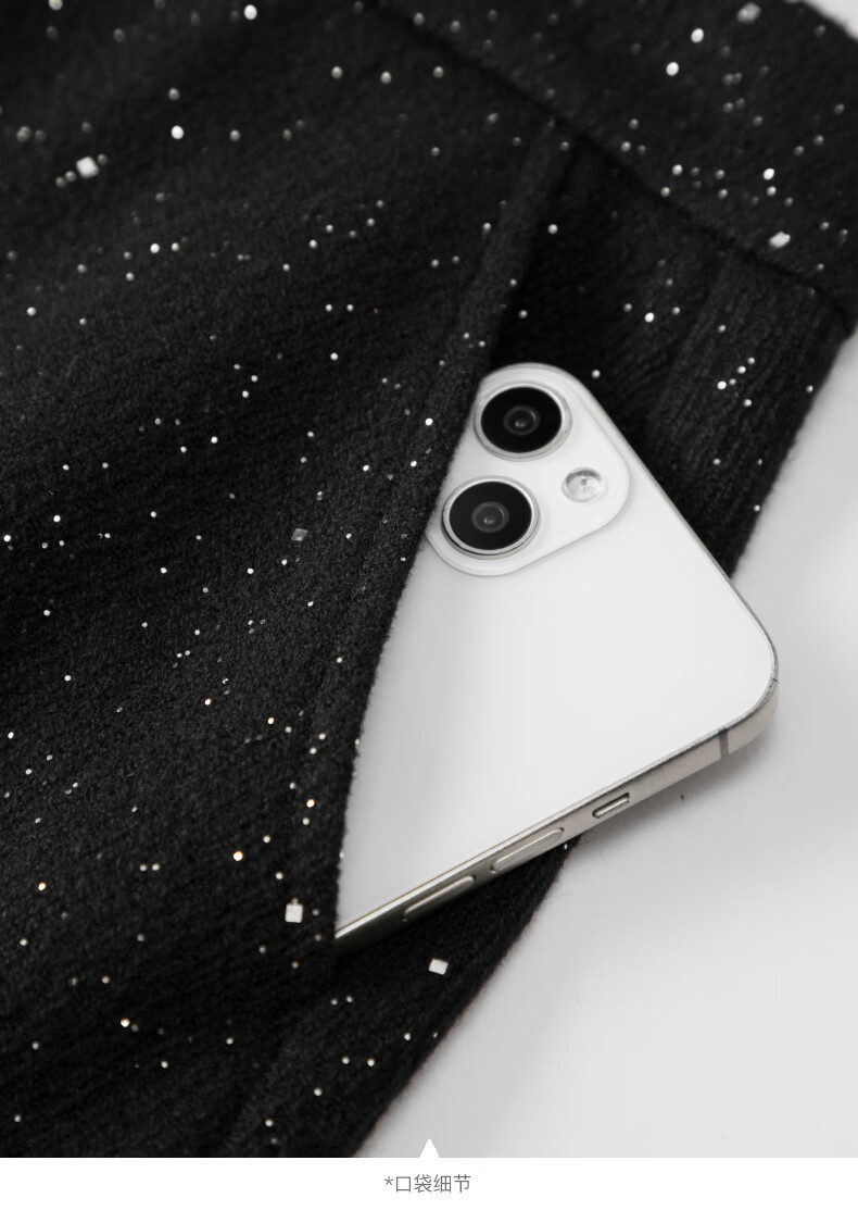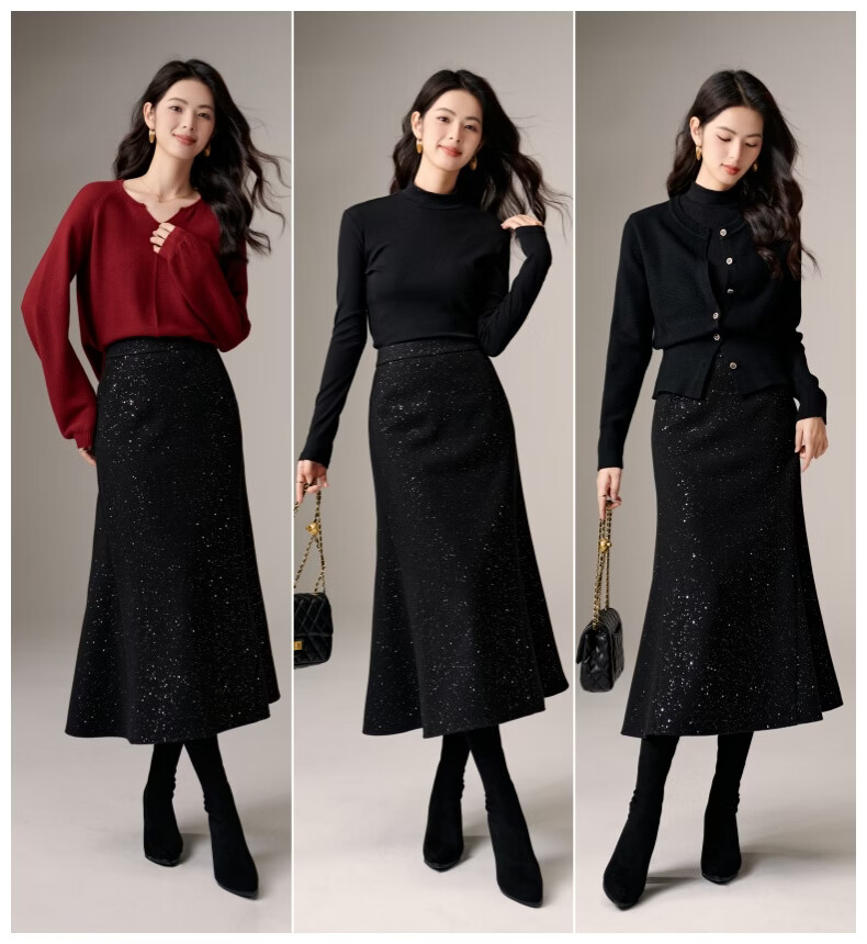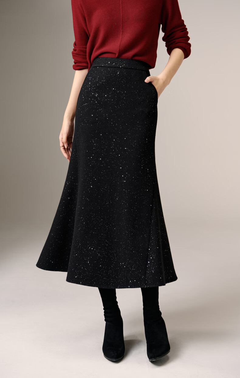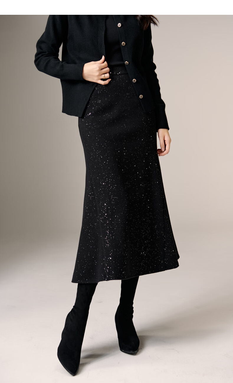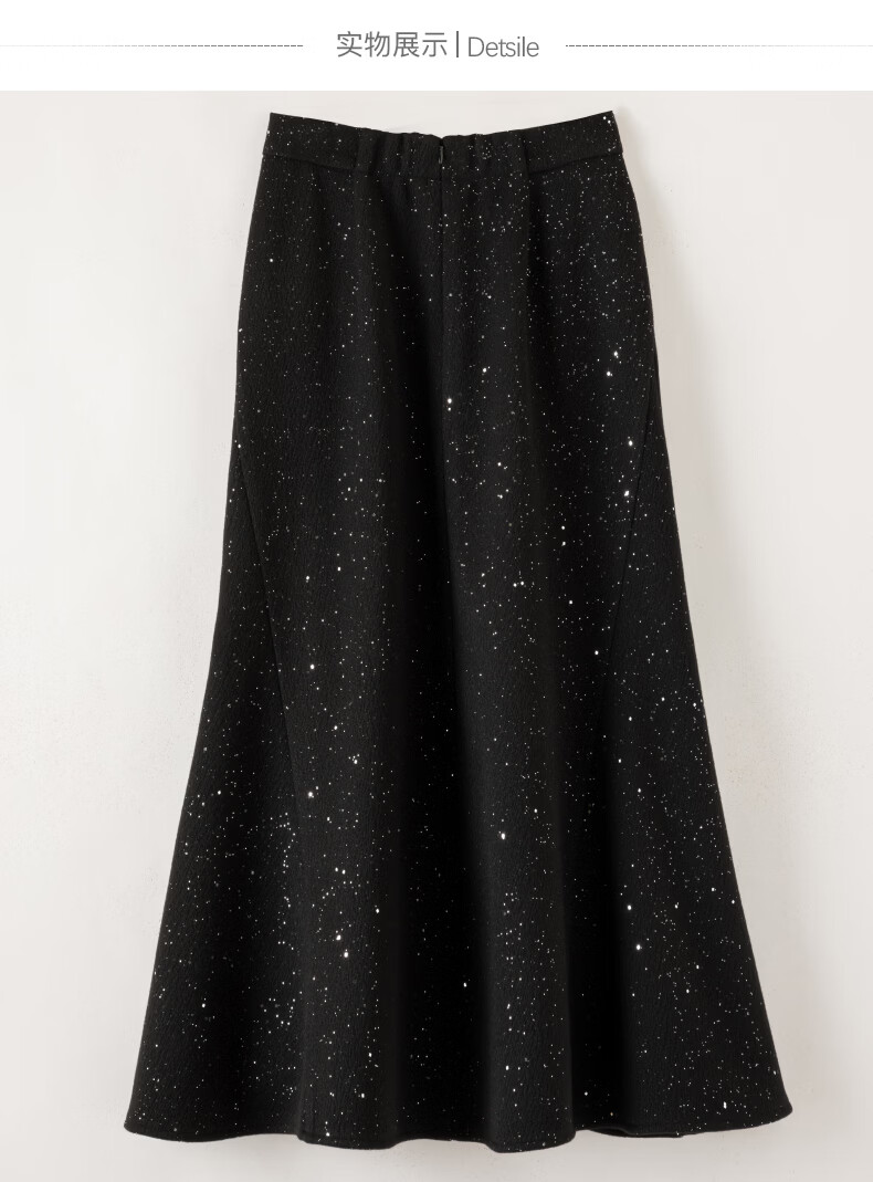 晚白【新品】亮闪闪毛呢鱼尾半身裙冬款气质优雅修身显瘦时尚百搭半裙 黑色 M