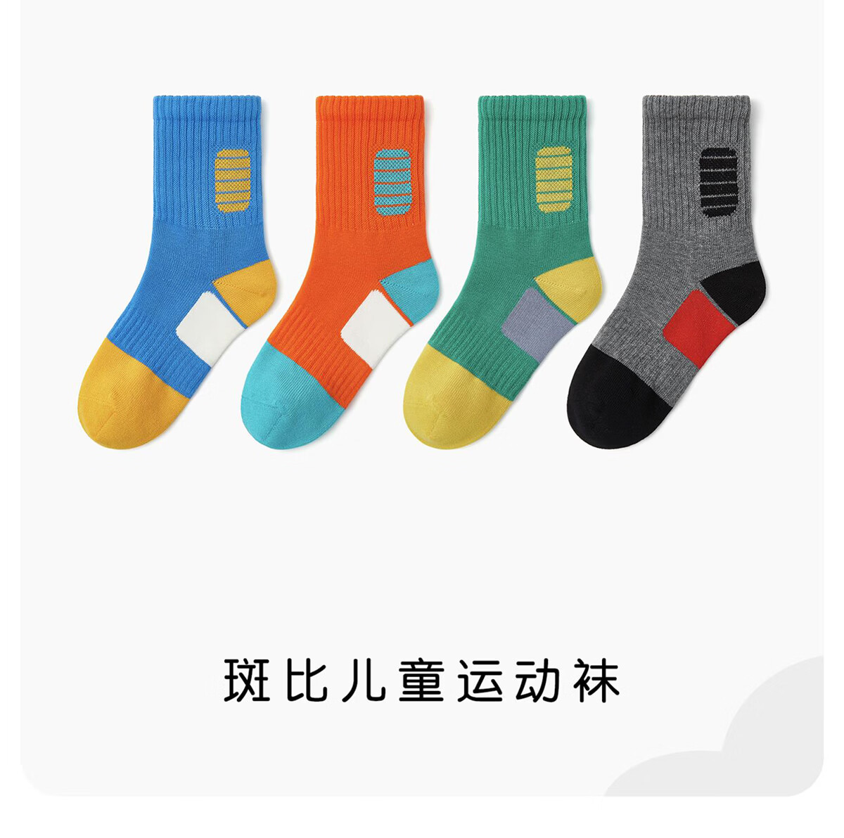 斑比儿童袜子运动春秋款棉袜大童男孩秋冬季篮球袜耐磨学生男童袜 S22520 运动款儿童袜子 4双 12岁以上 建议42码以上【24-26】