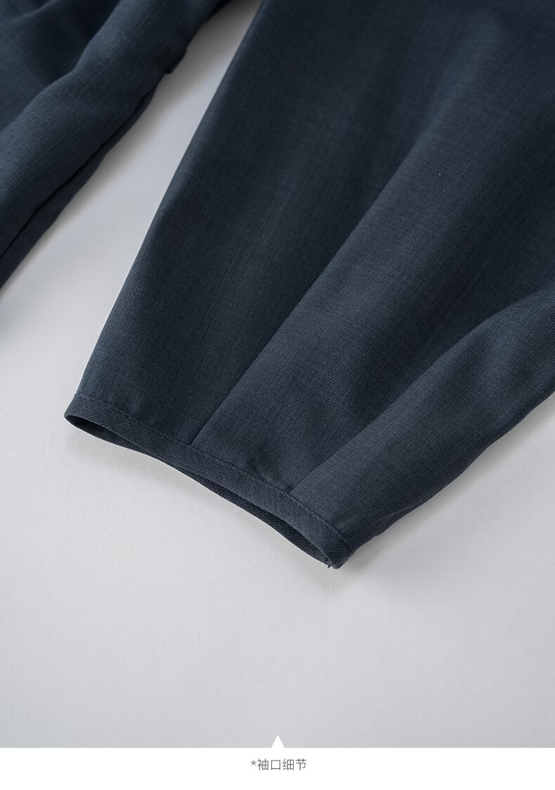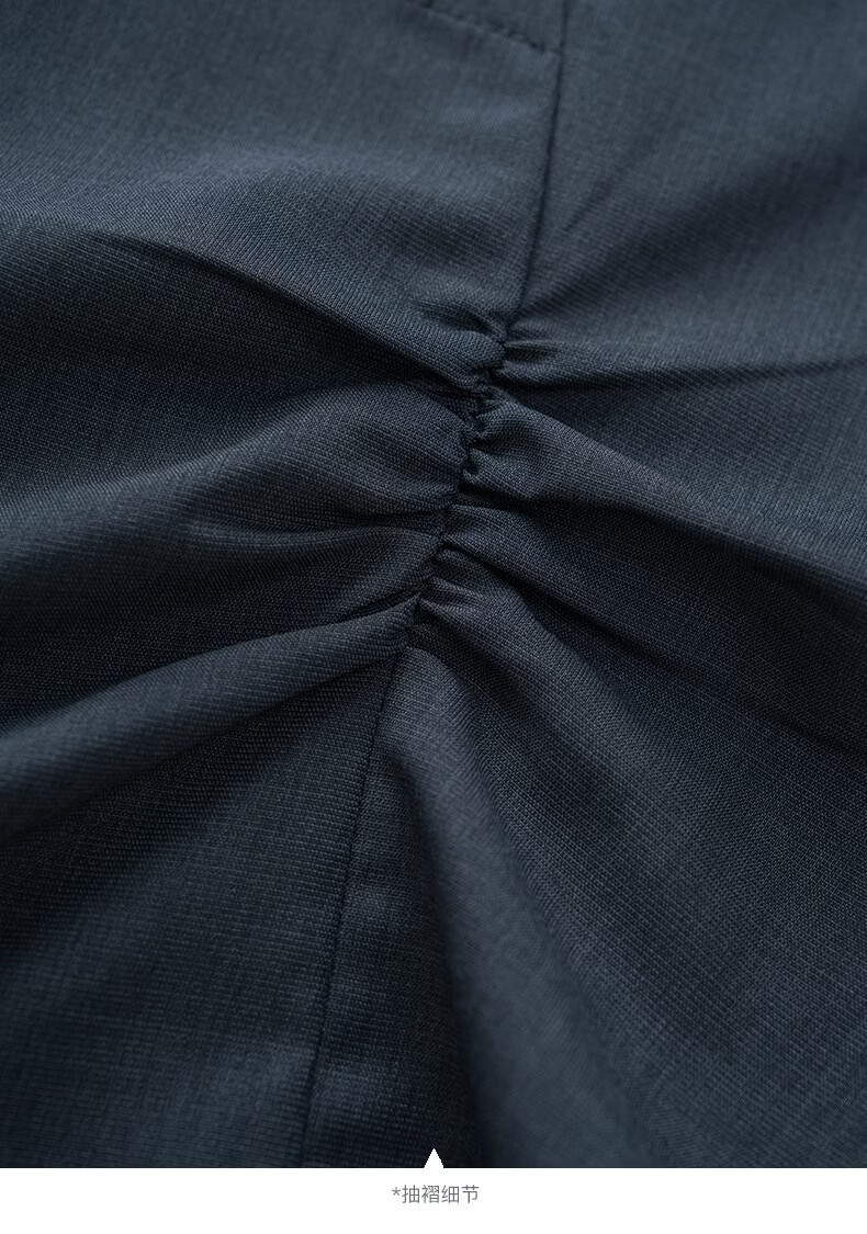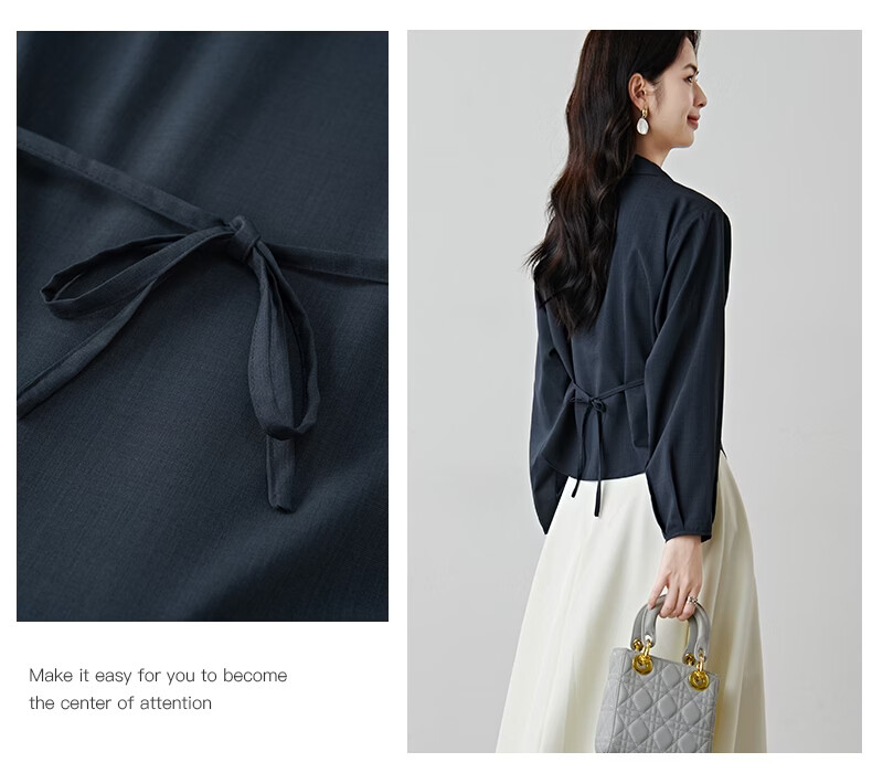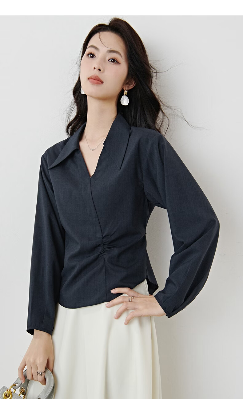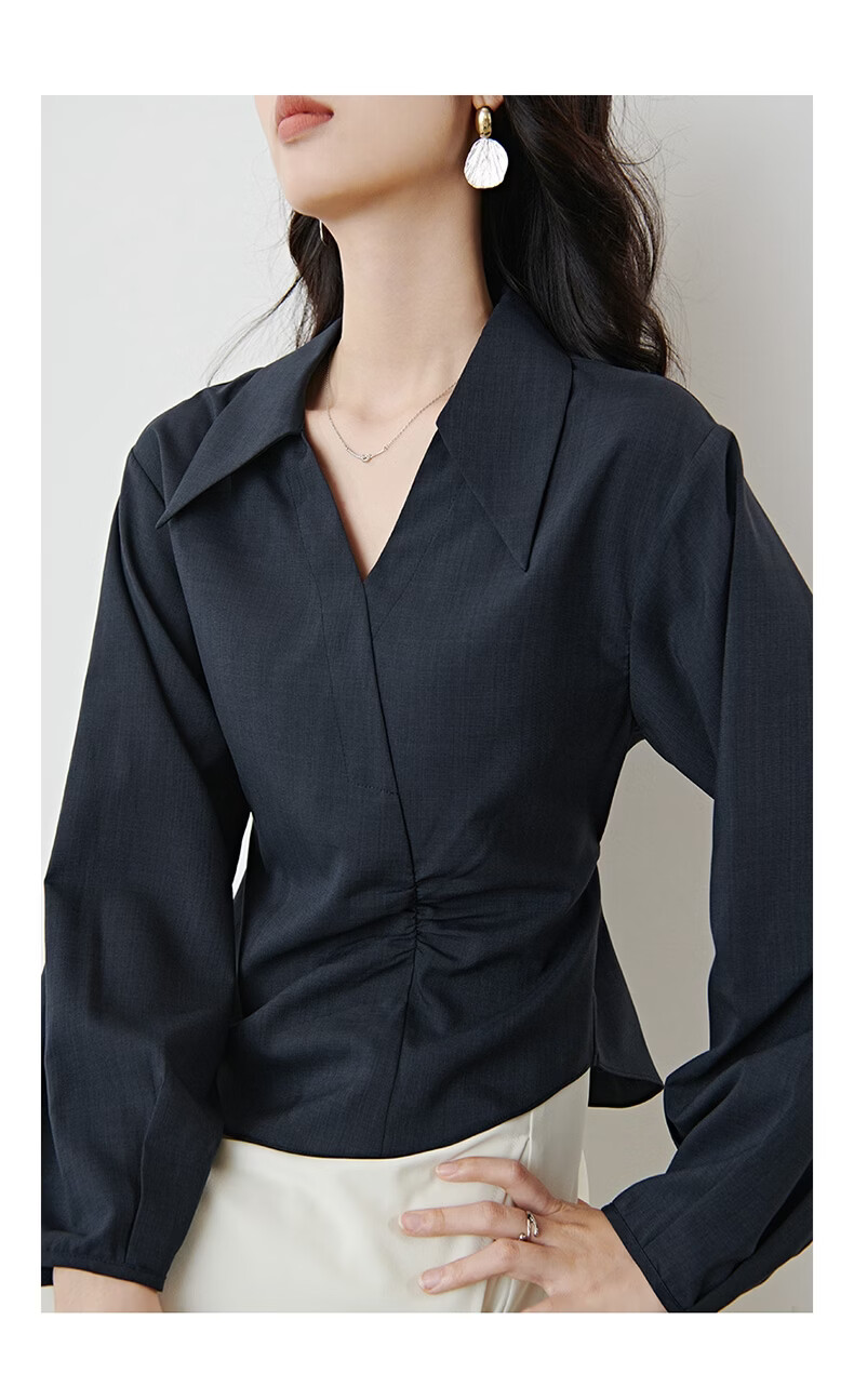 晚白2026年春款气质设计感不对称褶皱上衣系带收腰显瘦行政风衬衫女 深蓝色 S