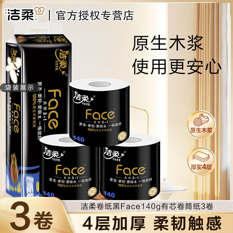 洁柔黑face4层 家用大卷卫生卷筒纸 4层 140g/卷*1卷 【黑FACE系列】