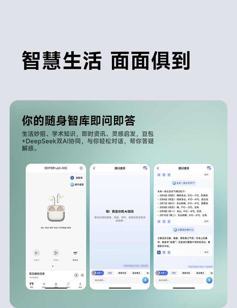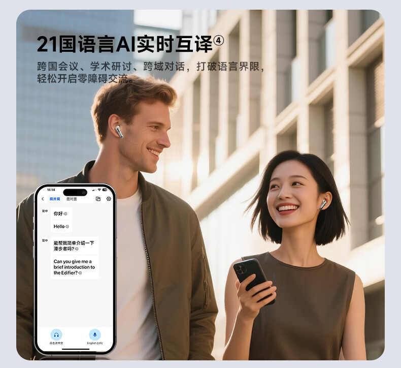 漫步者(EDIFIER)萝莉豆Lolli ANC半入耳降噪蓝牙耳机 翻译耳机 翻译机 适用苹果华为小米OPPO手机 星光金
