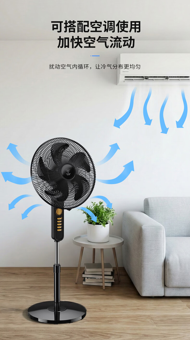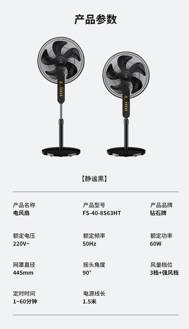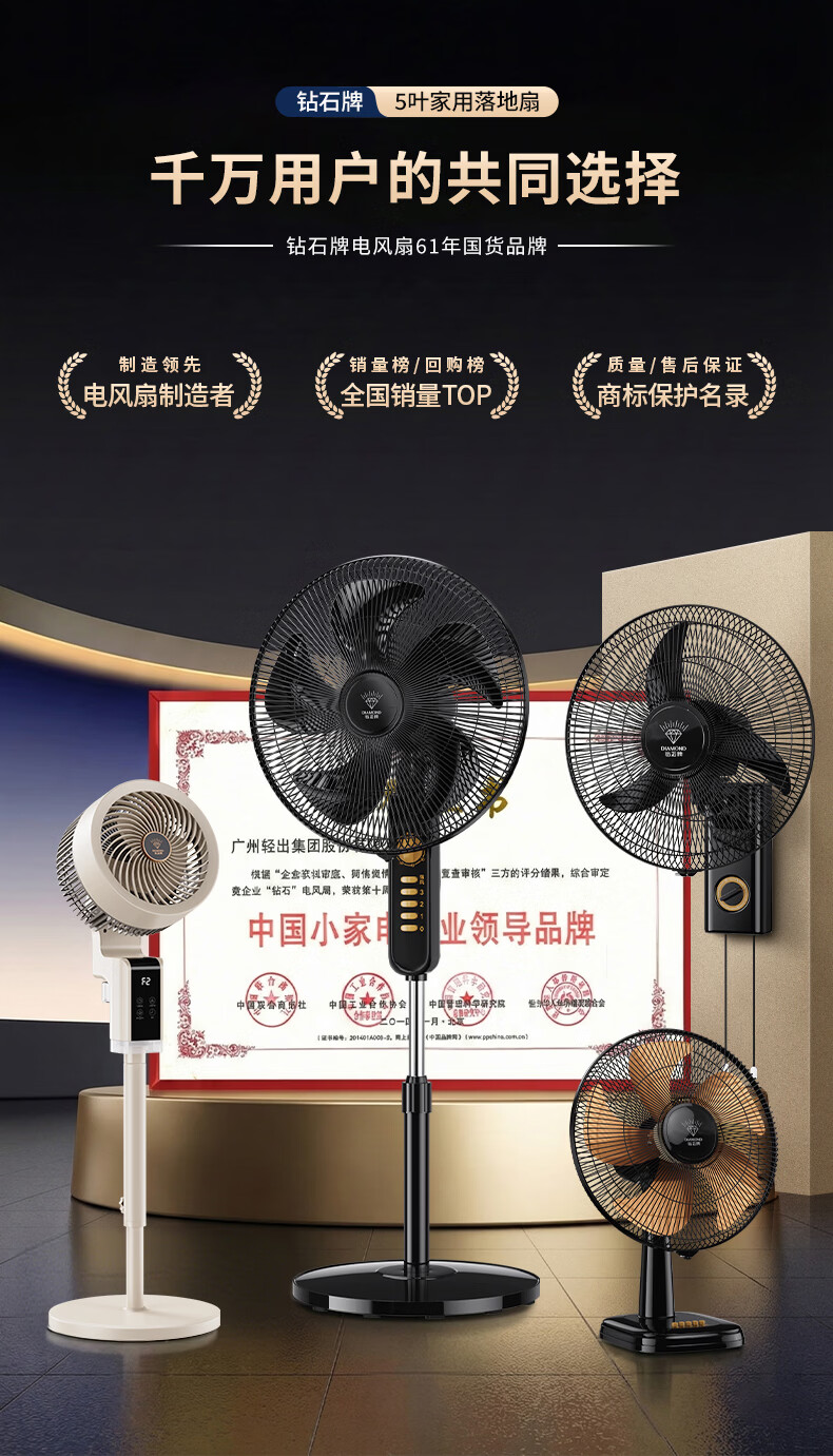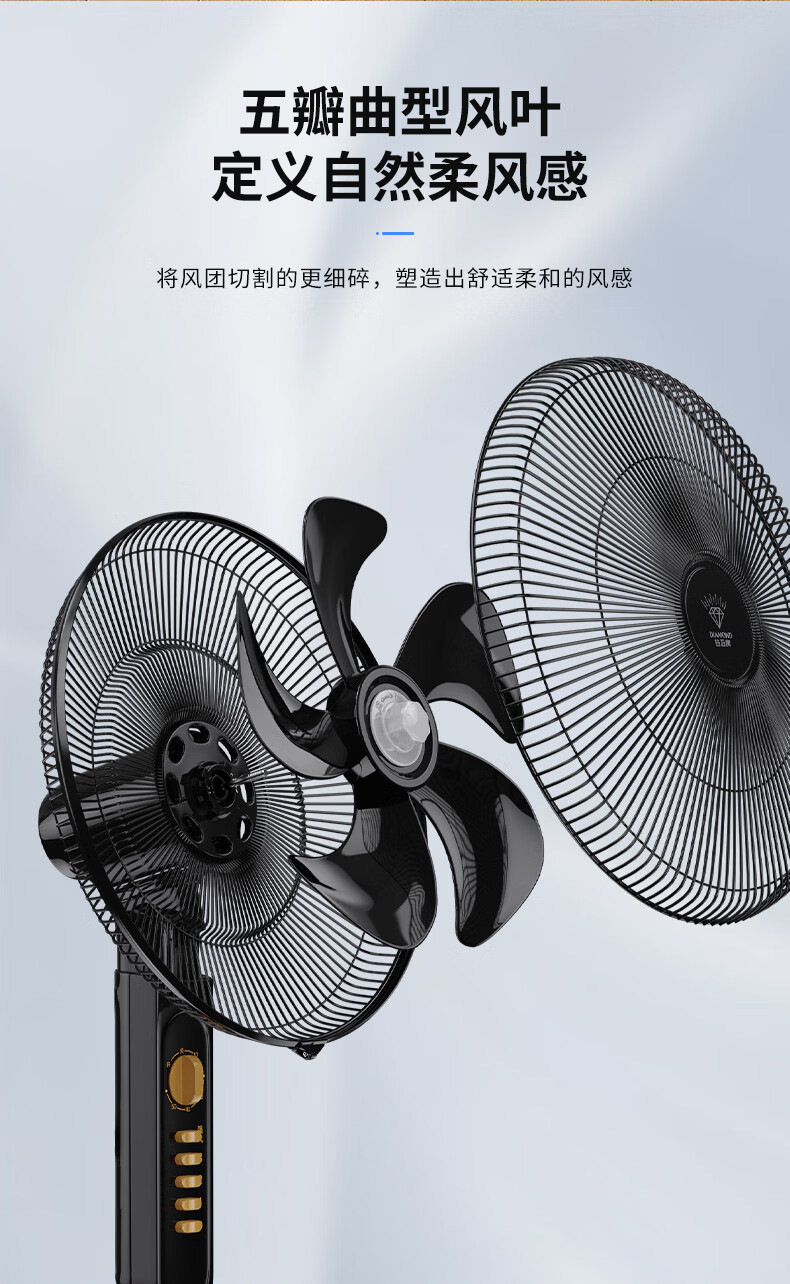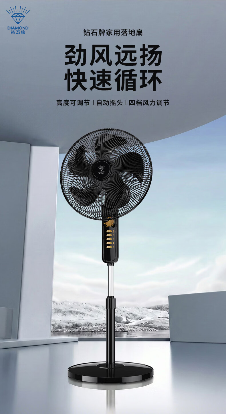 钻石牌电风扇家用轻音落地扇立式机械遥控宿舍大风力摇头2026新款电扇远距离送风宿舍卧室 12寸-环保塑叶