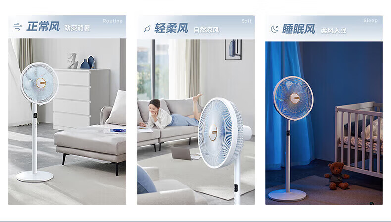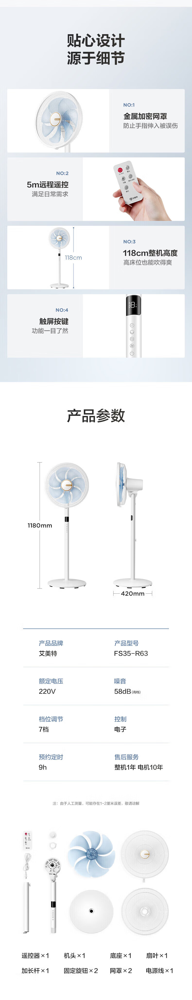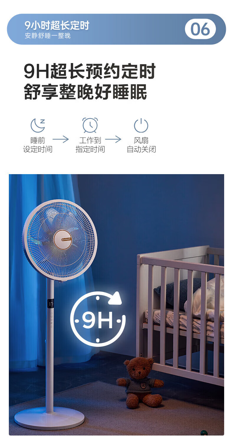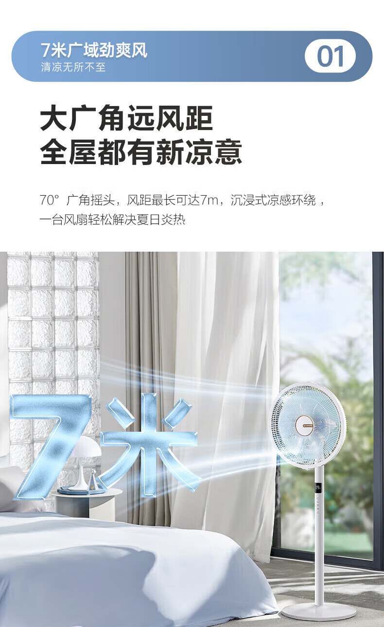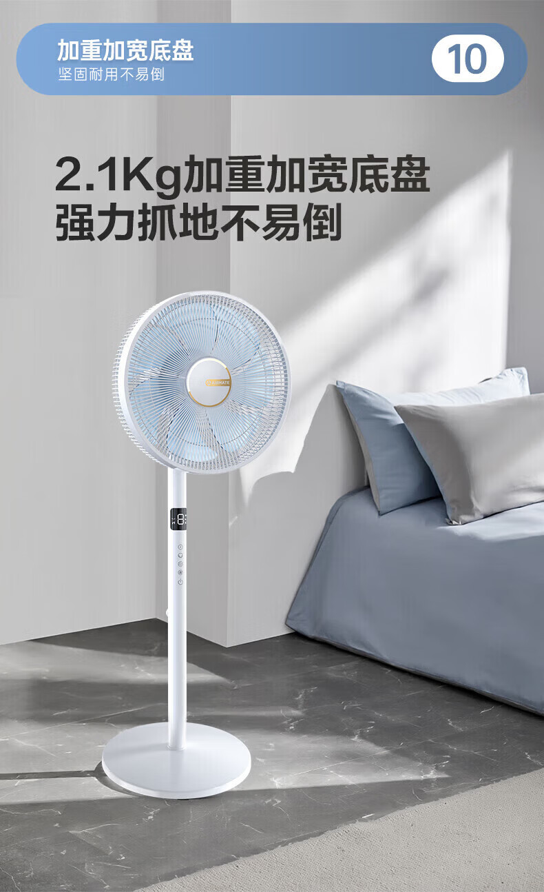 艾美特(AIRMATE)【七叶电风扇】家用落地扇立式轻音居家宿舍卧室办公室电扇节能大风量可触屏遥控定时摇头循环扇 黑色 14寸【可触屏+遥控+9H定时+加重底座】
