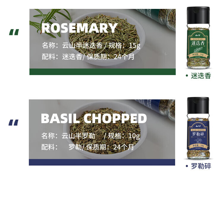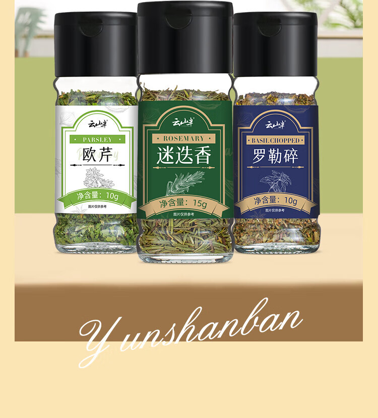 云山半西餐调料组合(迷迭香+罗勒碎+欧芹碎)牛排意面披萨香料撒料35g