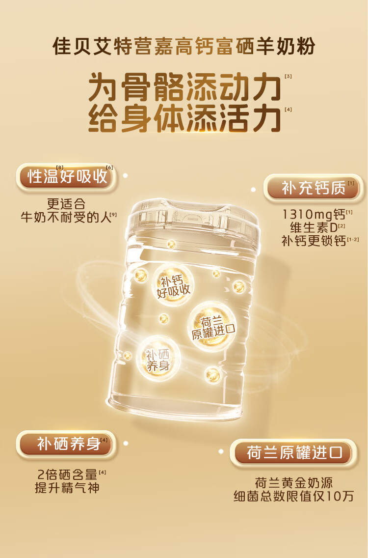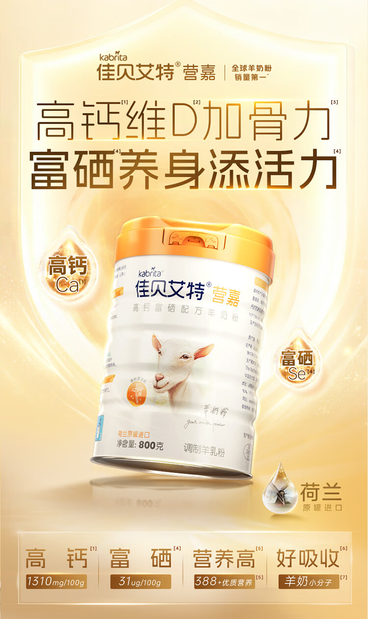 佳贝艾特羊奶粉营嘉高钙富硒无蔗糖成人中老年奶粉800g荷兰进口春节送礼 【荷兰进口】高钙800g