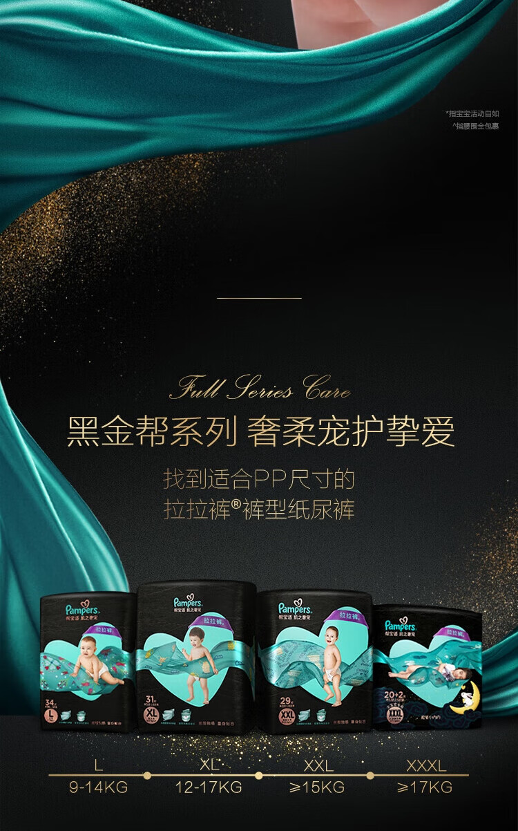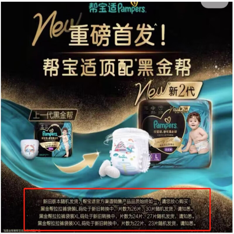 帮宝适(Pampers)黑金帮拉拉裤L26+4片男女宝宝婴儿尿不湿超薄透气