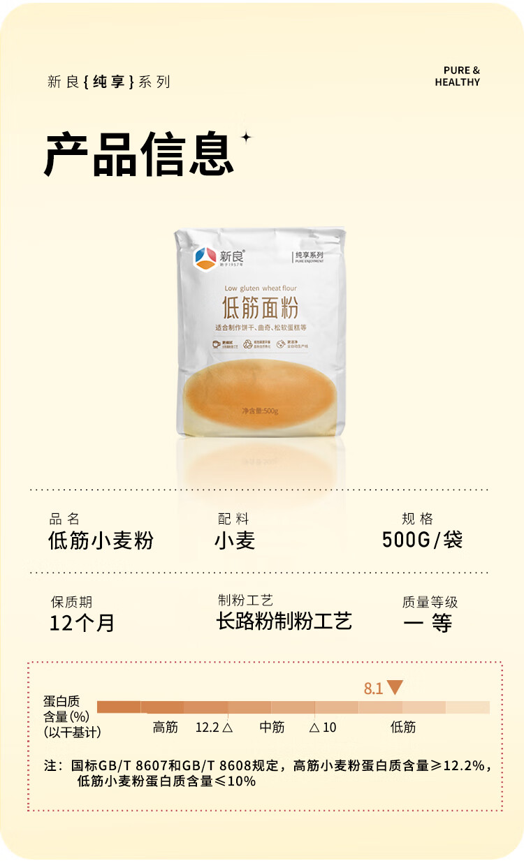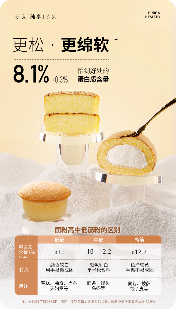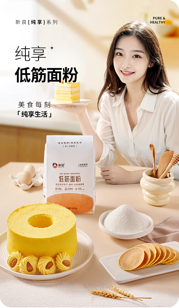 新良纯享低筋面粉500g*2袋 低筋小麦粉 烘焙原料 蛋糕用纸包装面粉