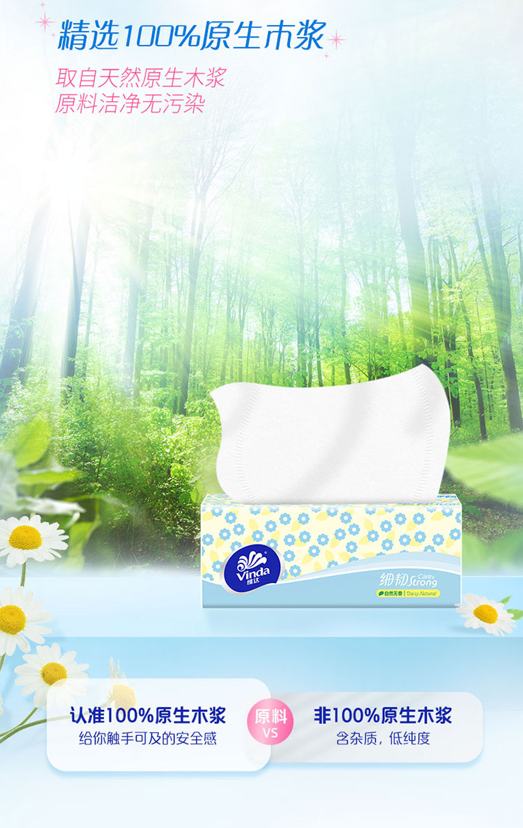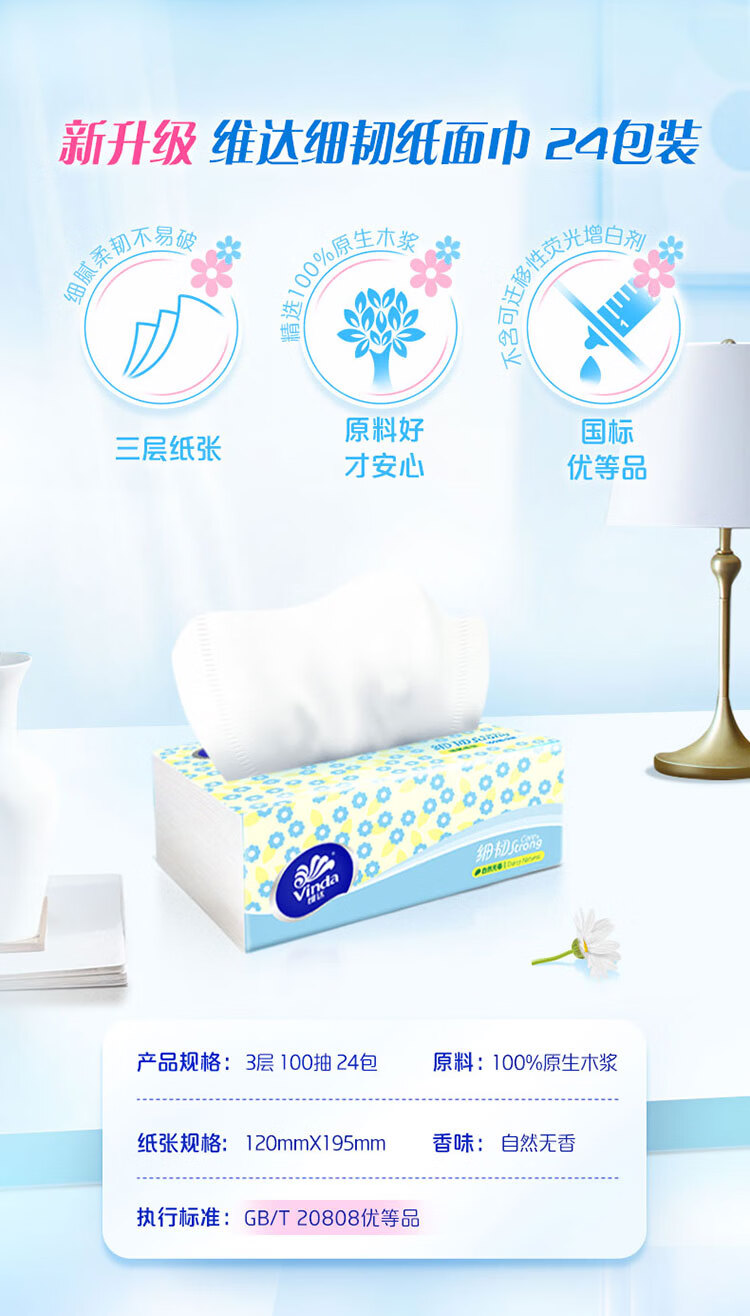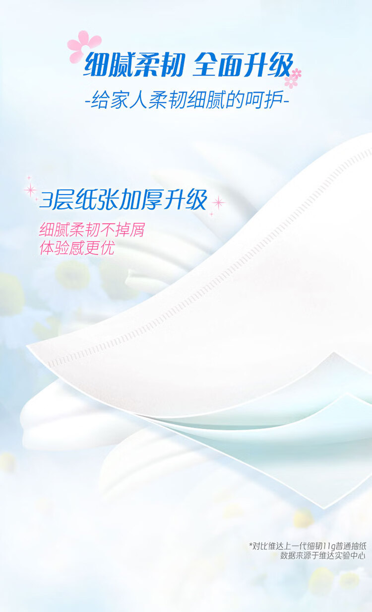 维达细韧抽纸 纸巾餐巾纸家用 3层 100抽*72包 【3箱】